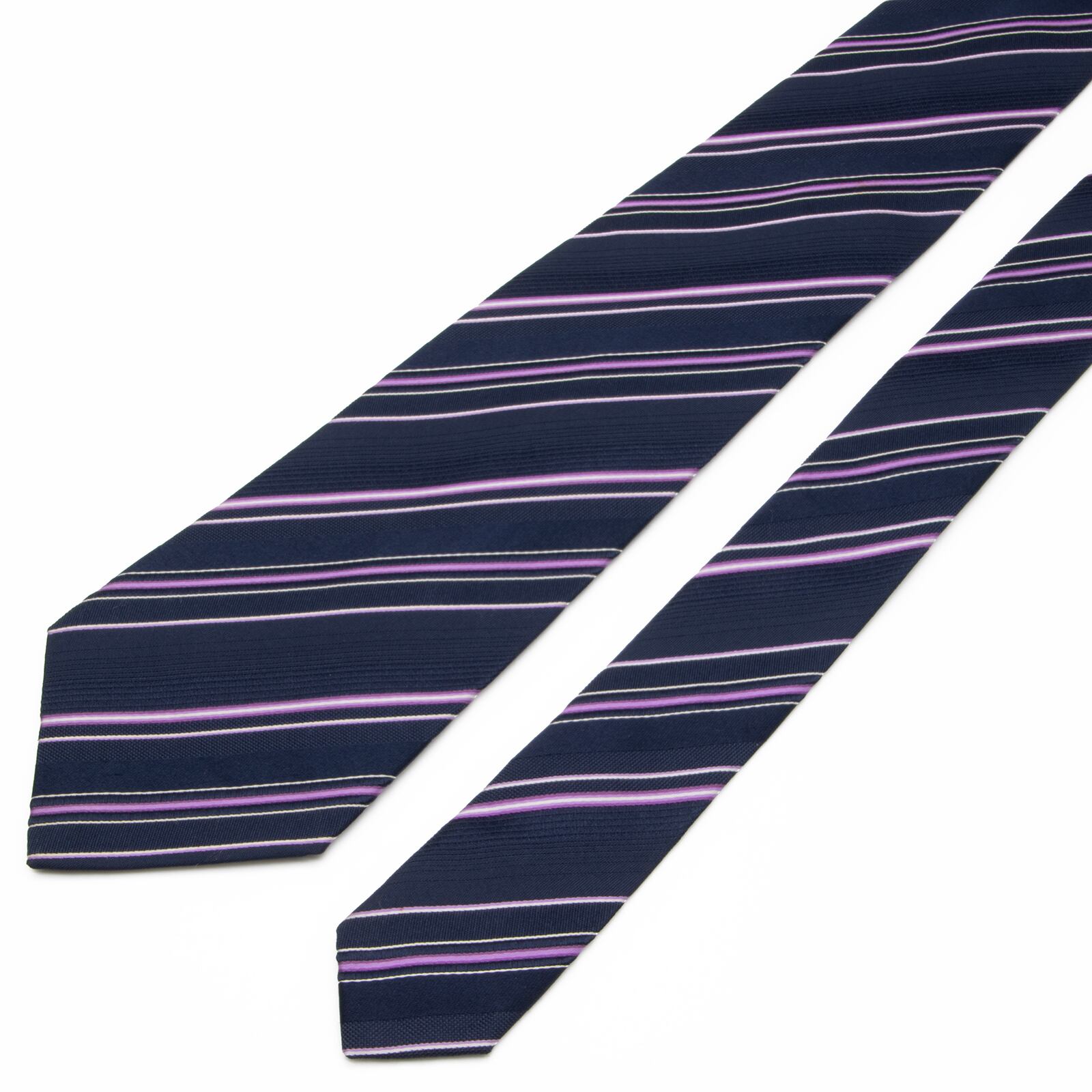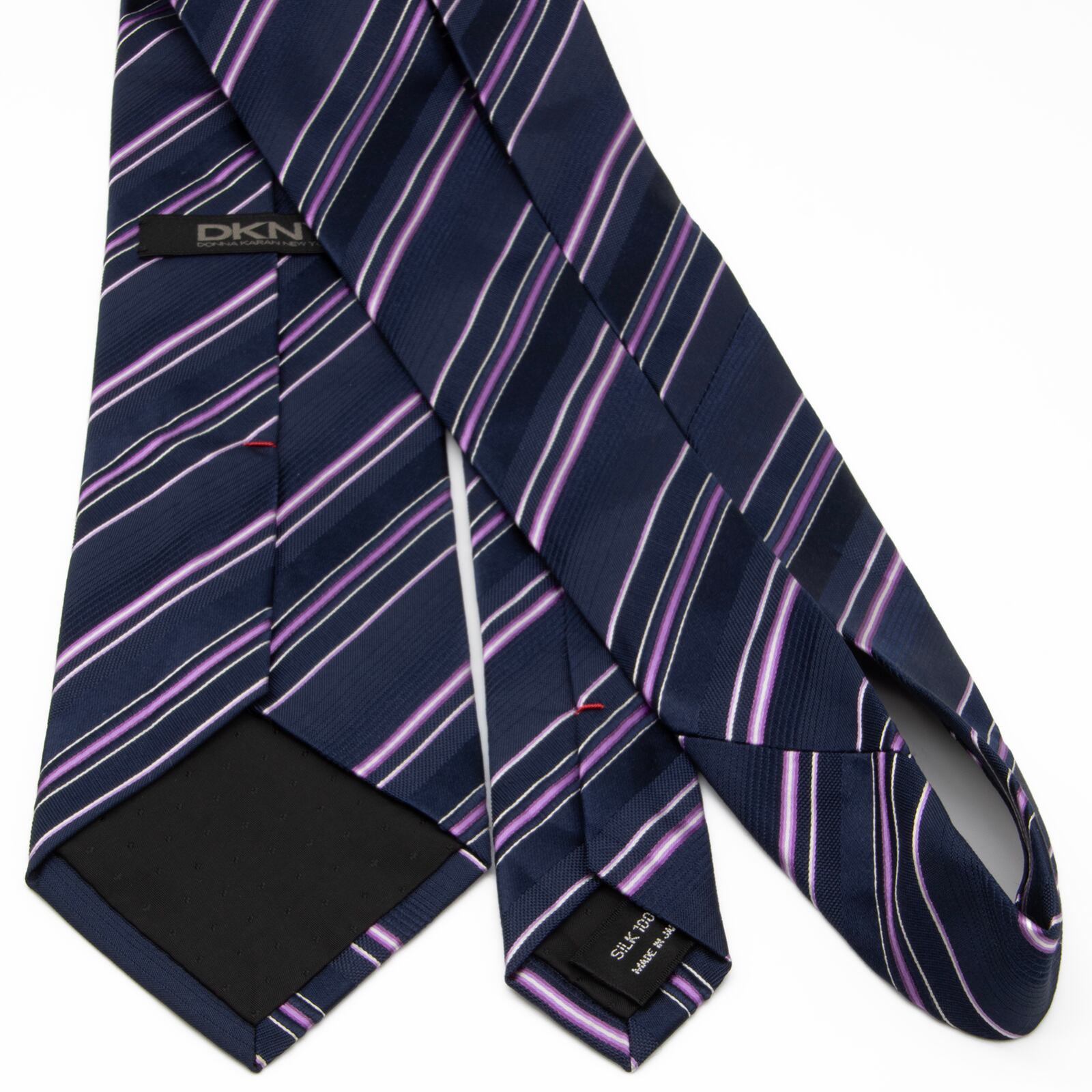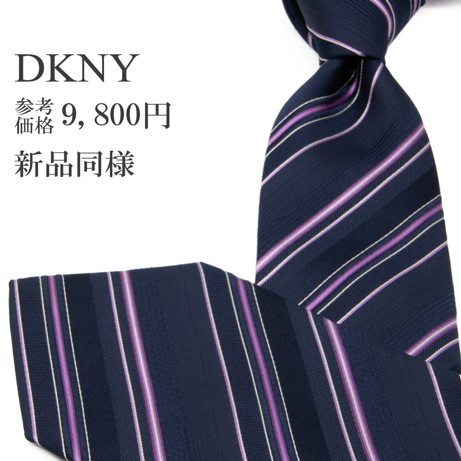 送料無料 ダナキャラン ネクタイ レギュラータイ ジャガードタイ 新品同様 シルク ネイビーブルー 紫 白 ストライプ ブランド 綺麗 P392