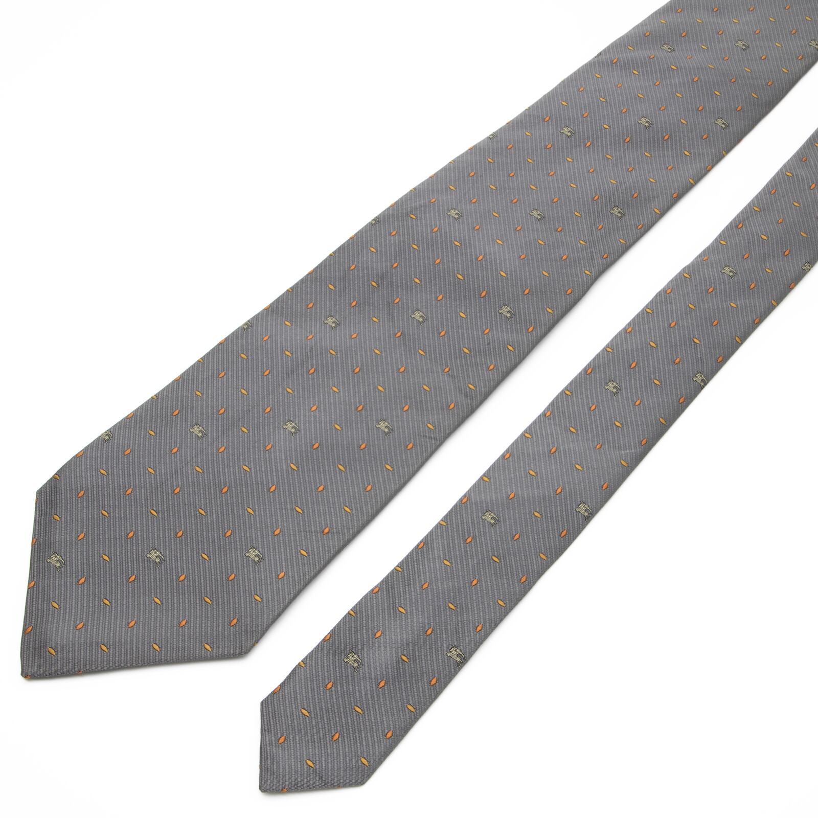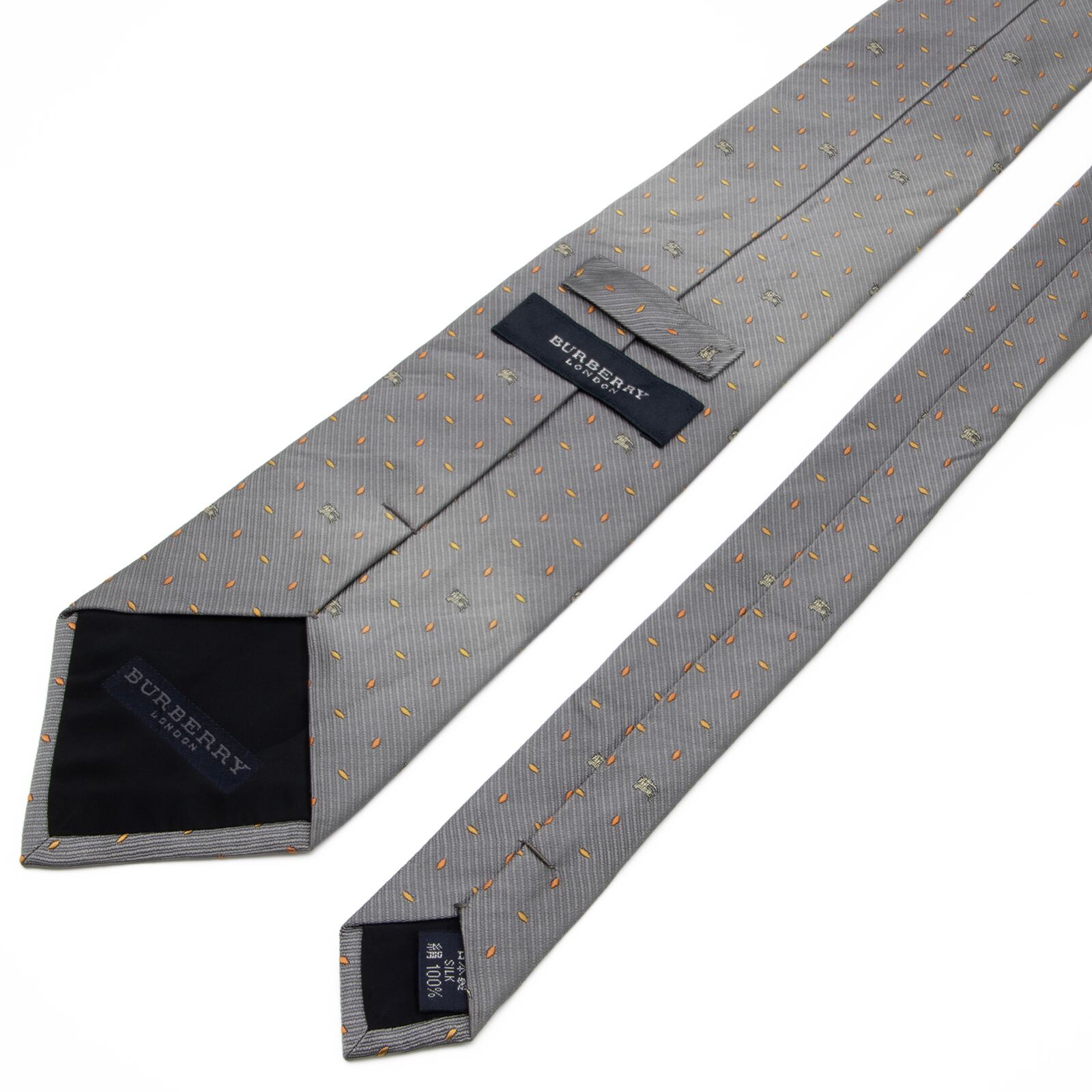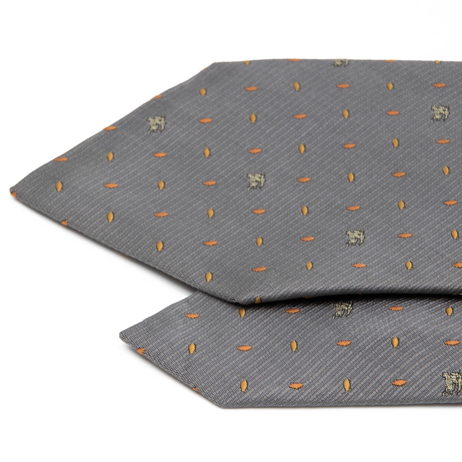 送料無料 バーバリー ネクタイ ジャガード シルク グレー オレンジ 黄色 グレージュ ビジネス ドット 馬 ホースロゴ マーク ブランド P398