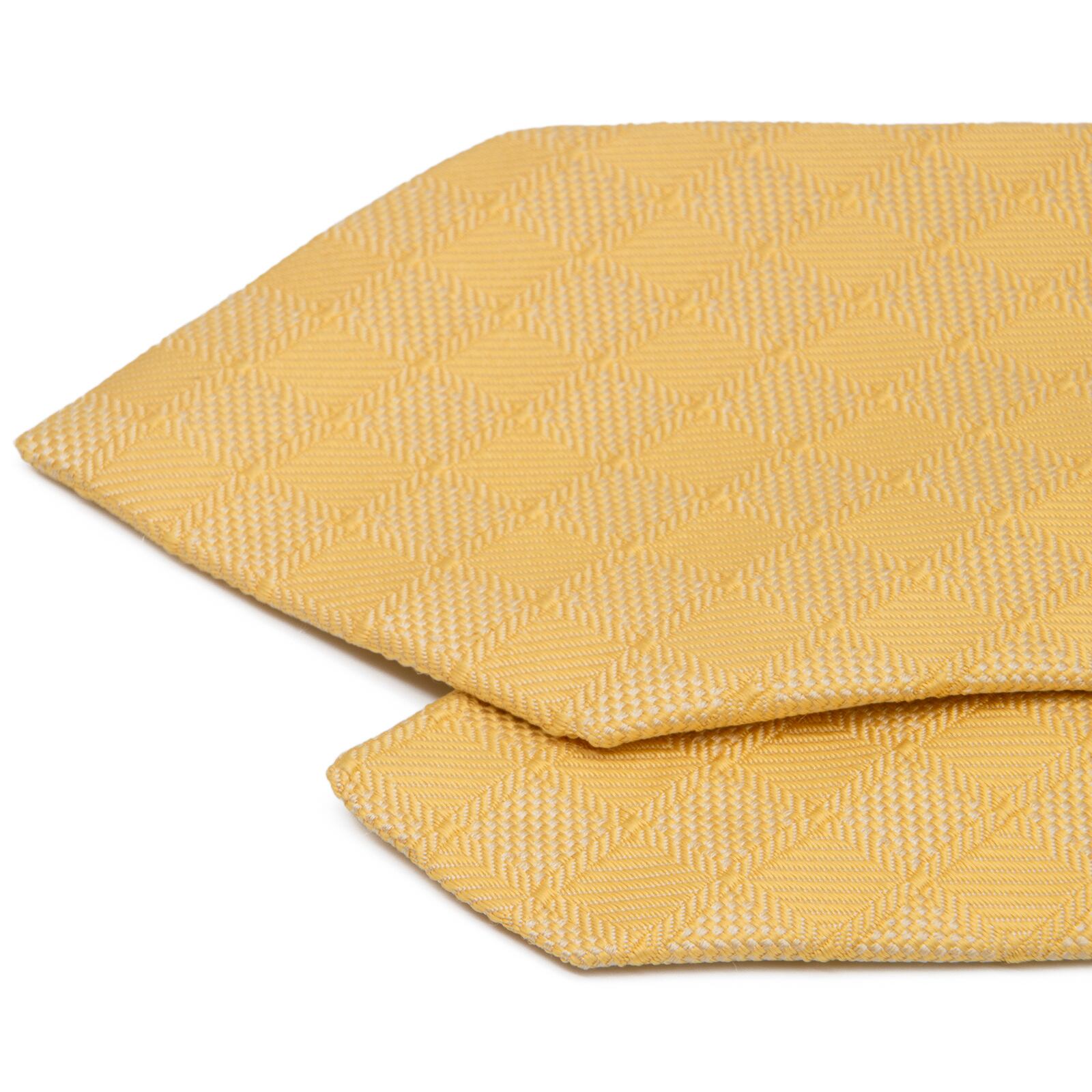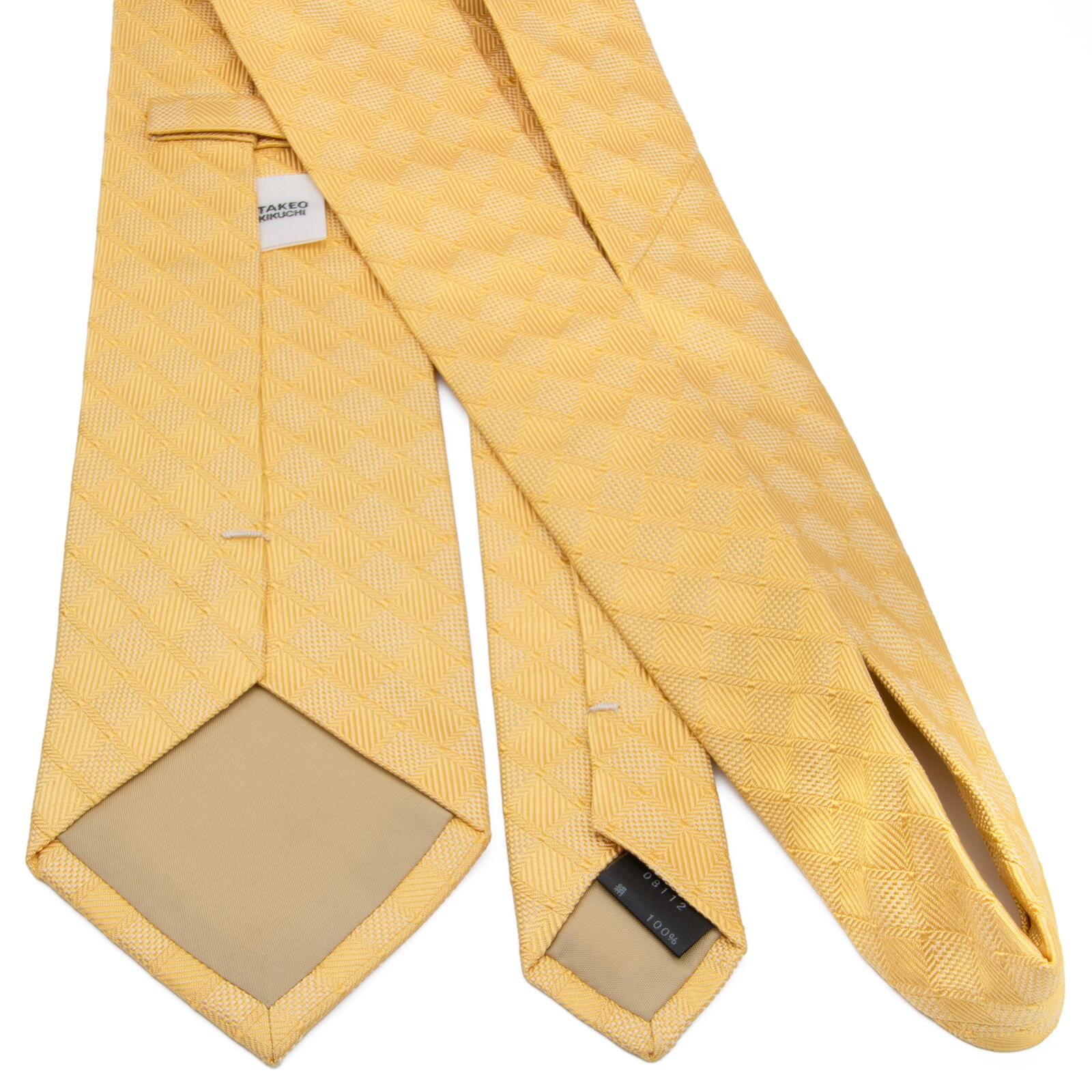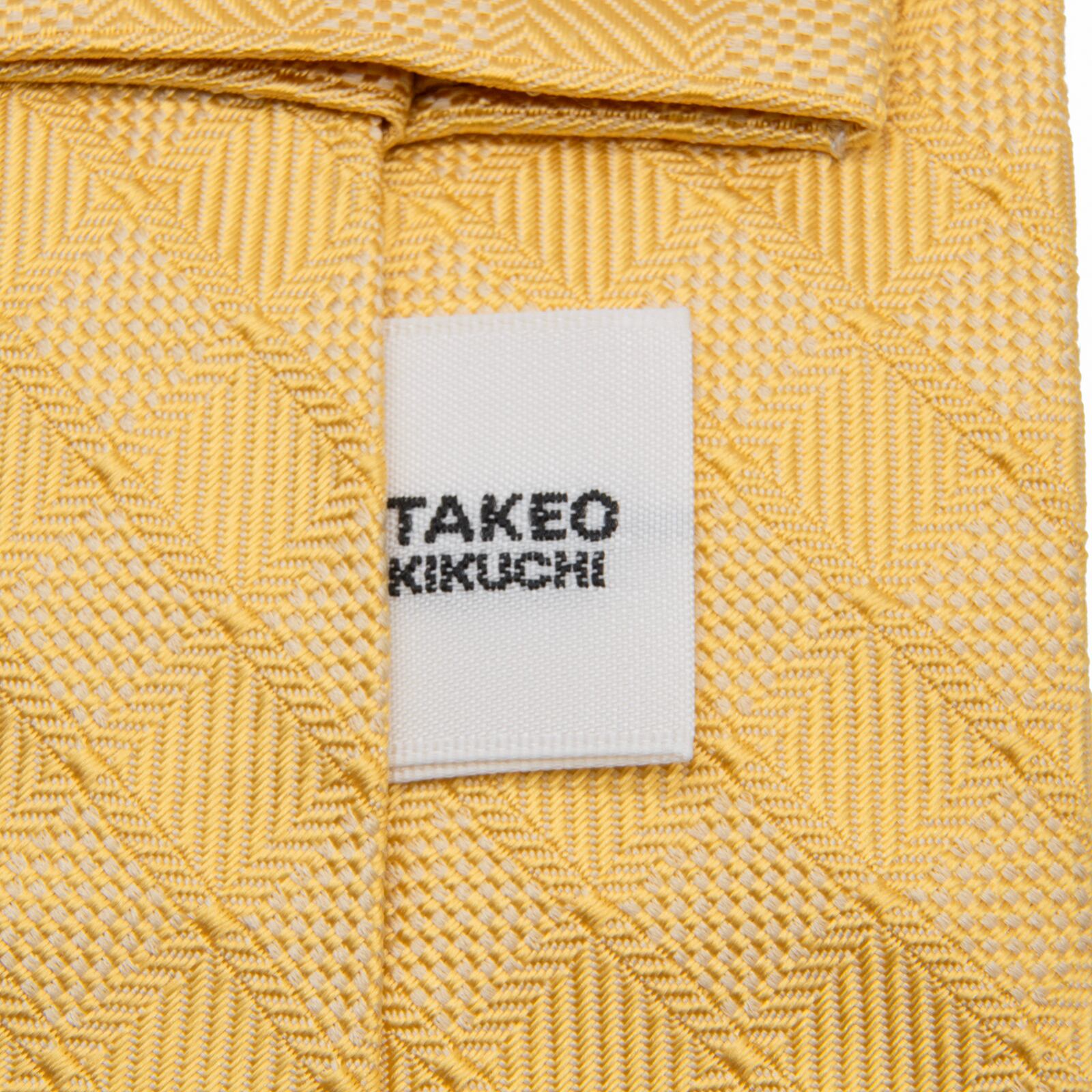 送料無料 タケオキクチ ネクタイ レギュラータイ ジャガード 新品 シルク 黄色 イエロー ベージュ 四角 ひし形 光沢 目立つ ブランド P411