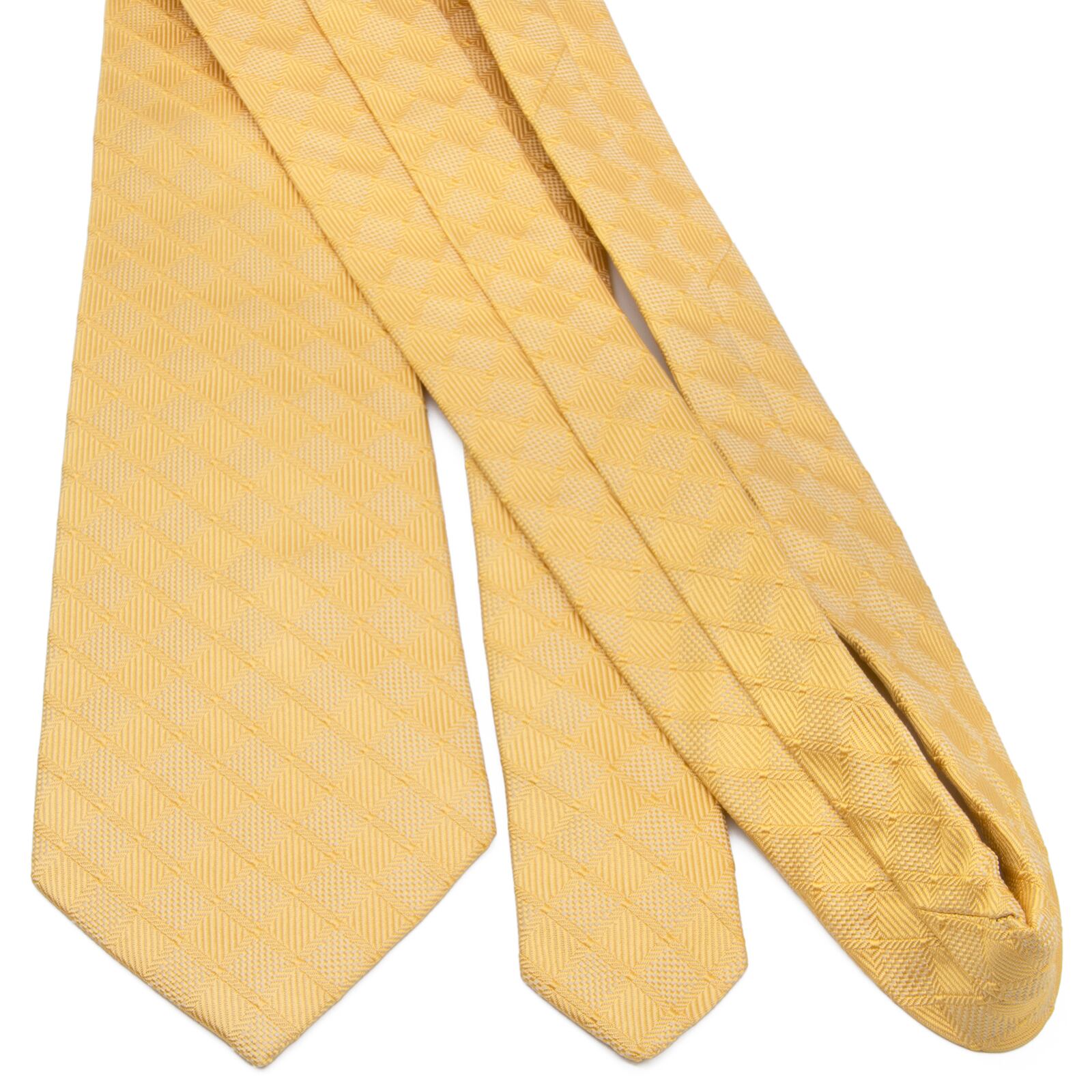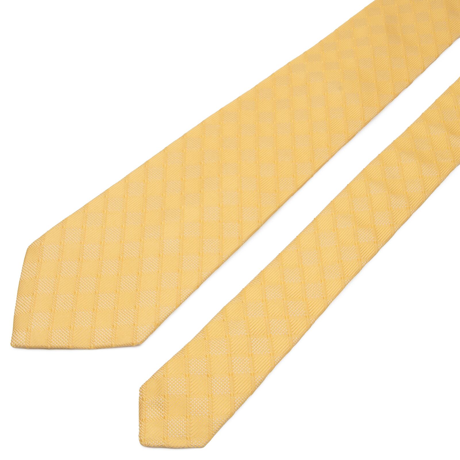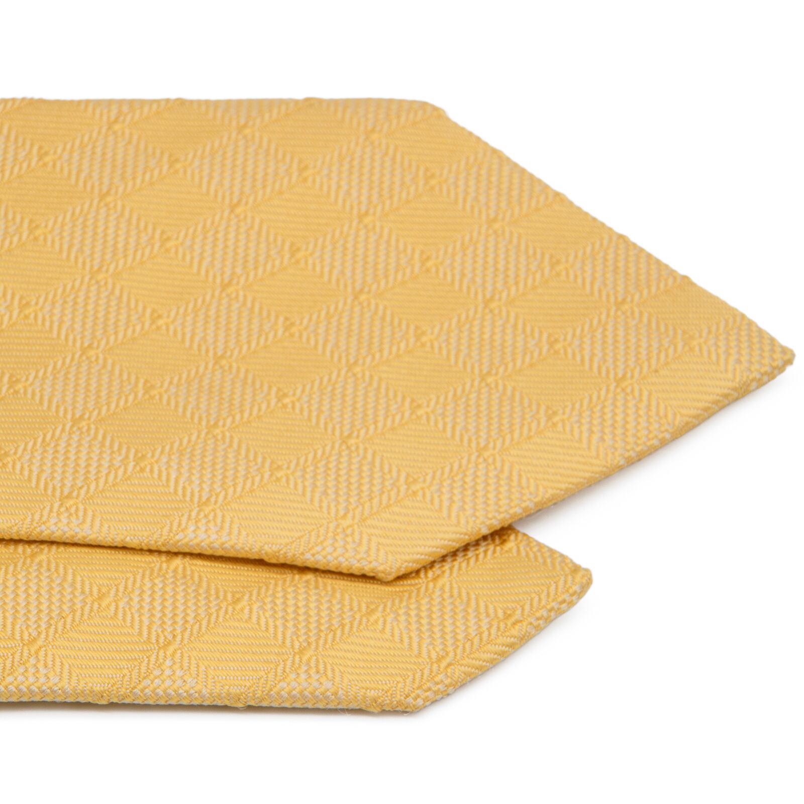 送料無料 タケオキクチ ネクタイ レギュラータイ ジャガード 新品 シルク 黄色 イエロー ベージュ 四角 ひし形 光沢 目立つ ブランド P411