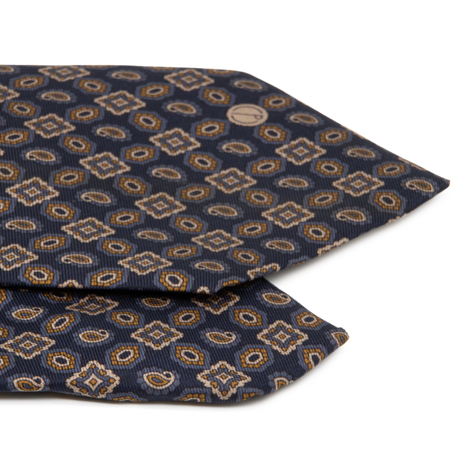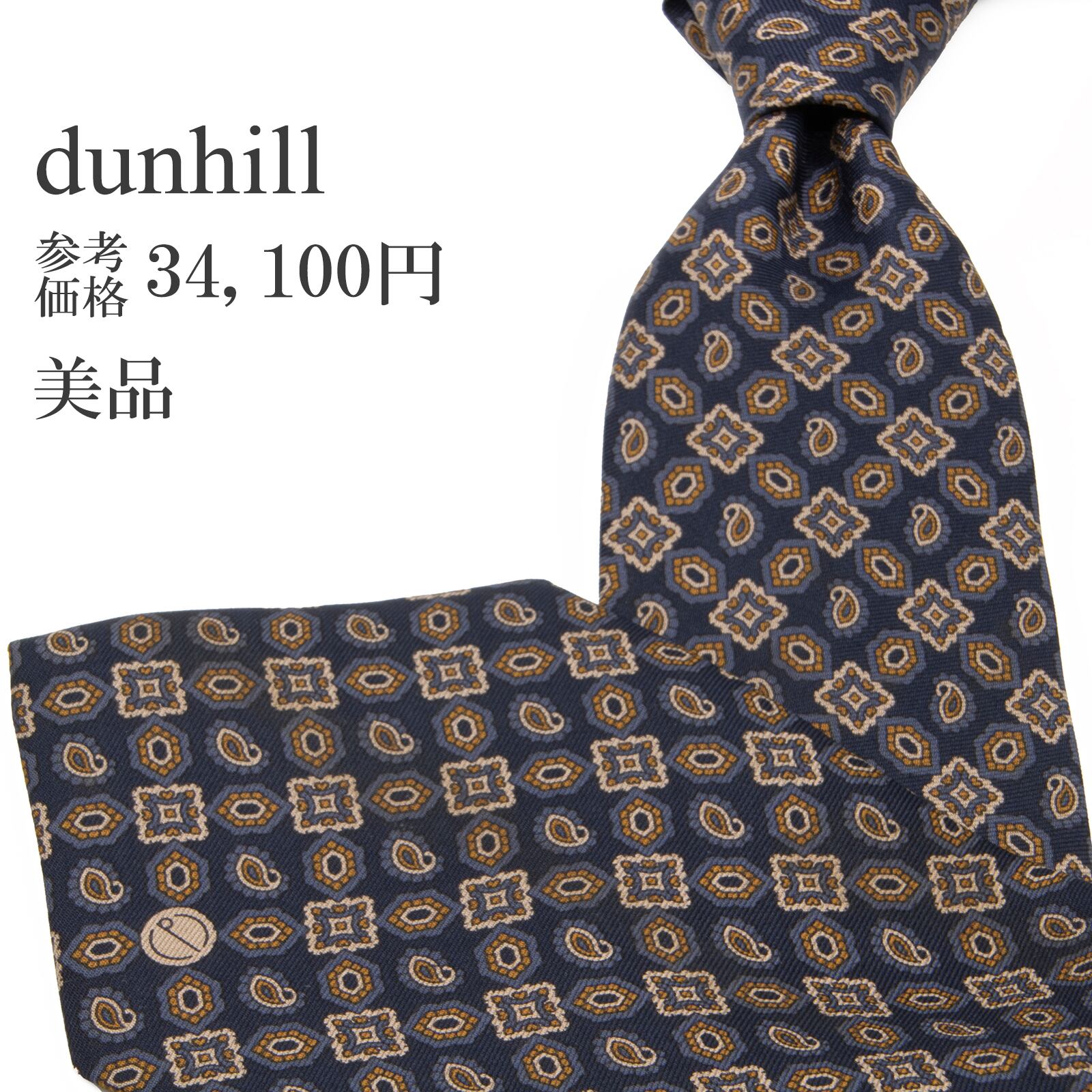送料無料 ダンヒル ネクタイ レギュラータイ シルク ネイビーブルー 茶色 青 ベージュ ひし形 宝石 ロゴ マーク ブランド イタリア製 P412