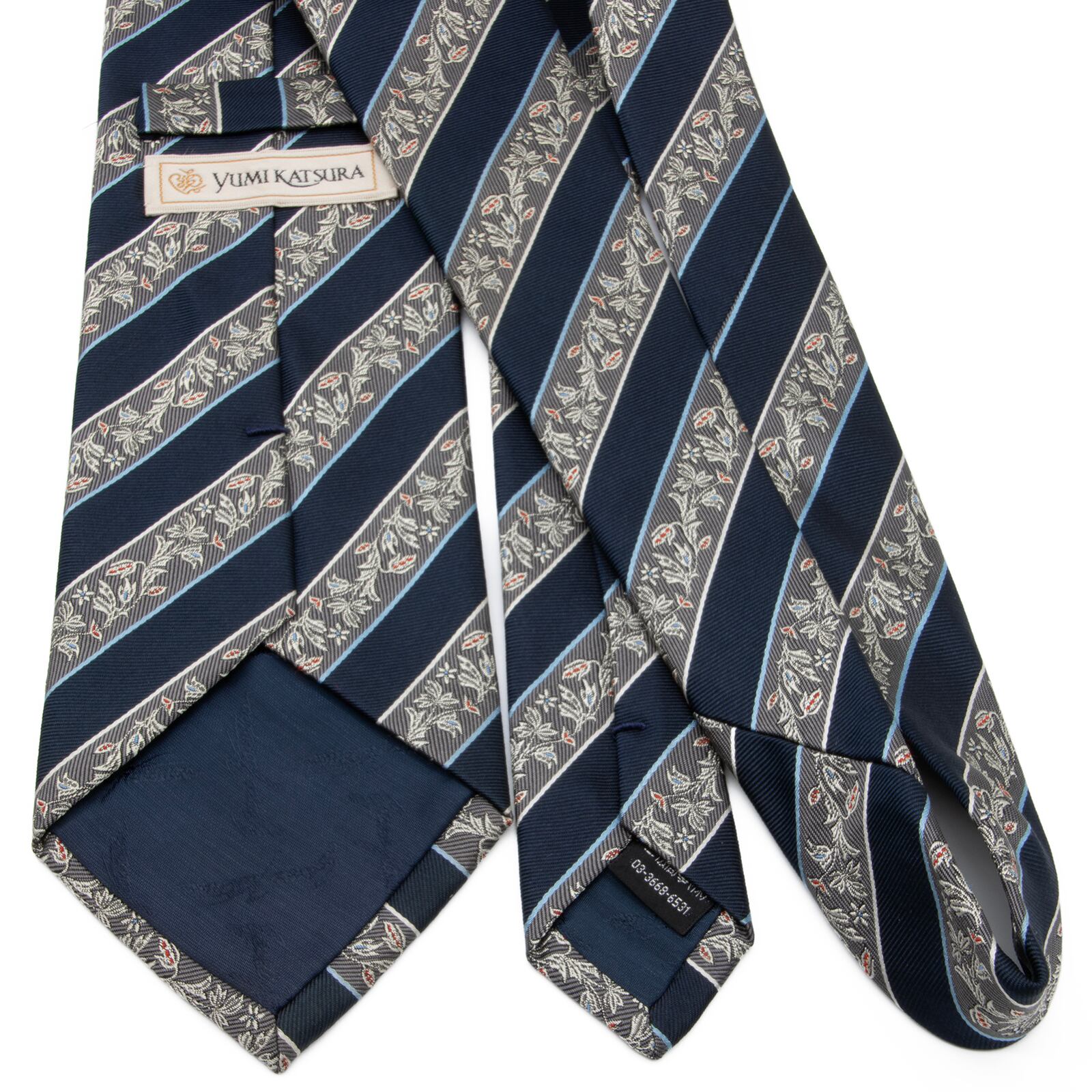 送料無料 ユミカツラ ネクタイ ジャガード 新品同様 シルク ネイビーブルー グレー エクリュ 水色 赤 ストライプ 花 ブランド 綺麗 P422