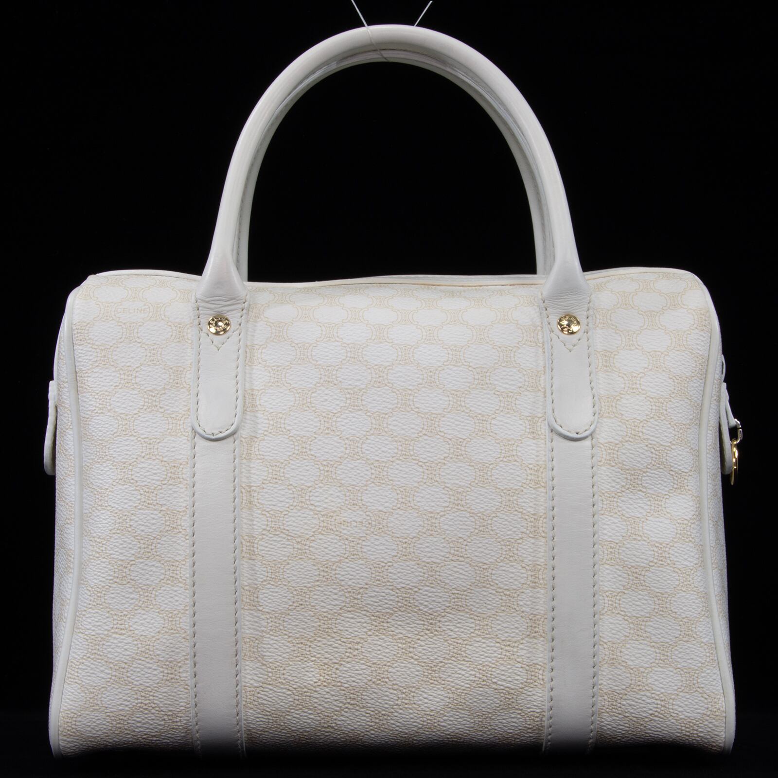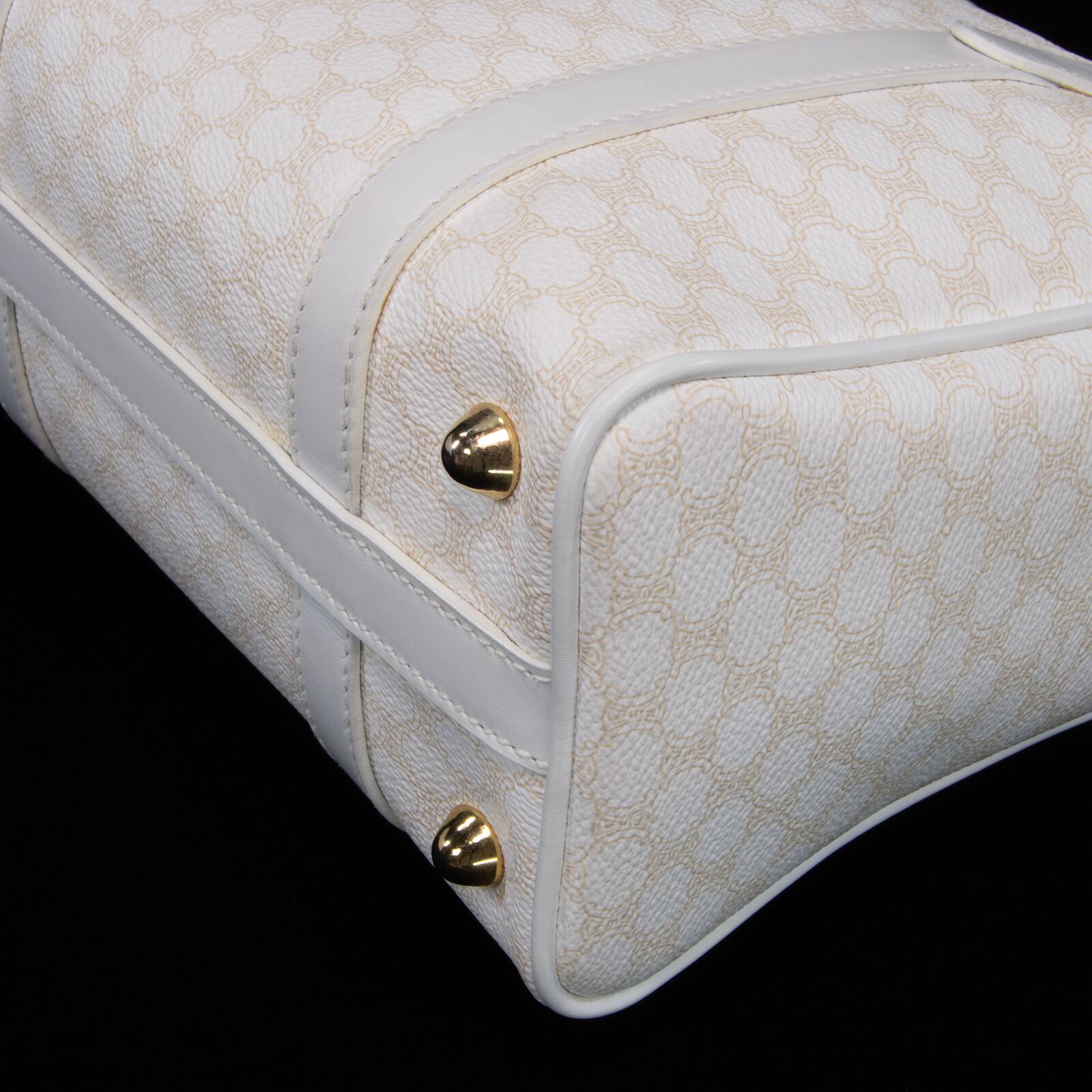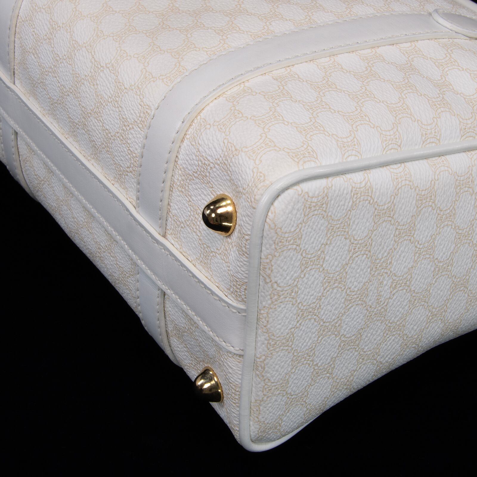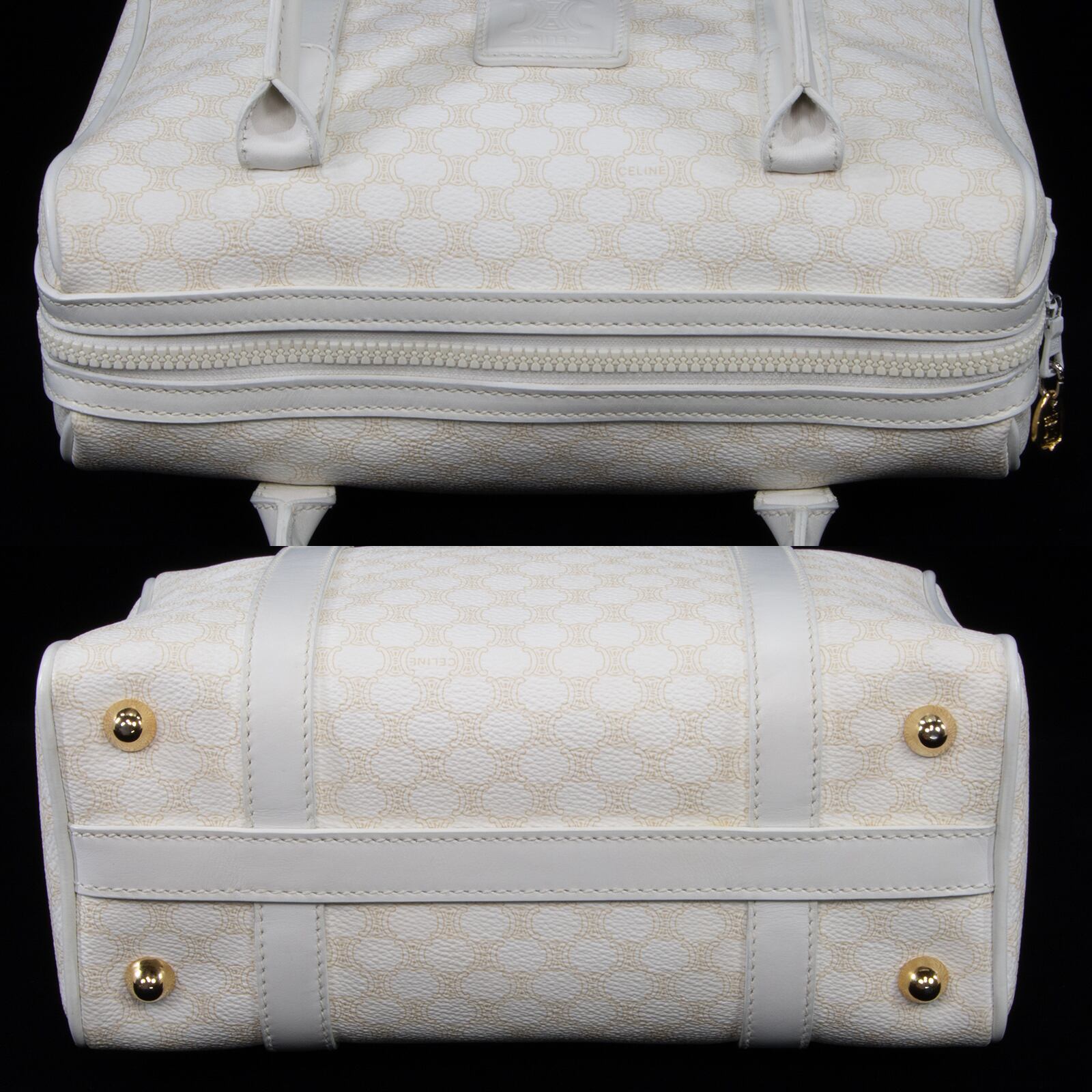 本物 送料無料 オールドセリーヌ ハンドバッグ レディース マカダム 白 ホワイト ベージュ ブラゾン ロゴ マーク 本革 鞄 バック 綺麗 B299