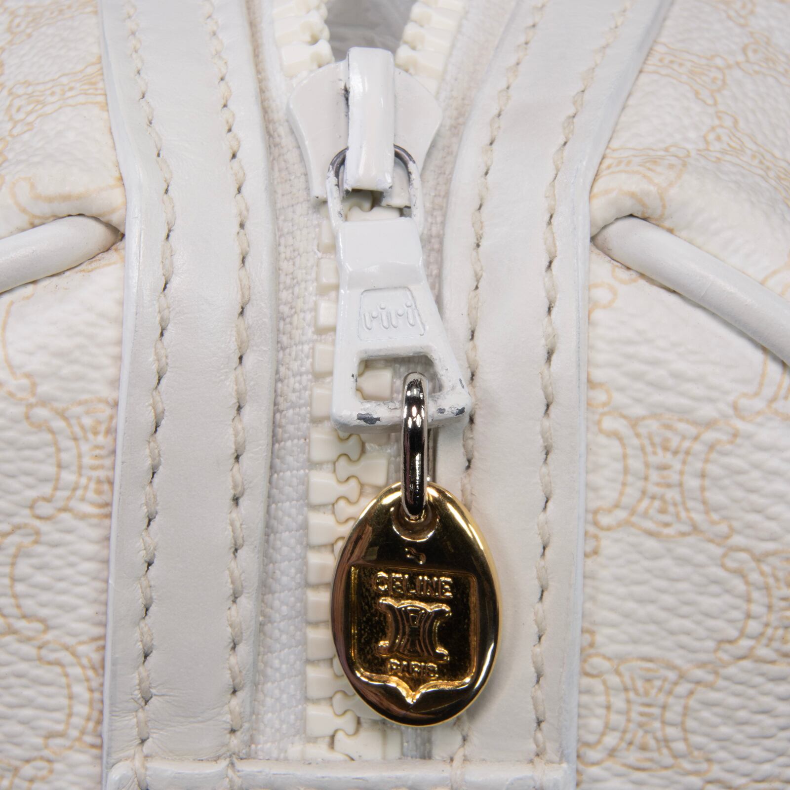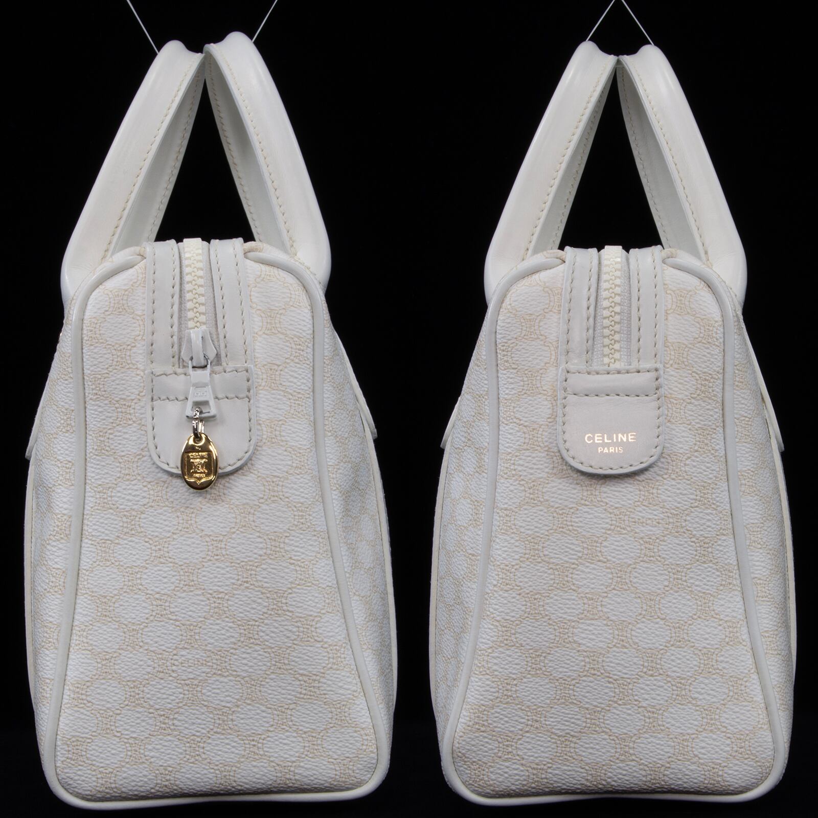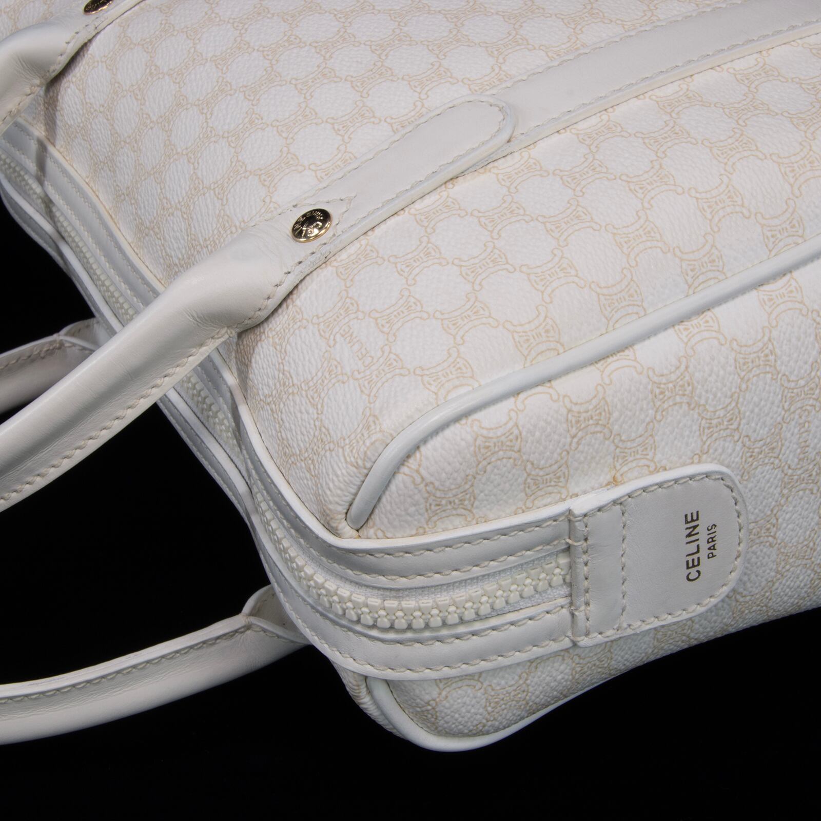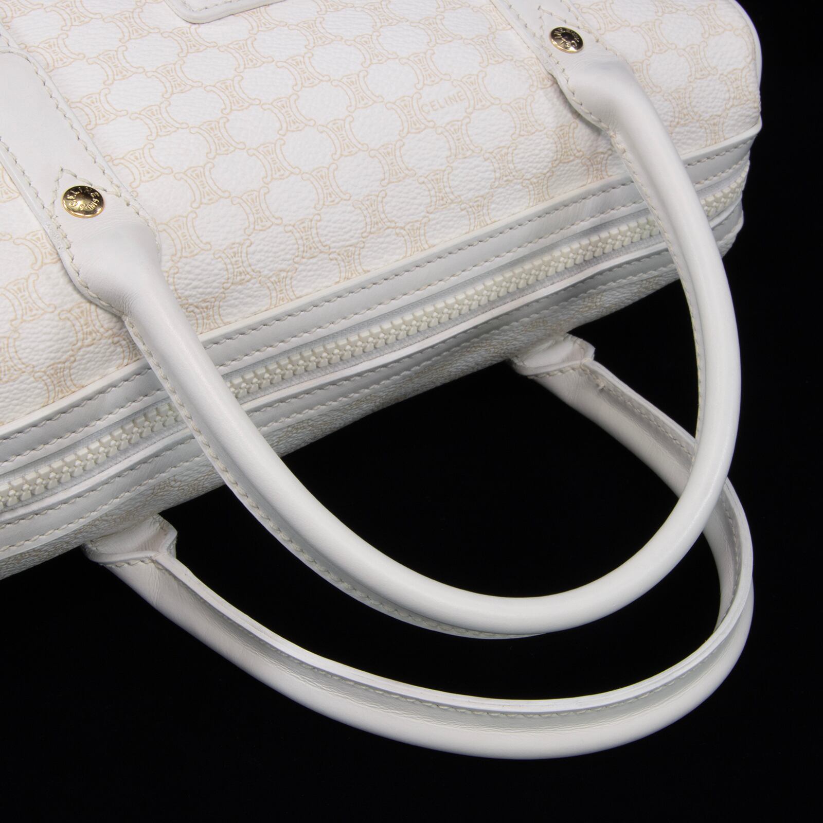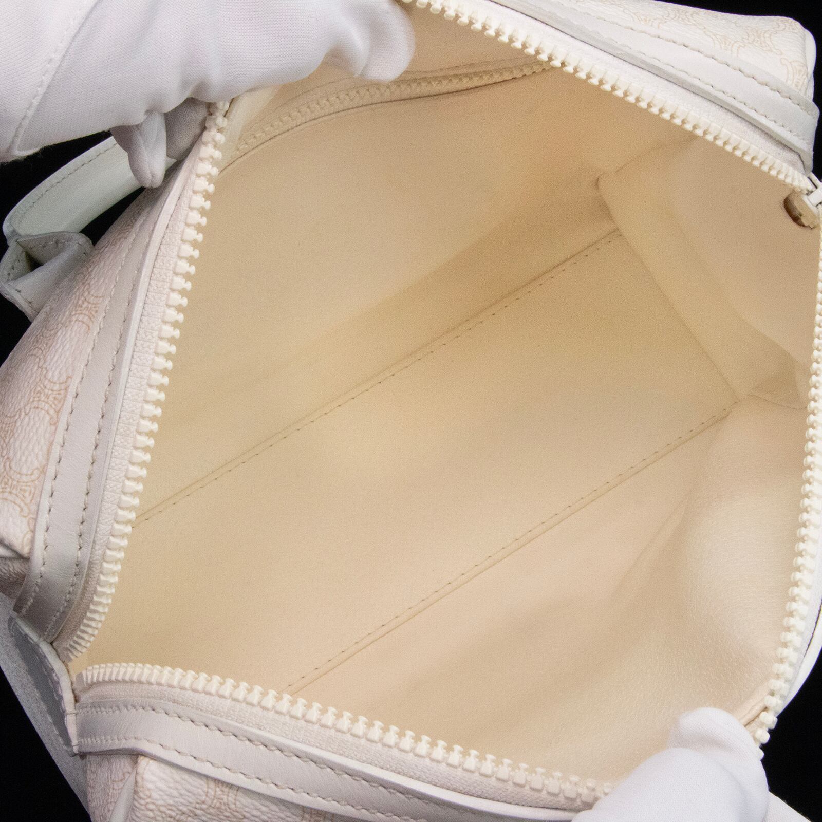 本物 送料無料 オールドセリーヌ ハンドバッグ レディース マカダム 白 ホワイト ベージュ ブラゾン ロゴ マーク 本革 鞄 バック 綺麗 B299