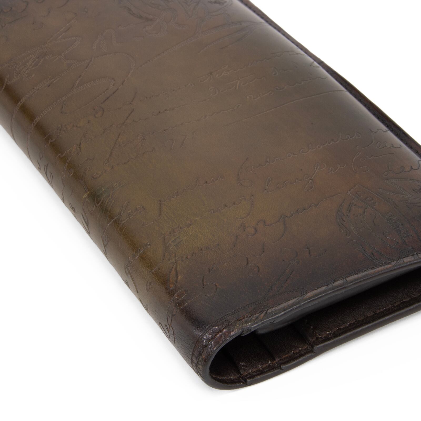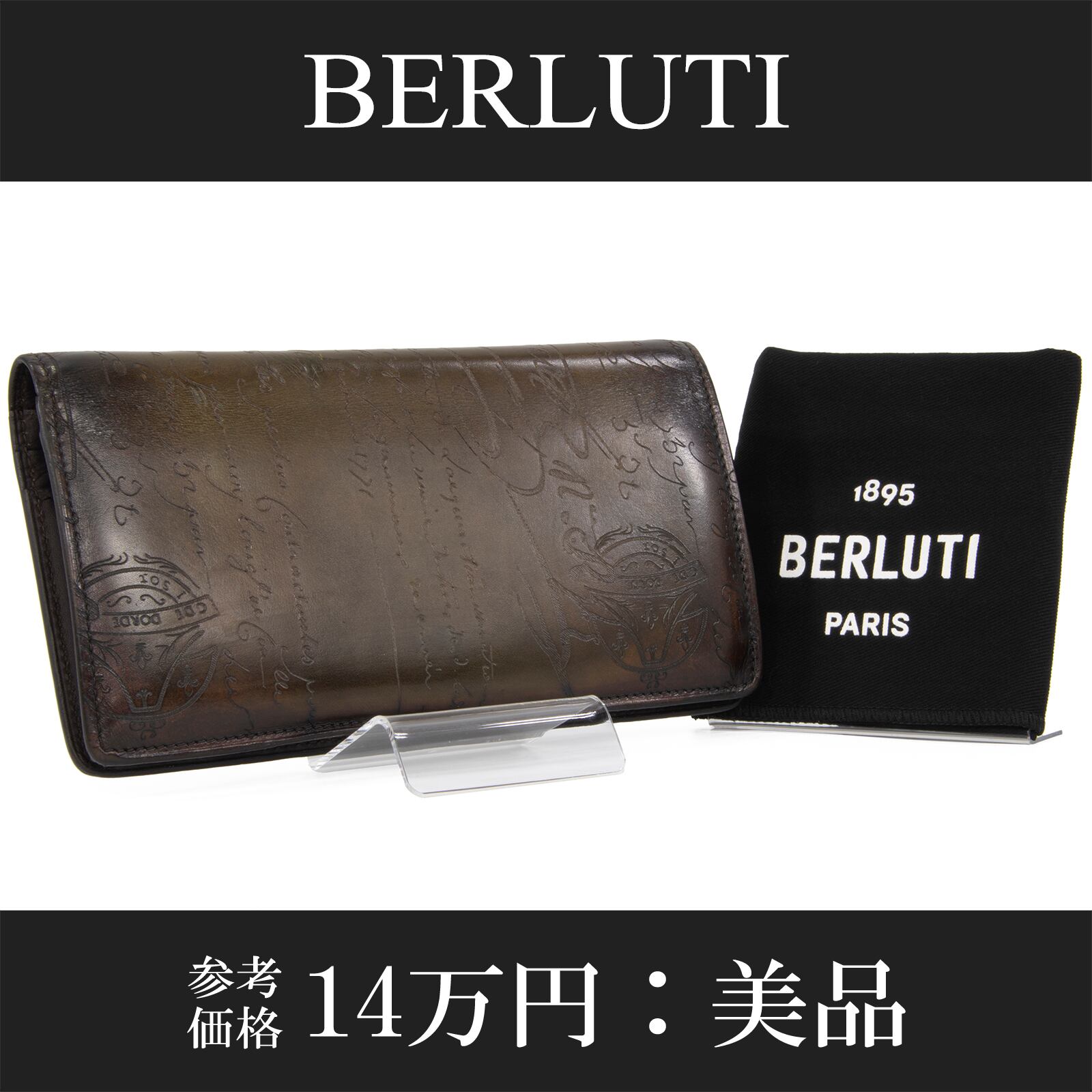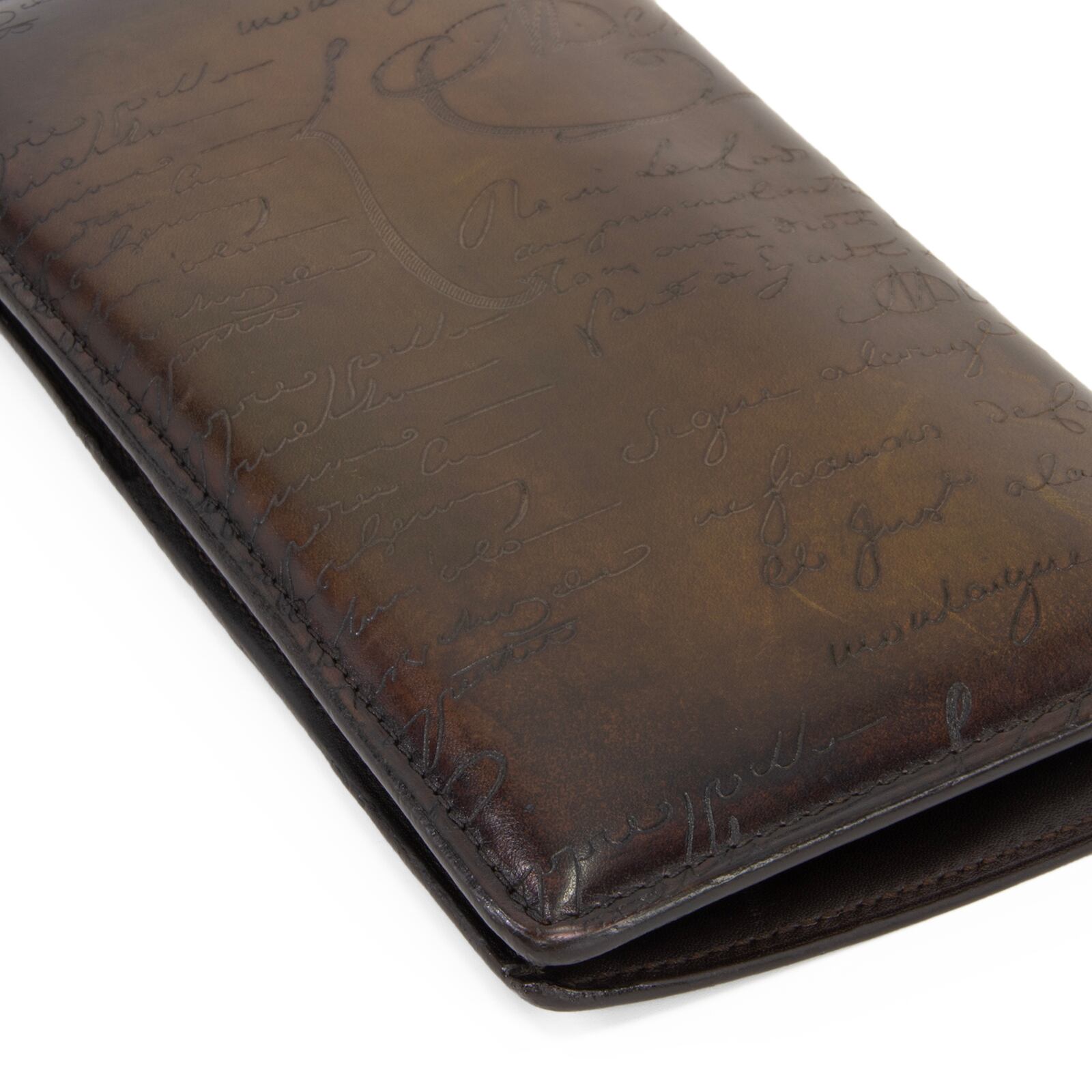 本物 送料無料 ベルルッティ 二つ折り 長財布 メンズ エベネ 茶色 ブラウン スリム スマート パティーヌ カリグラフィ ロゴ マーク C226