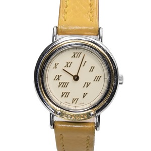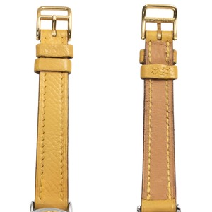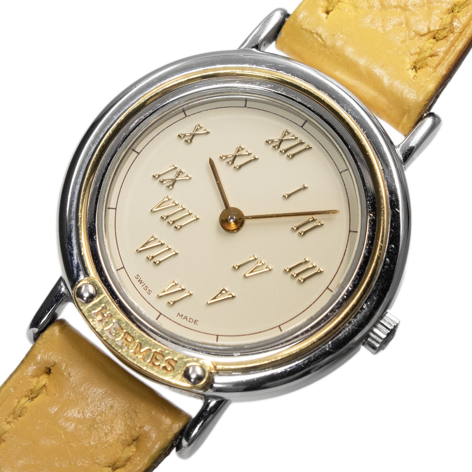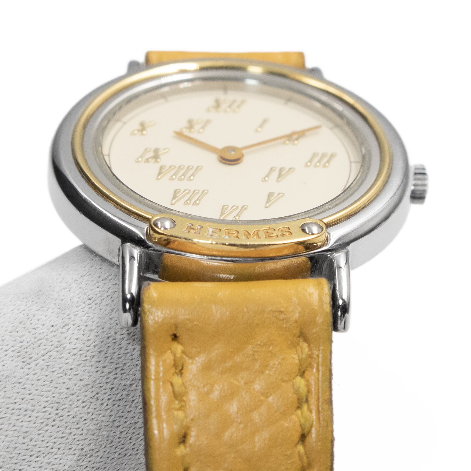 送料無料 エルメス 腕時計 レディース メテオール 黄色 イエロー ゴールド 珍しい コンビカラー 目立つ ロゴ 軽量 軽い 革ベルト 綺麗 X295