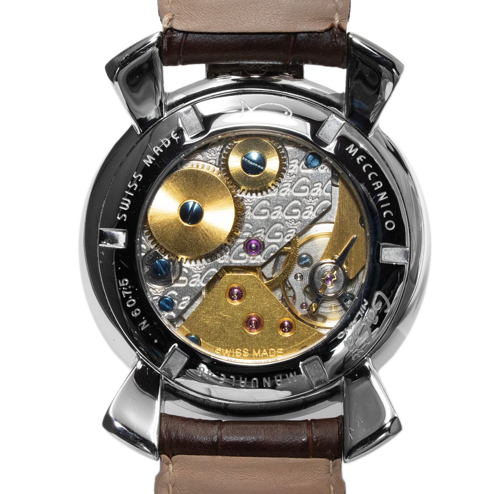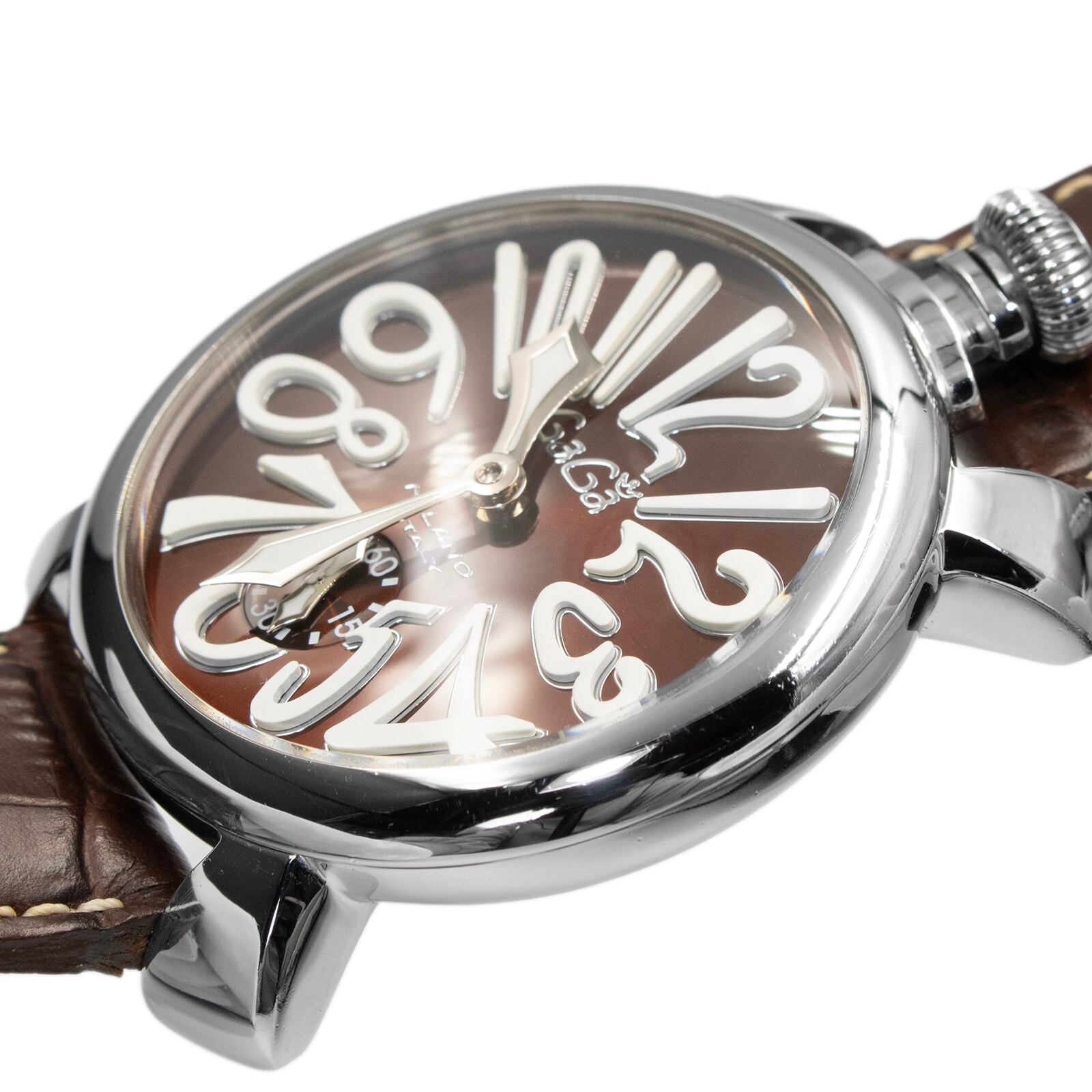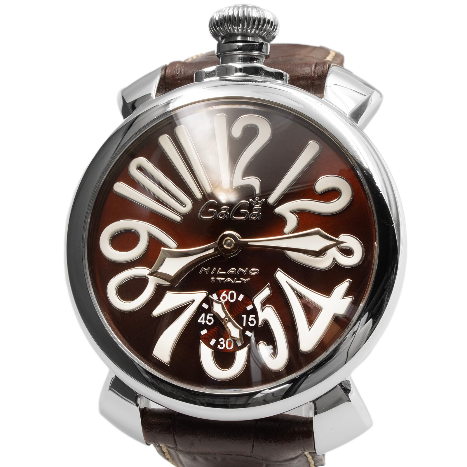 送料無料 ガガミラノ 腕時計 手巻き メンズ マヌアーレ48mm 5010.13S 茶色 メタリックブラウン 目立つ 裏スケ ロゴ マーク 革ベルト Q129