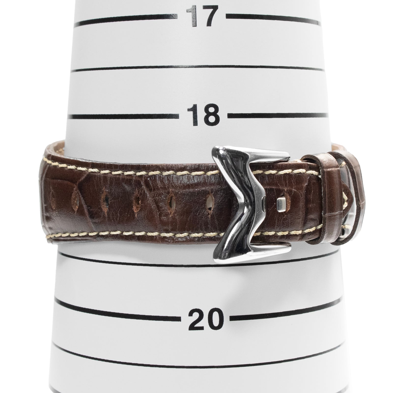 深みのあるメタリックブラウンの文字盤に、躍り出るかのように配された立体的なホワイトのアラビア数字が、見事な対比を描いております。