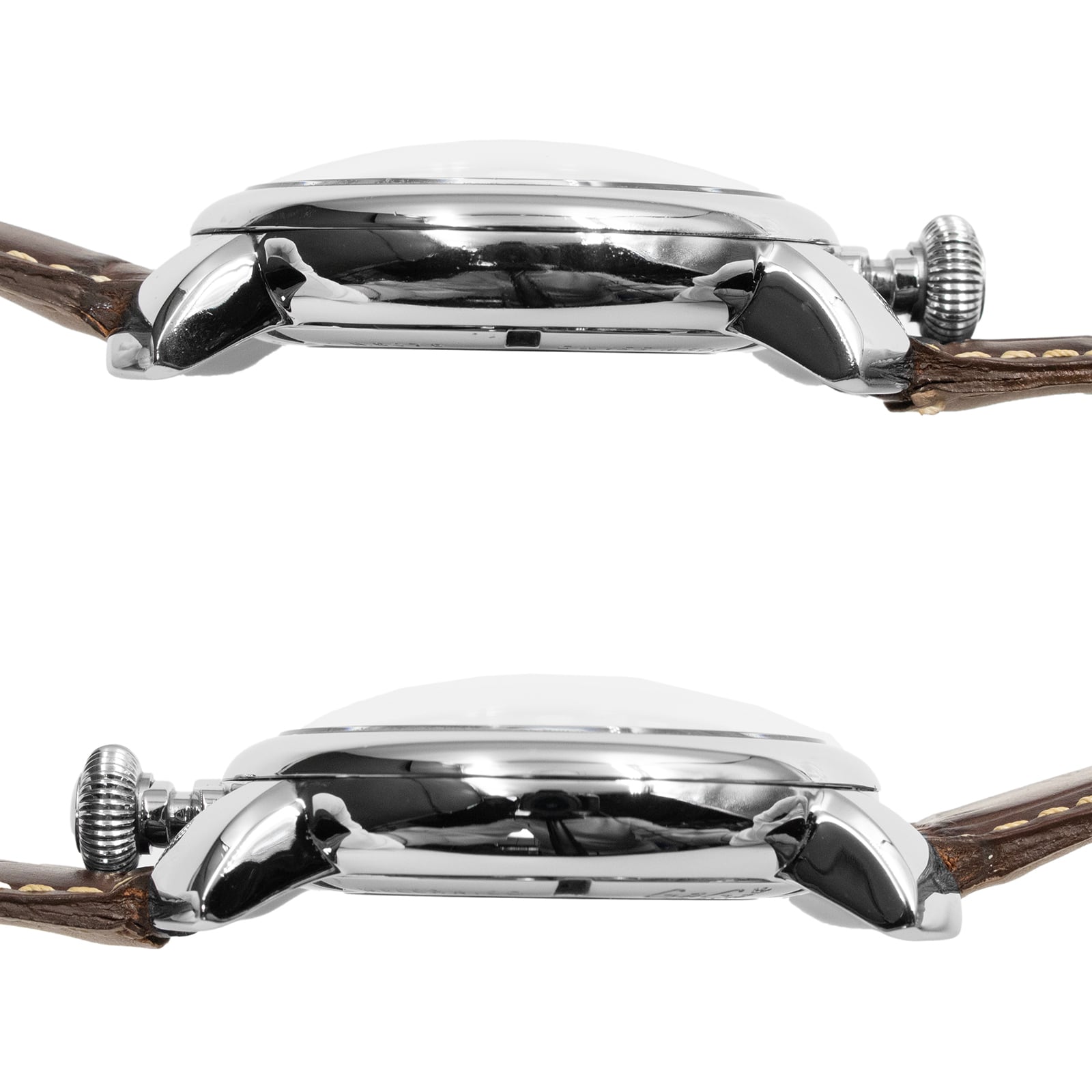 懐中時計を腕時計へと昇華させた、独創的なデザインが特徴でございます。
