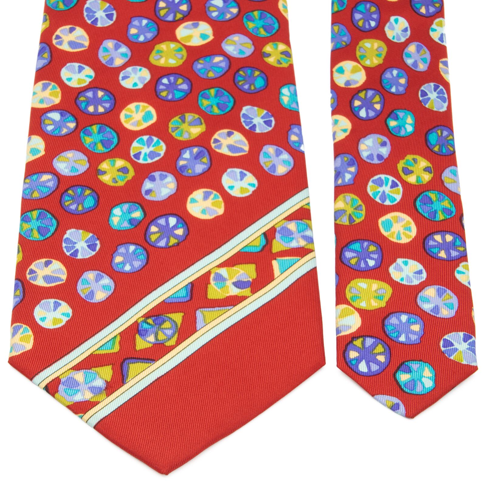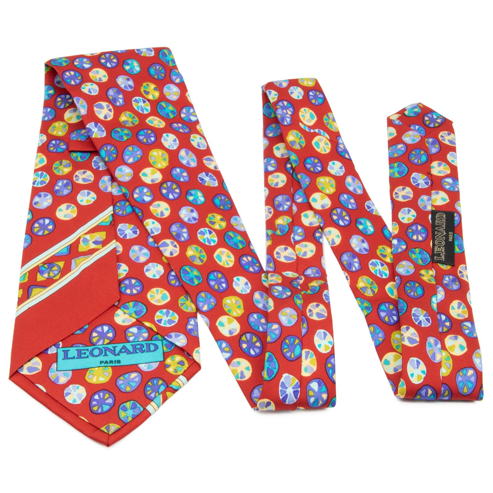こちらは色とりどりの果実が弾けるように描かれた、レオナールのネクタイでございます。