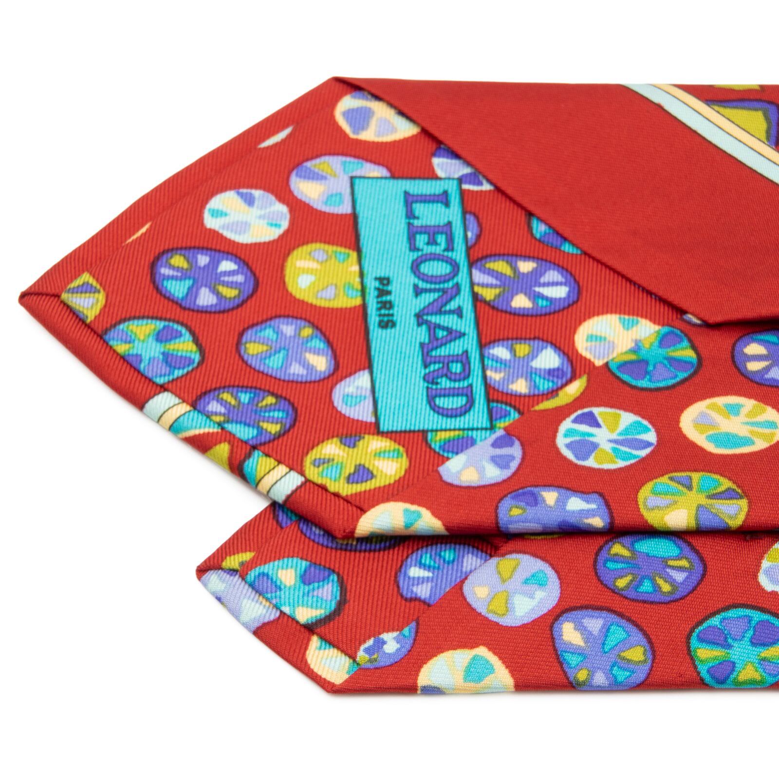 送料無料 レオナール ネクタイ レギュラータイ 新品 シルク 赤 レッド 青 水色 黄色 緑 果物 フルーツ マーク ブランド イタリア製 N812