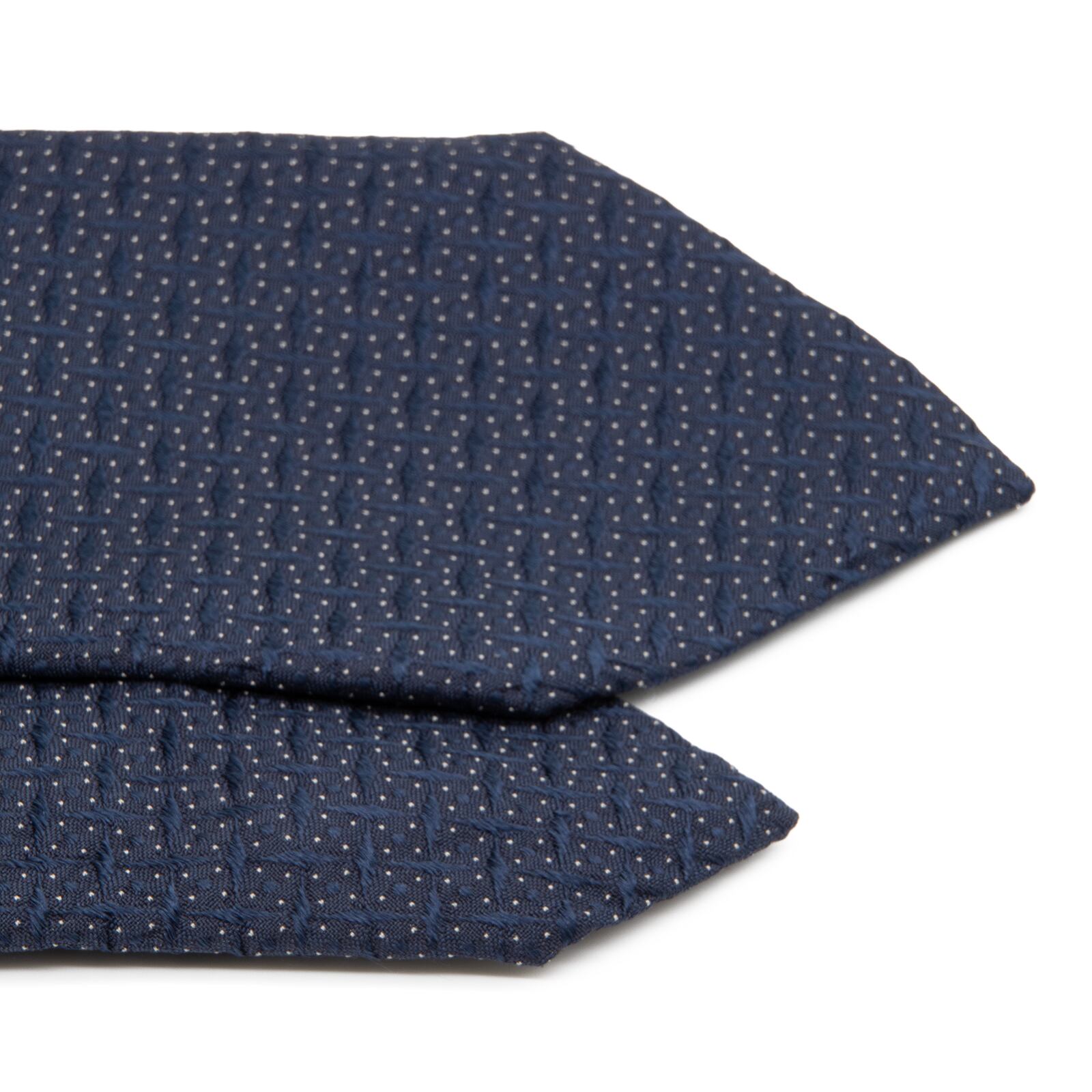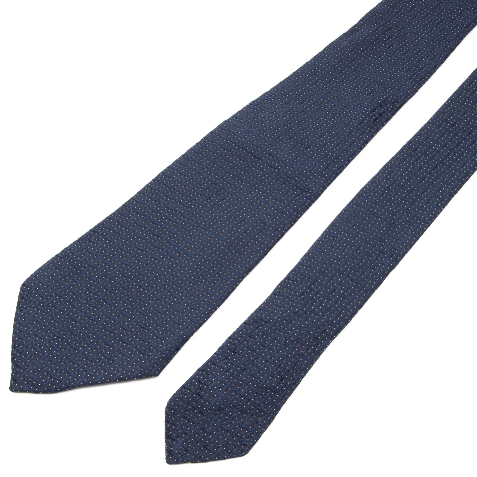 送料無料 アルマーニコレツィオーニ ネクタイ レギュラータイ ジャガードタイ 新品同様 シルク ネイビーブルー グレー ドット 網目 P176