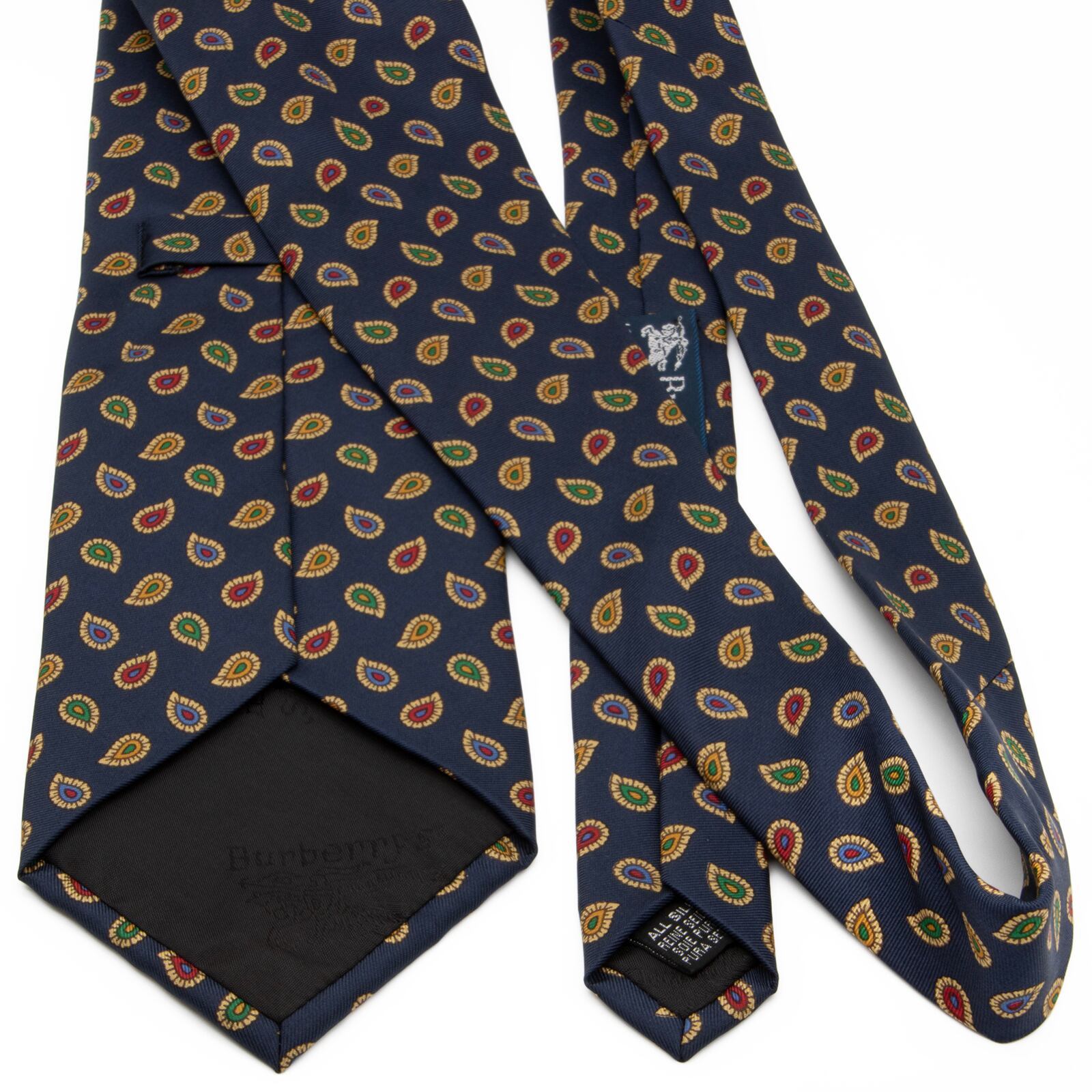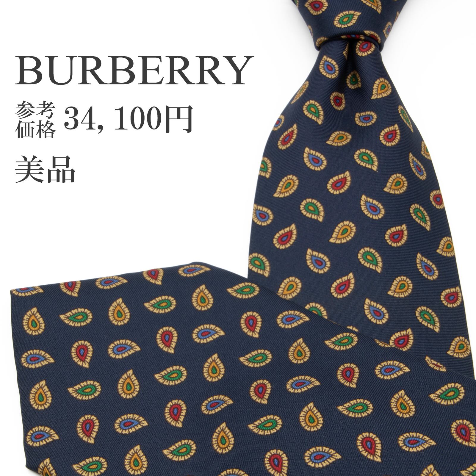 送料無料 バーバリー ネクタイ シルク ネイビーブルー 黄色 イエロー 緑 青 赤 ベージュ ペイズリー ブランド 珍しい おしゃれ 綺麗 P265