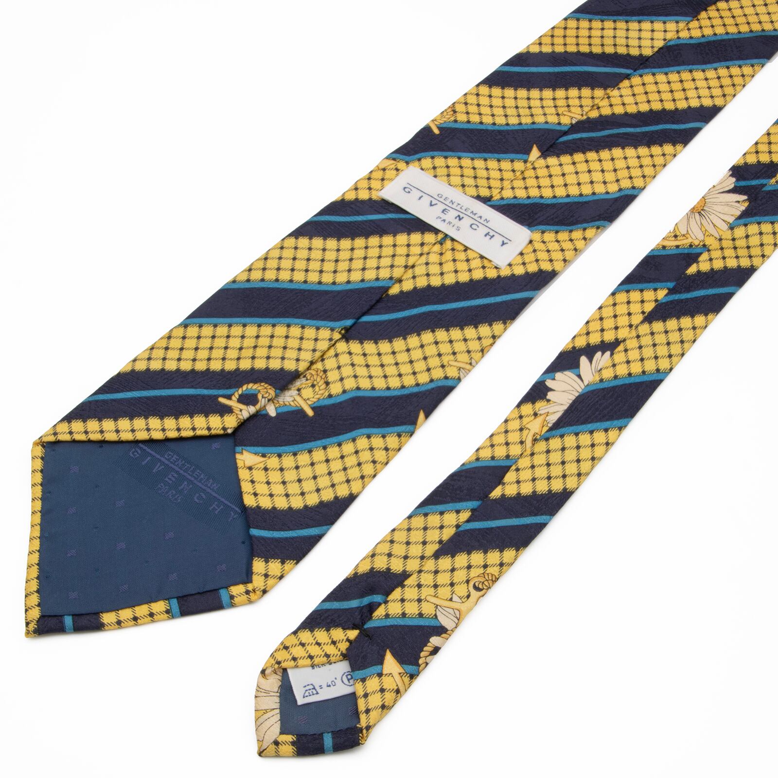 送料無料 ジバンシー ネクタイ ジャガードタイ シルク ネイビーブルー 黄色 青 ストライプ 花 フラワー 錨 ブランド イタリア製 綺麗 P269