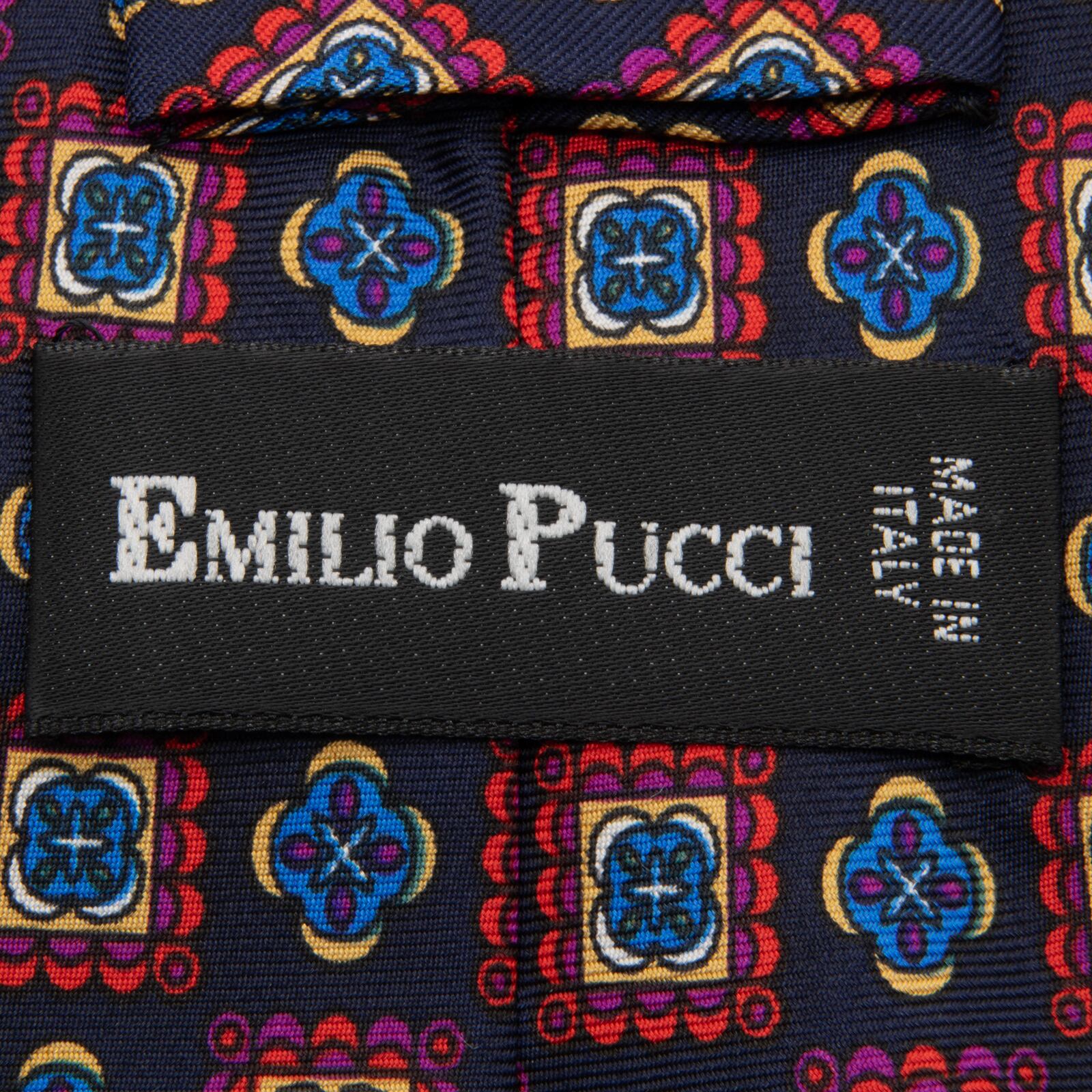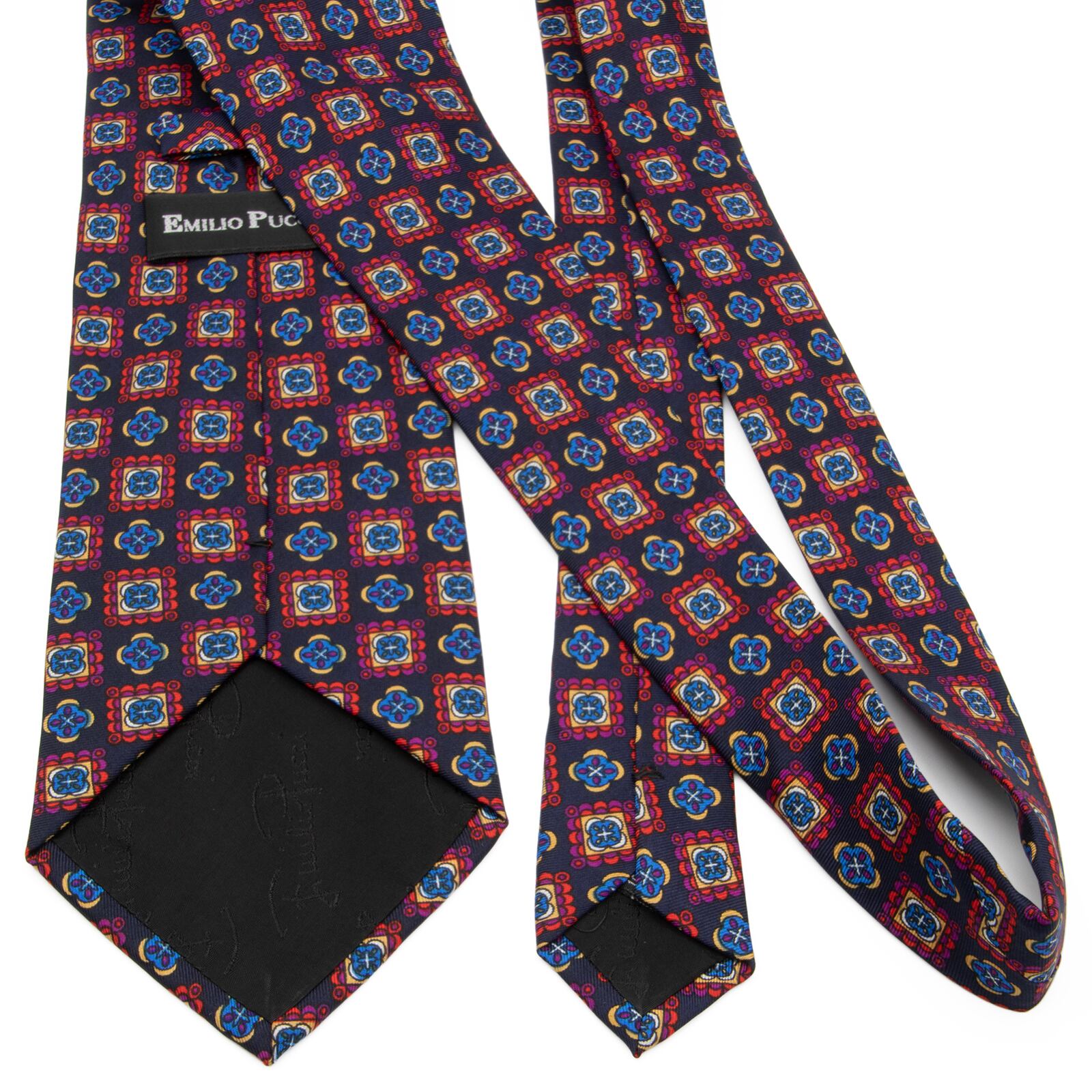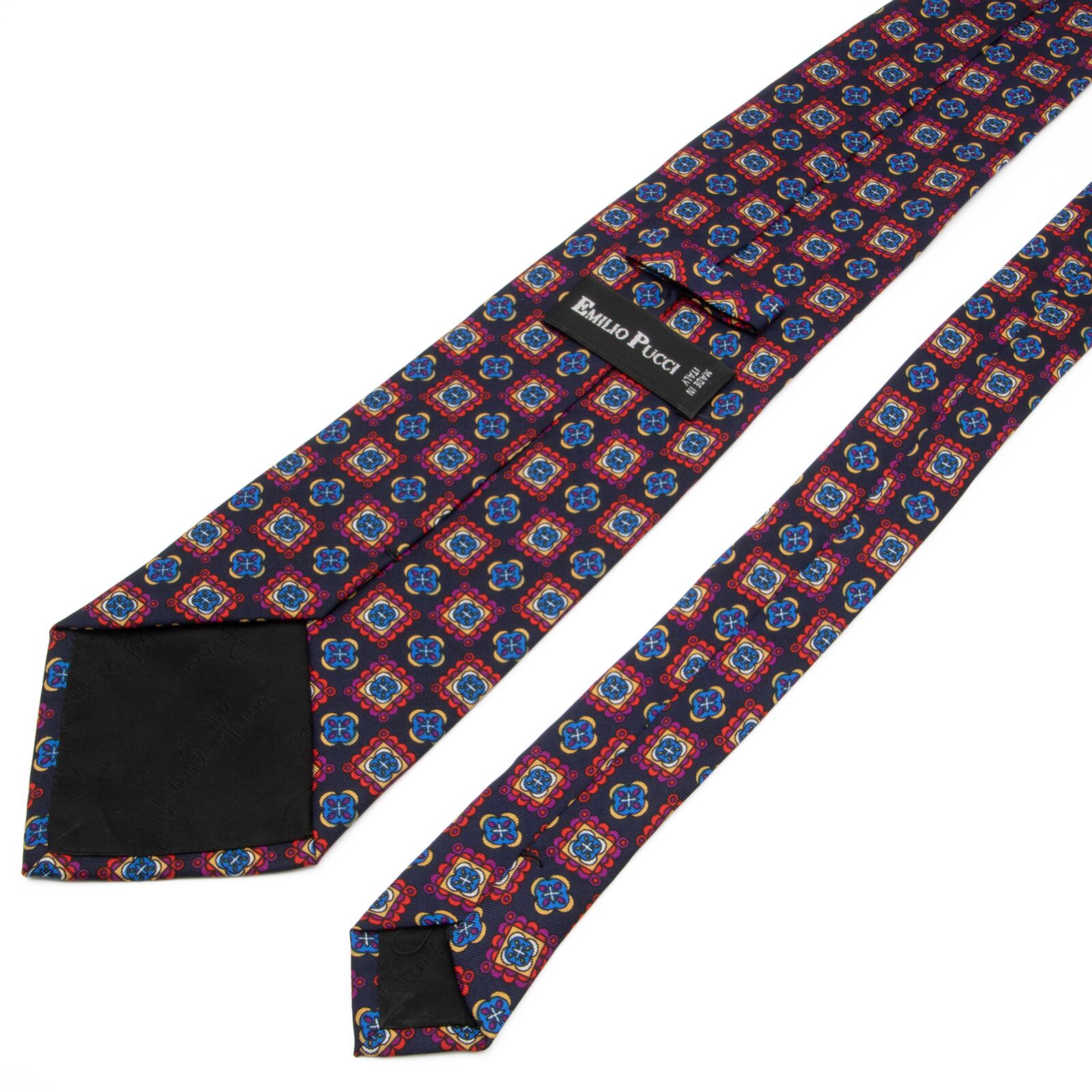 送料無料 エミリオプッチ ネクタイ 新品 シルク ネイビーブルー 青 紫 赤 ベージュ 白 紋様 マーク ブランド 珍しい イタリア製 綺麗 P276
