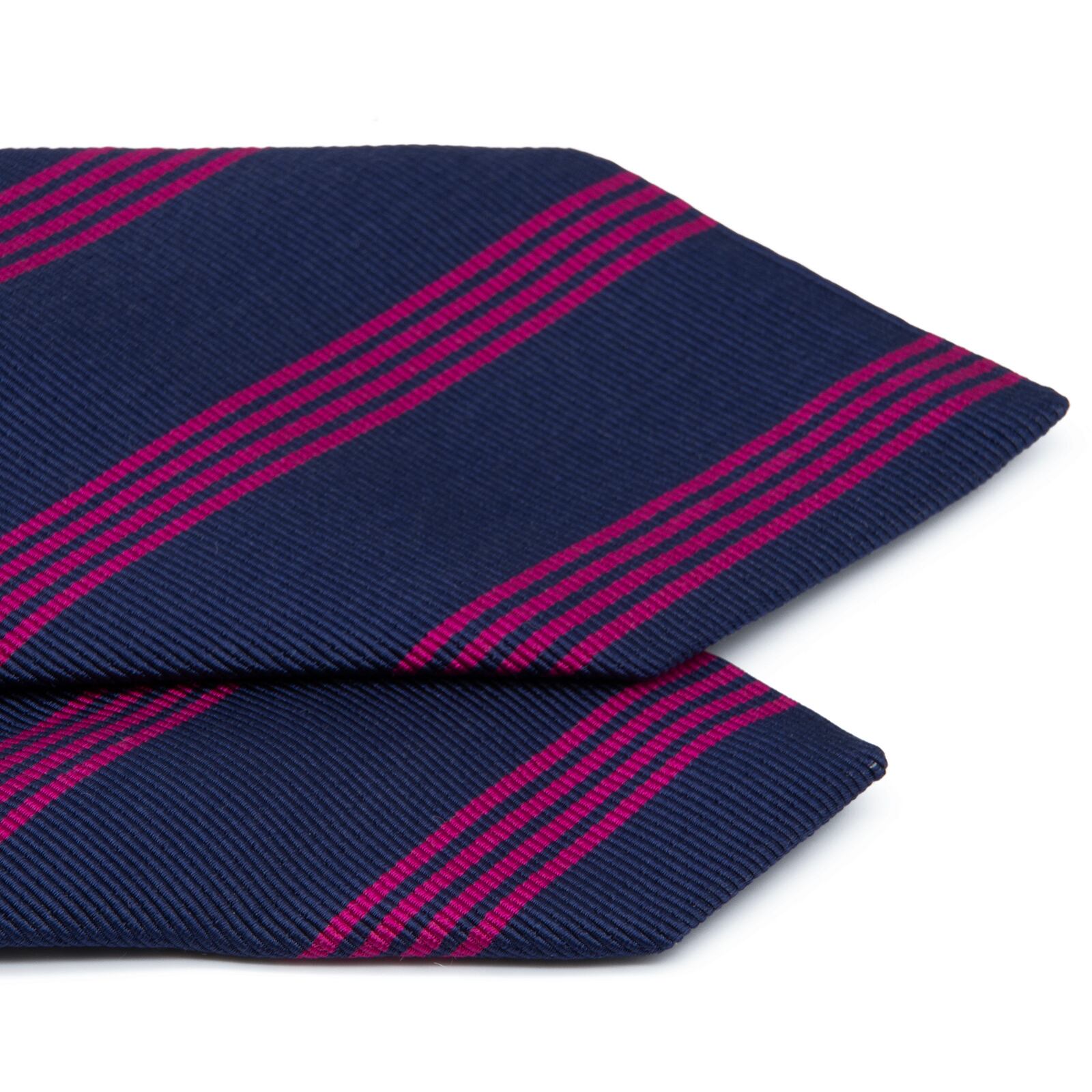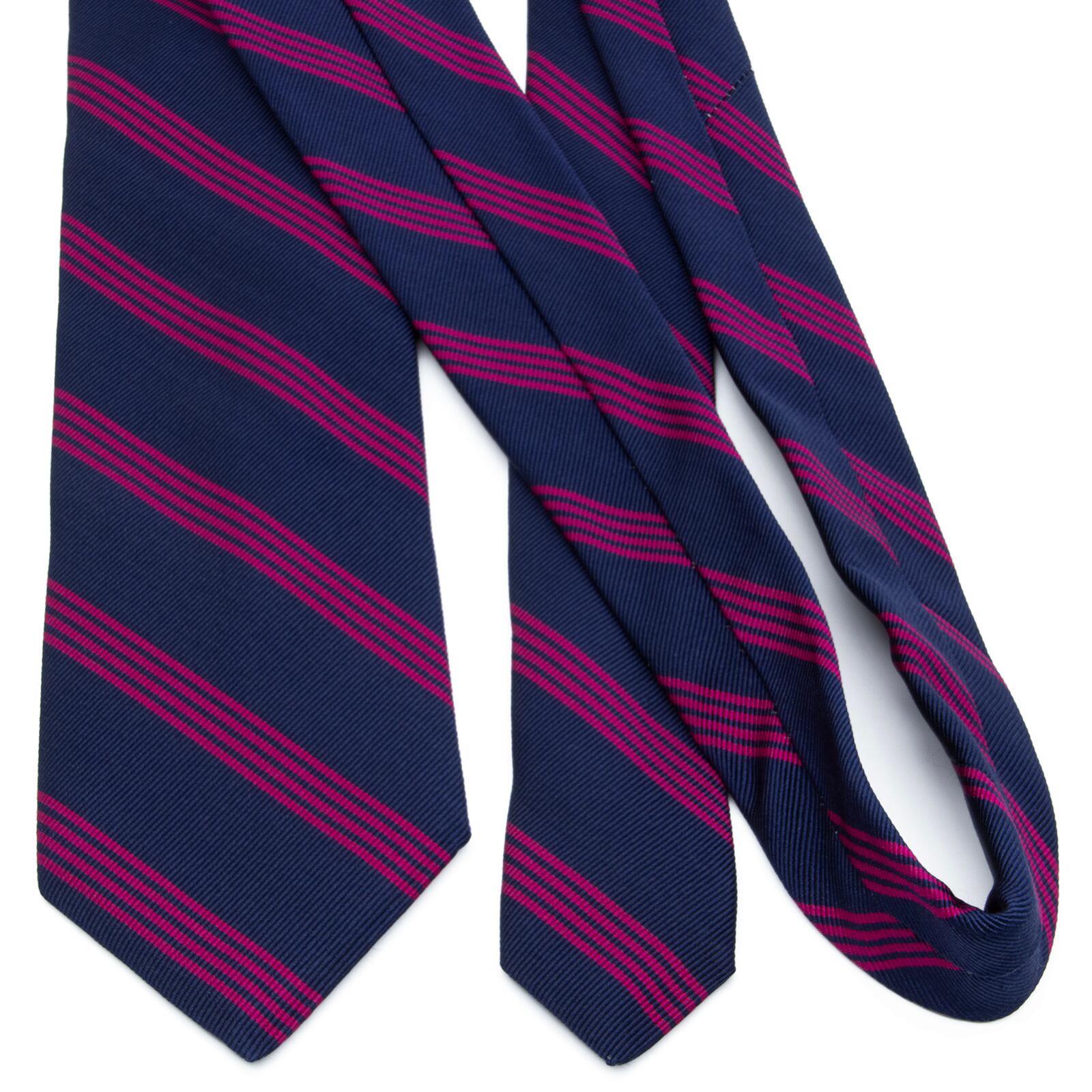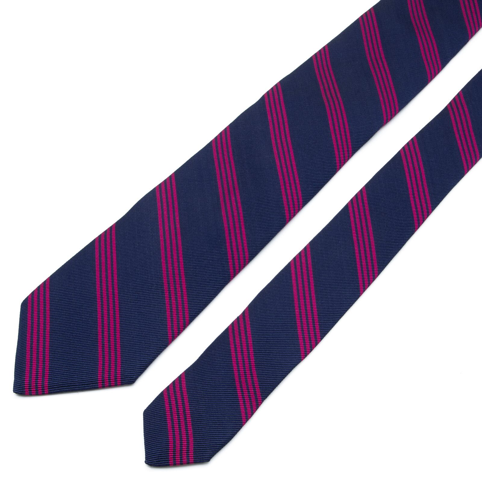 定番のネイビーストライプに、はっと目を惹くような、華やかなパープルを組み合わせたモダンな一本。