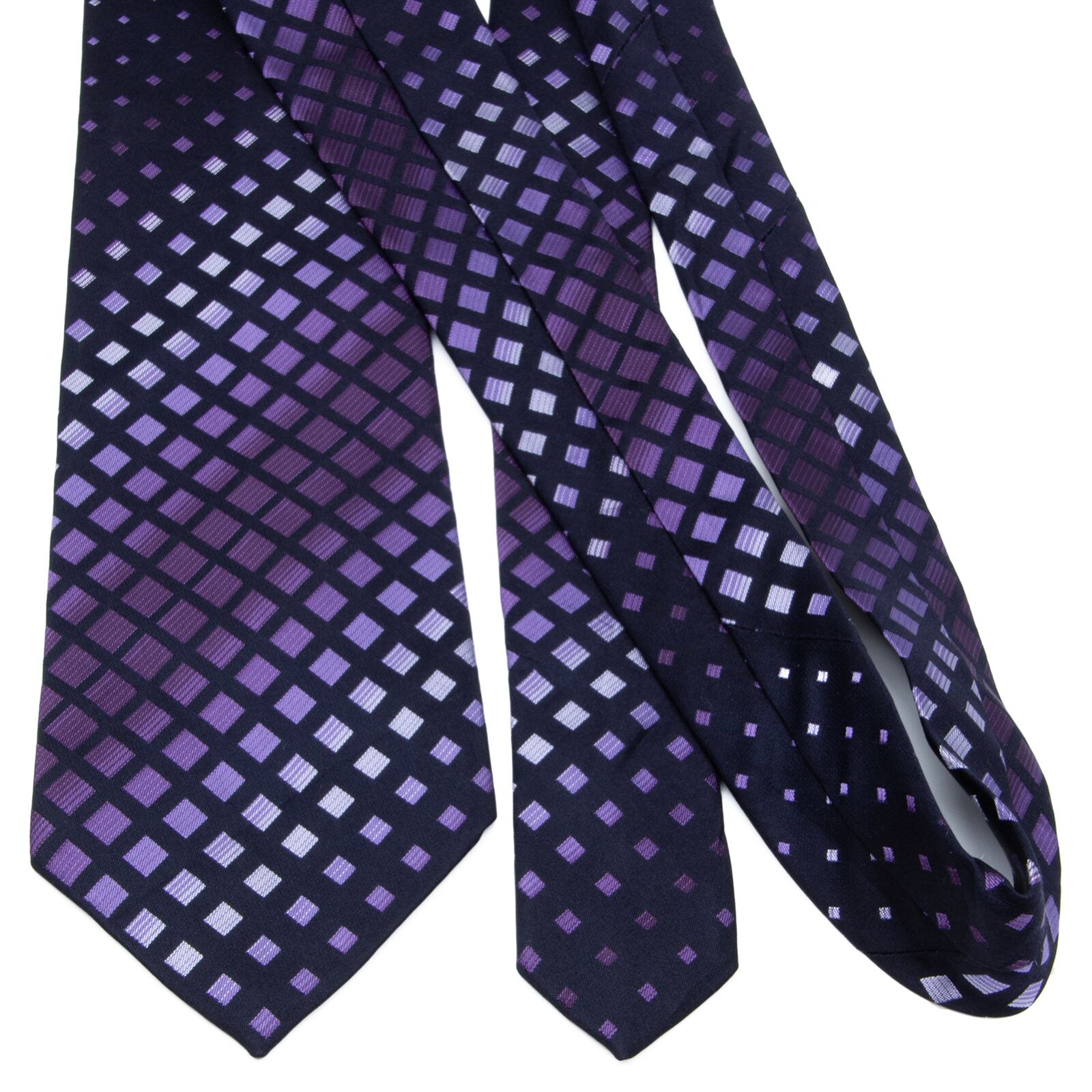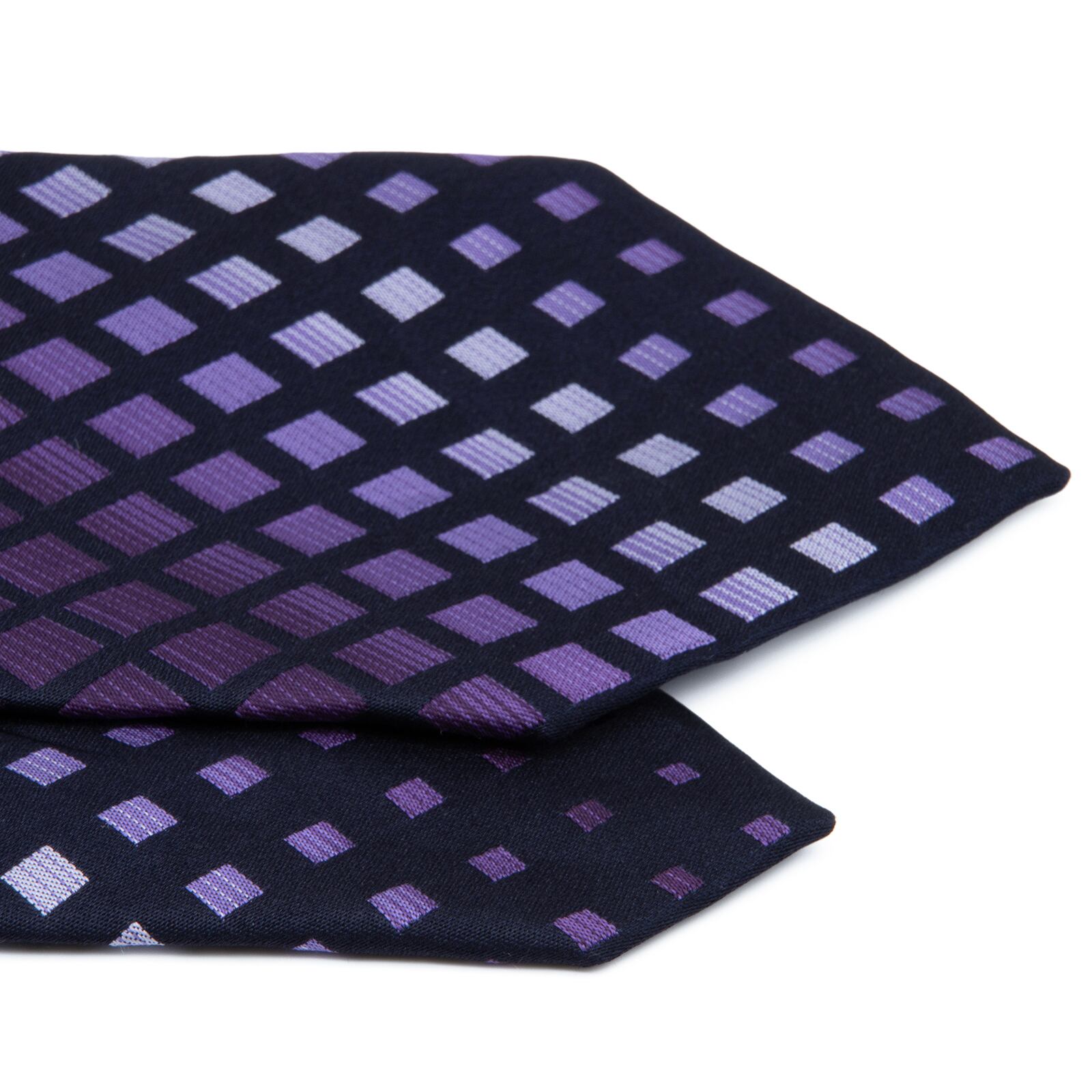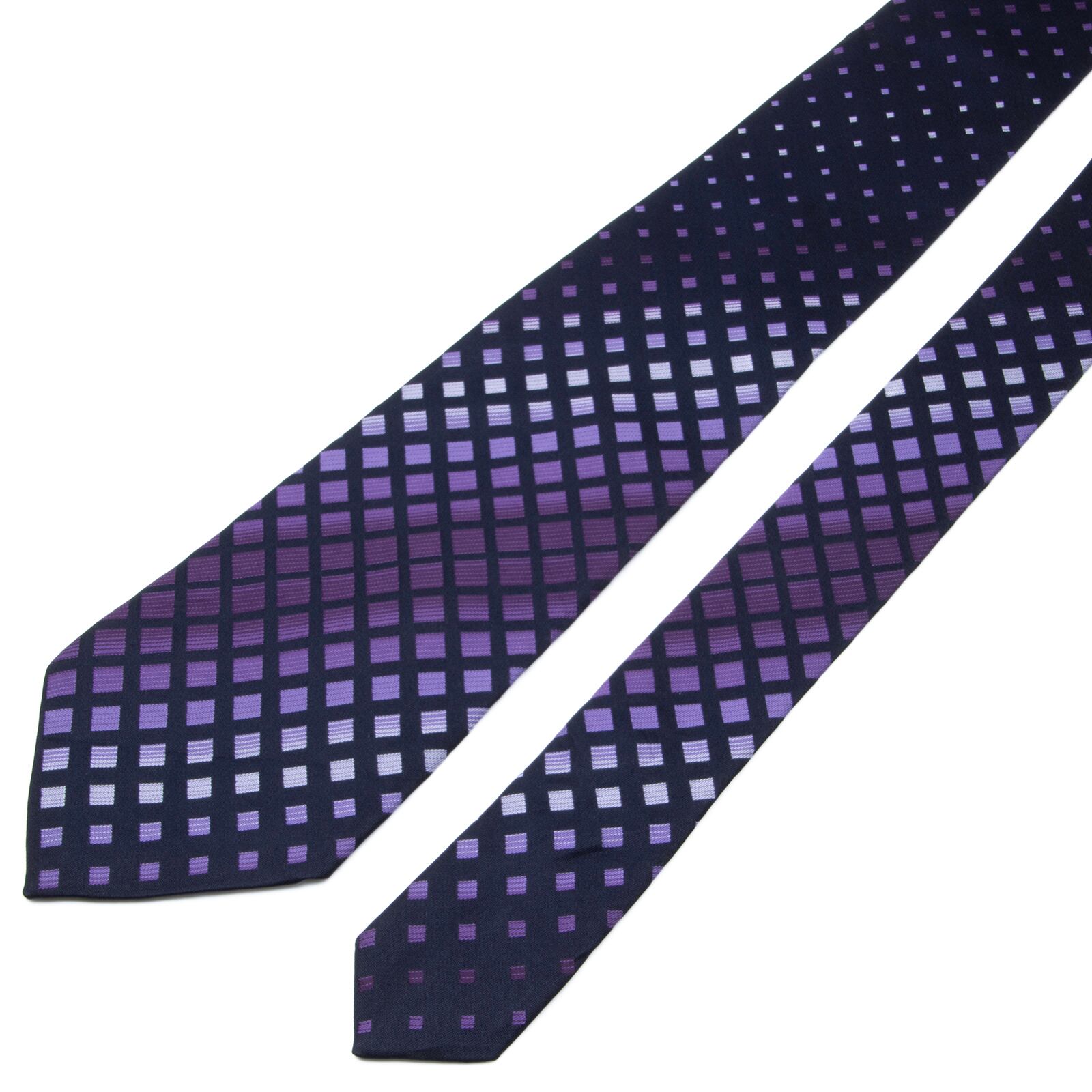 送料無料 ダナキャラン ネクタイ レギュラータイ ジャガード シルク 紫 パープル ネイビーブルー グラデーション 四角 光沢 ブランド P388