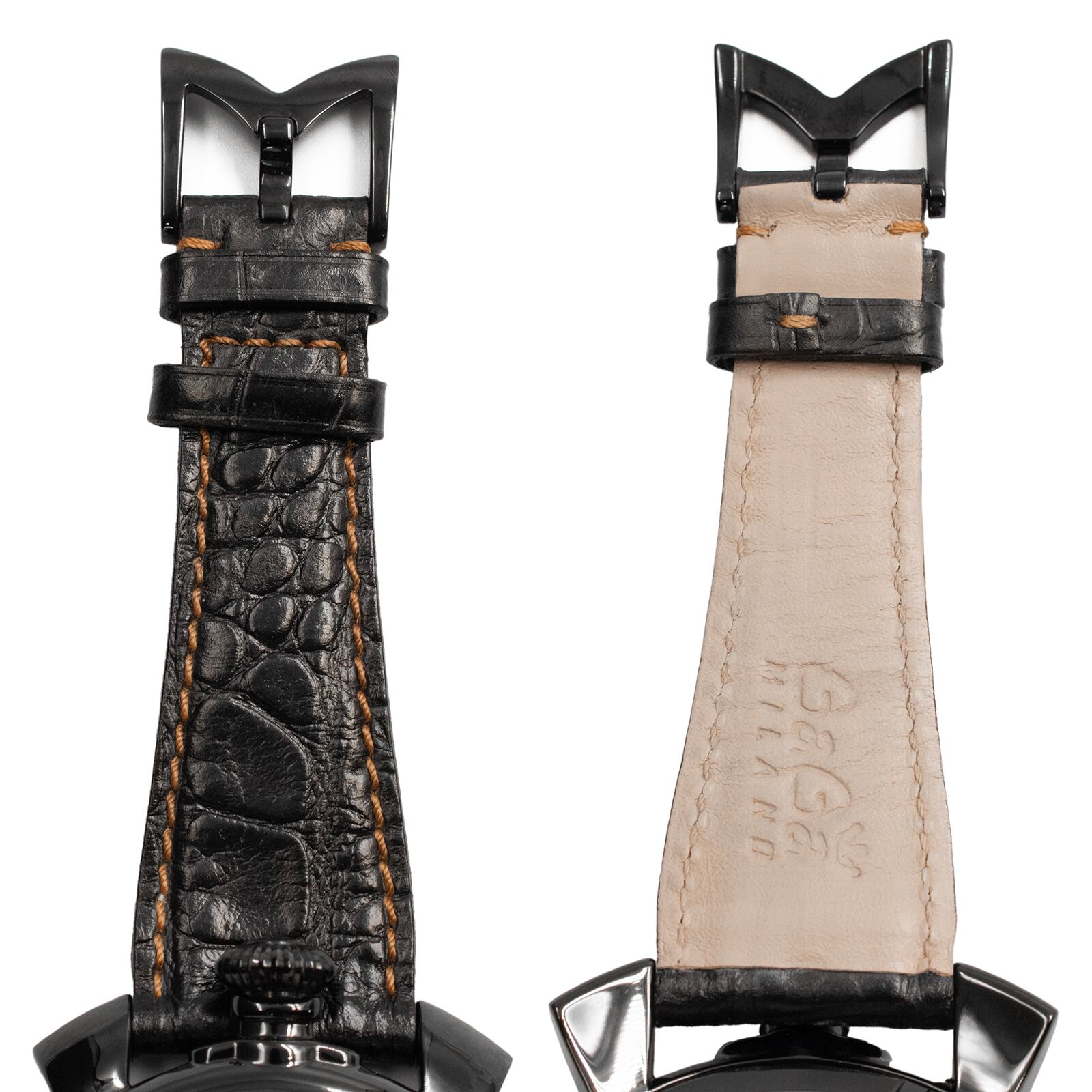 こちらはブラックを基調としたクールで都会的な印象を与えてくれる、ガガミラノの腕時計でございます。