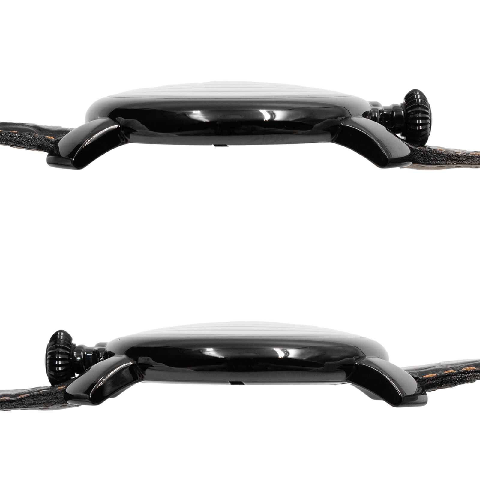 艶やかなブラックのケースと文字盤に、ベージュ系のアラビア数字が浮かび上がるように配されております。