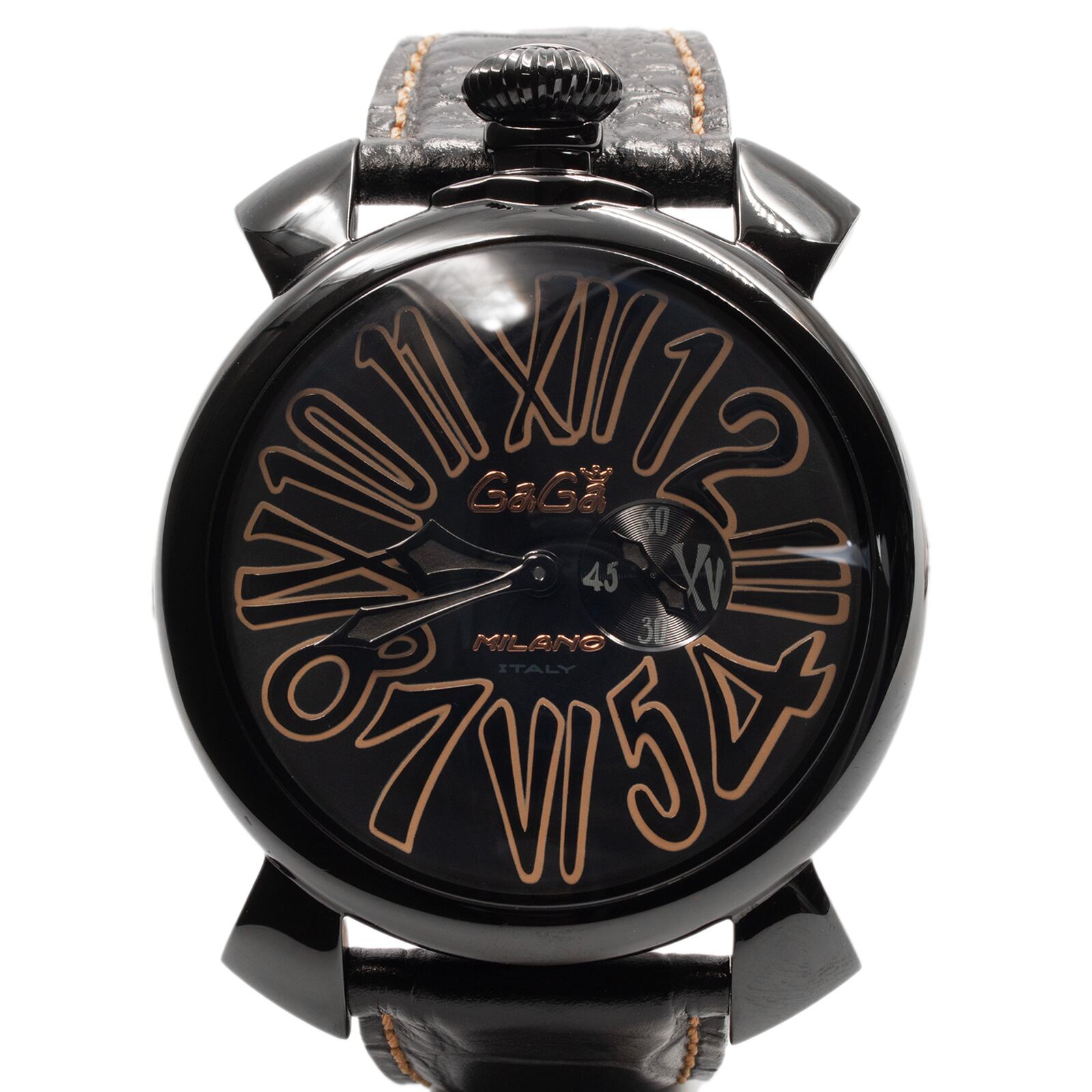 送料無料 ガガミラノ 腕時計 メンズ マヌアーレ スリム46mm 5086.1 黒 ベージュ ピンクゴールド 目立つ ロゴ 革ベルト ブランド 綺麗 X297