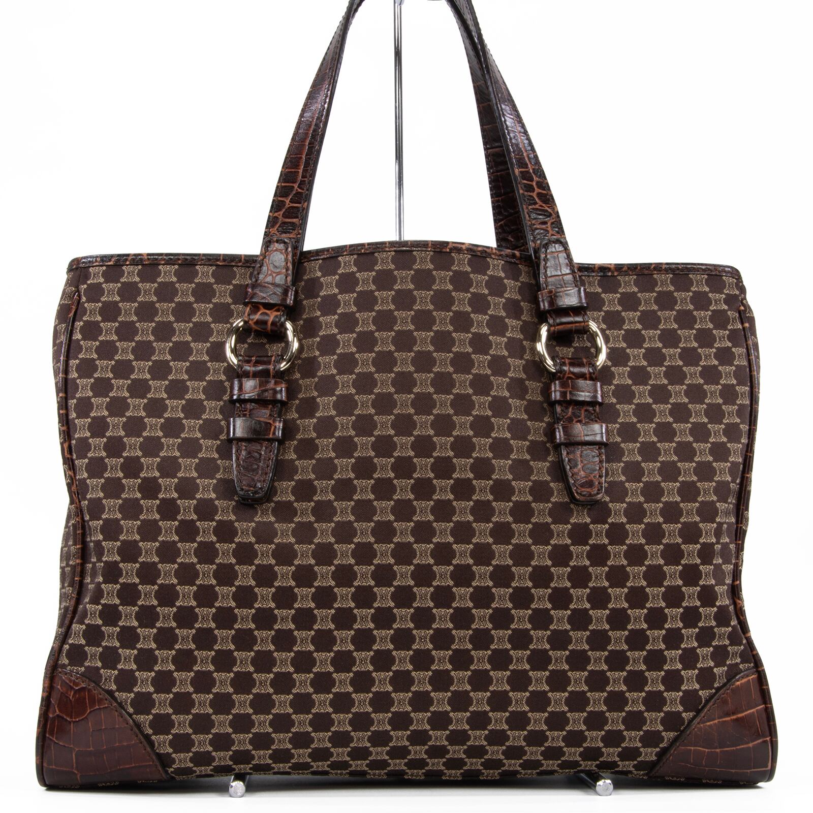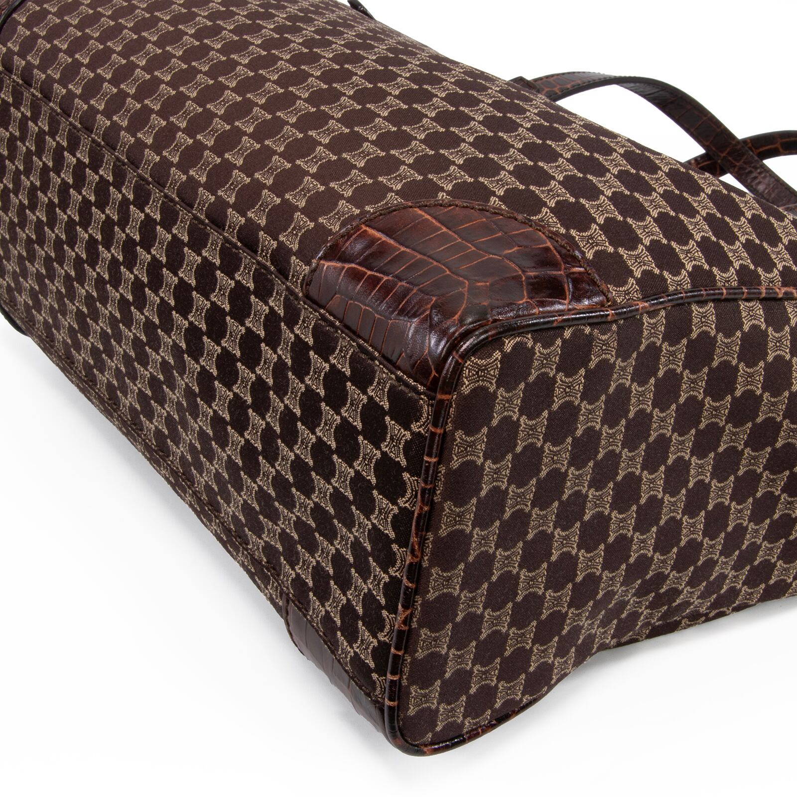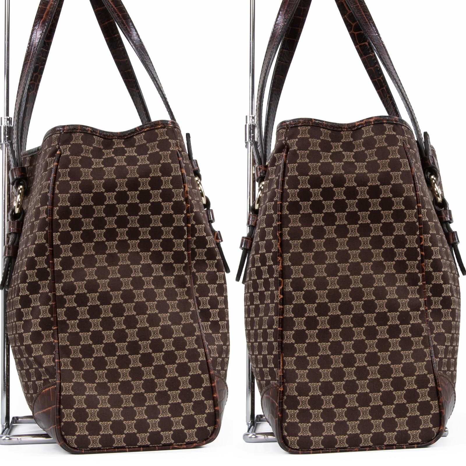 本物 送料無料 セリーヌ ハンドバッグ トートバッグ レディース マカダム 茶色 肩掛け A4対応 ブラゾン ロゴ マーク 鞄 バック 綺麗 F266