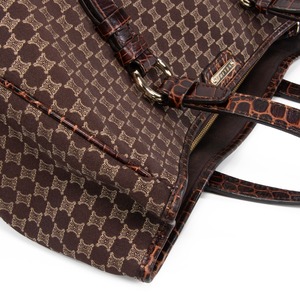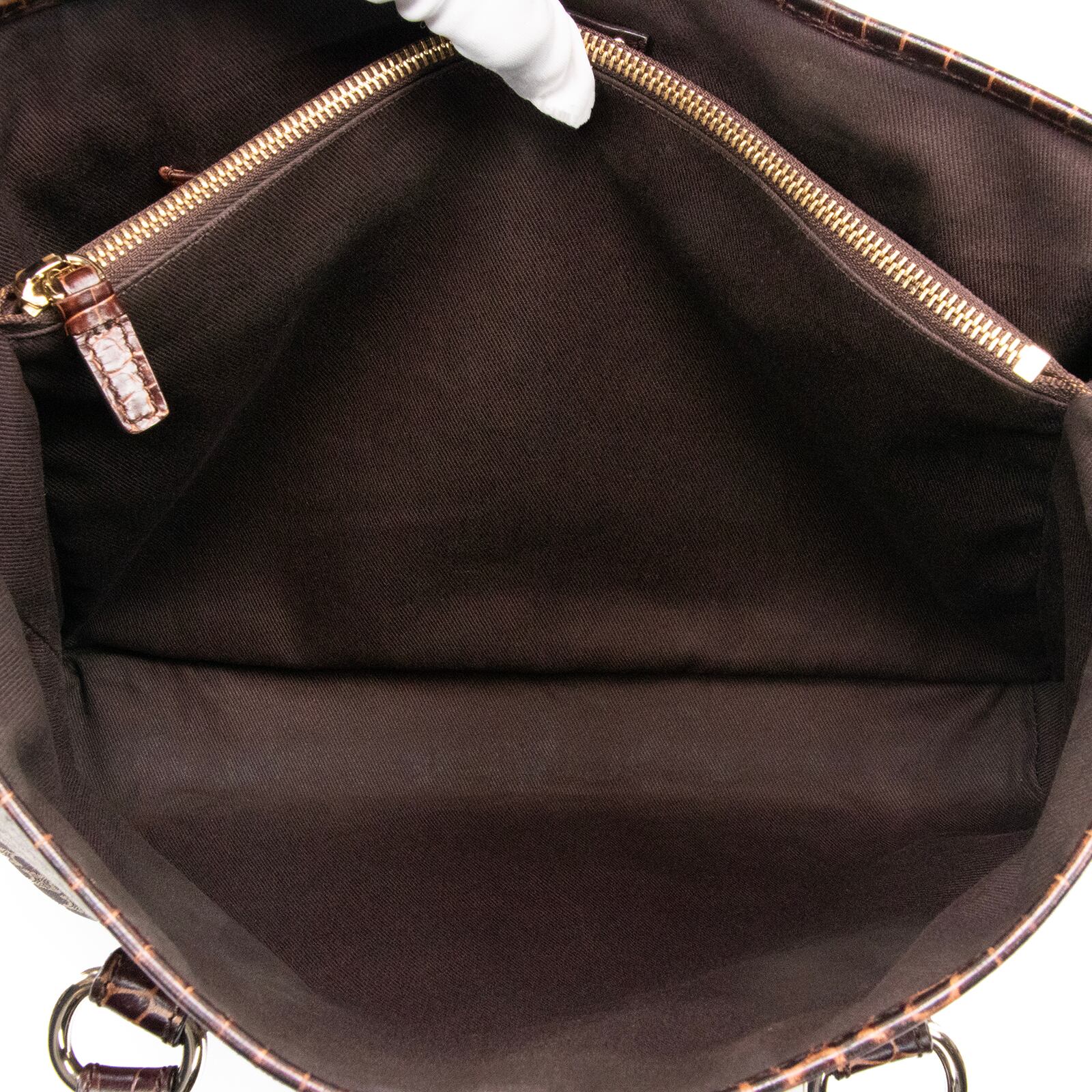 ブランドを象徴するマカダム柄のキャンバスに、艶やかなクロコ型押しレザーが組み合わせられております。