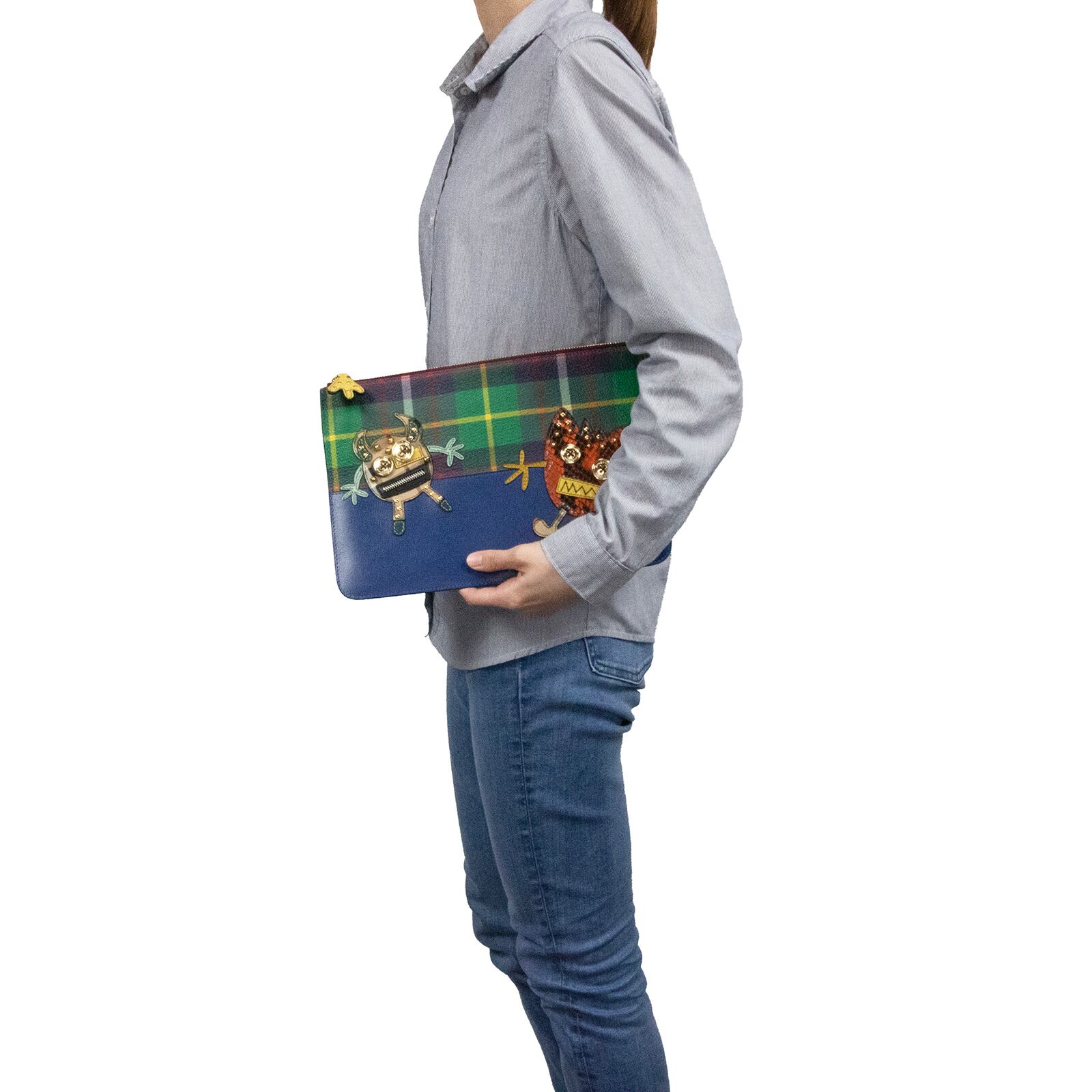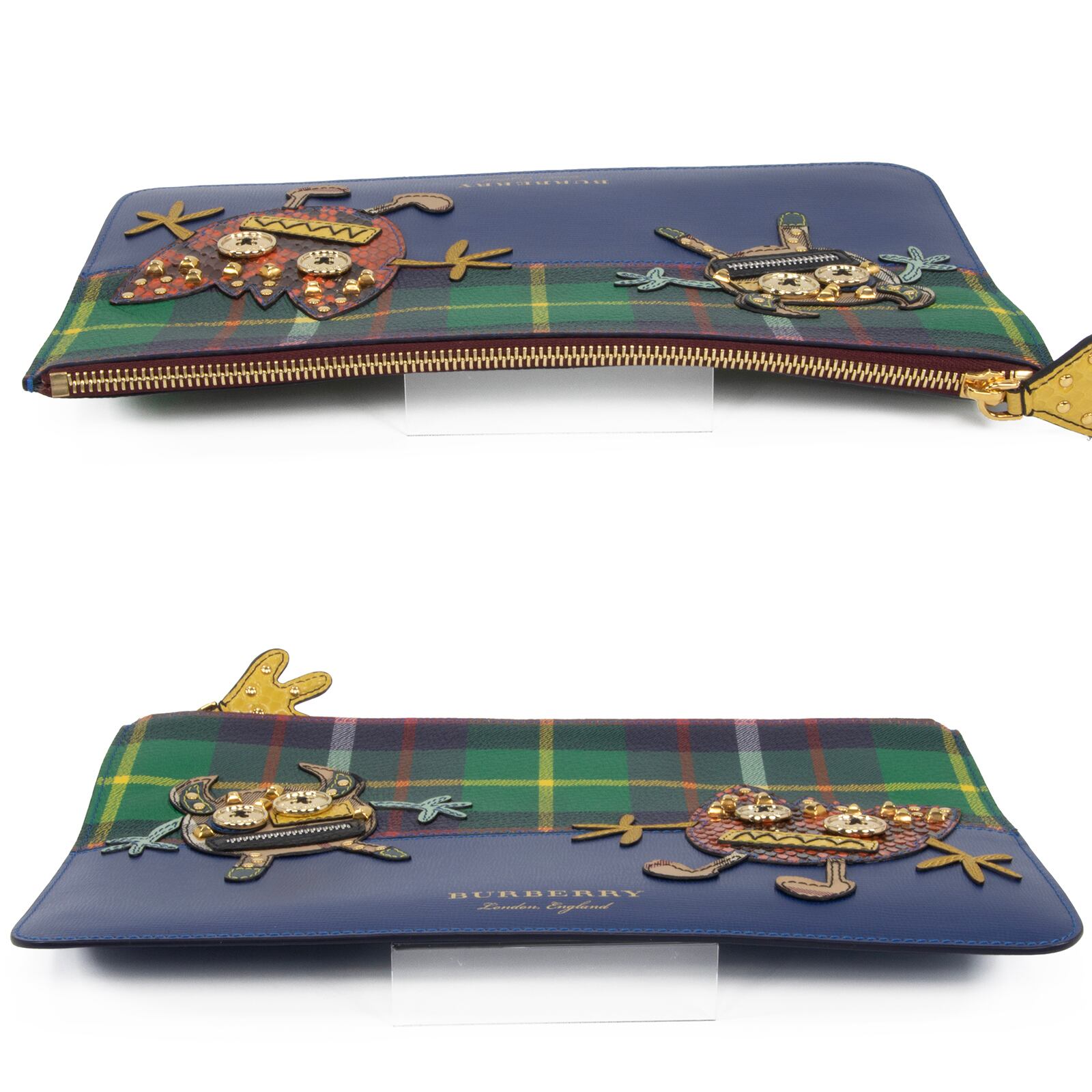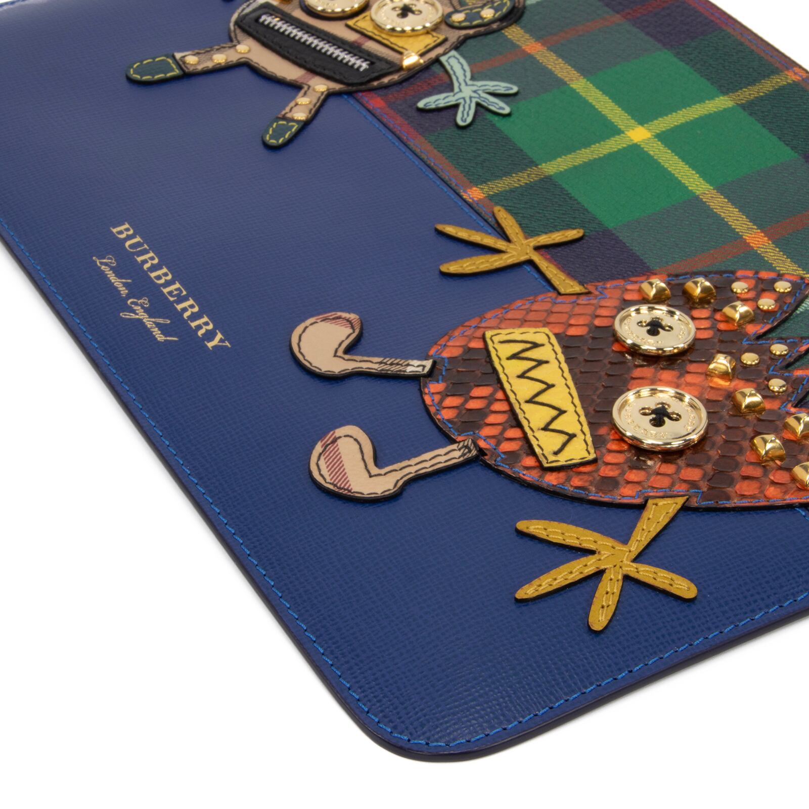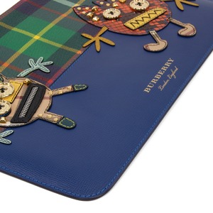 こちらは伝統のチェック柄に遊び心あふれるモンスターが描かれた、バーバリーのクラッチバッグでございます。