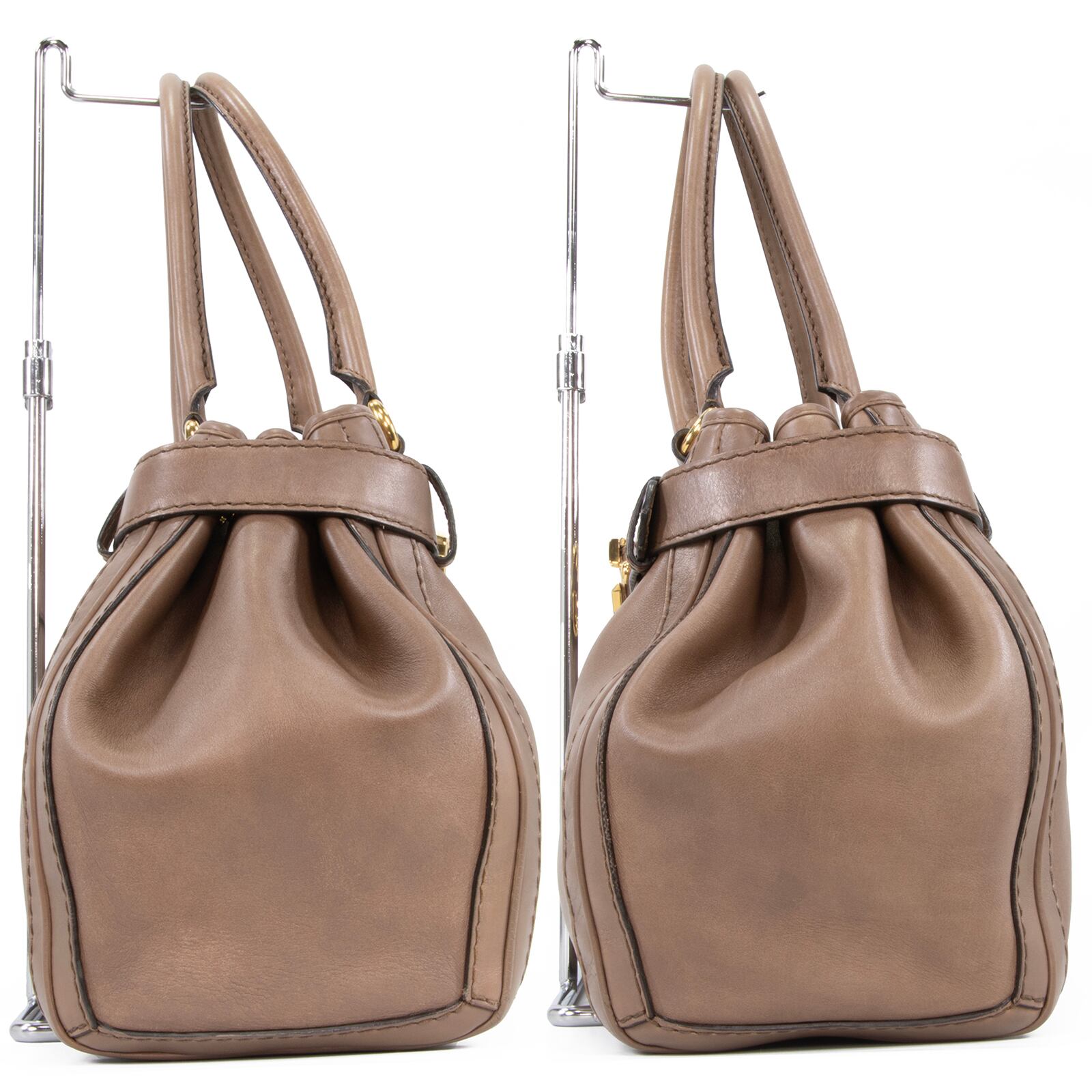 両サイドのプリーツのようなアクセントも、バッグのフォルムに美しい立体感を与えております。