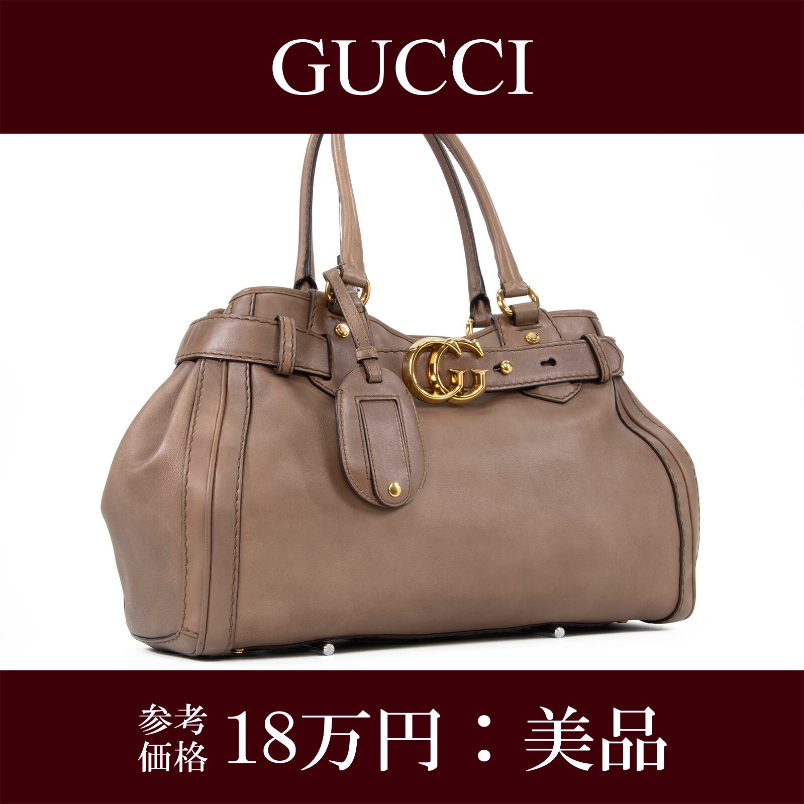 本物 送料無料 グッチ ハンドバッグ レディース GGランニング グレージュ 自立可能 GGロゴ マーク 本革 ゴールド金具 鞄 バック 綺麗 F268