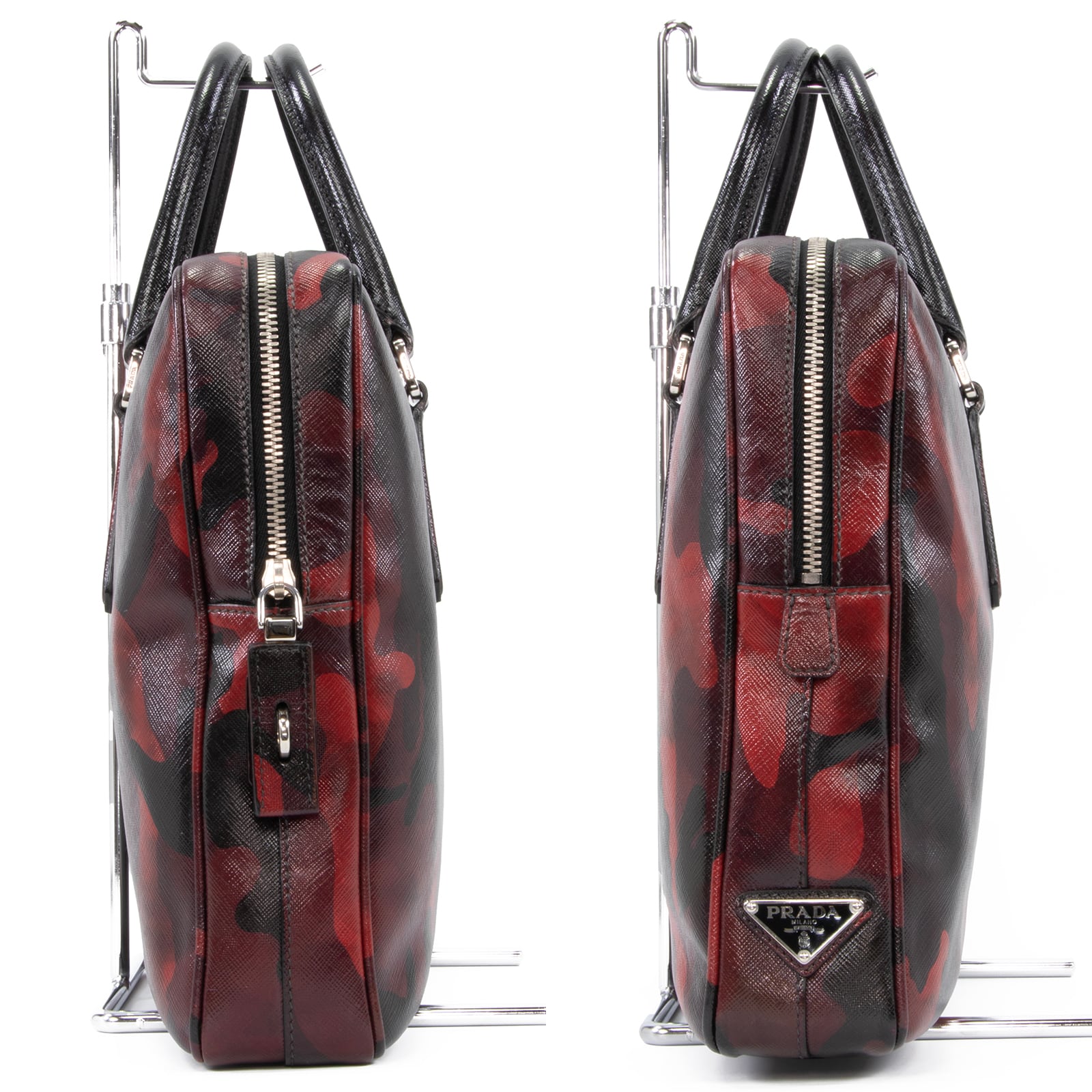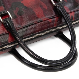 本物 送料無料 プラダ ビジネスバッグ メンズ カモフラ RAME 赤 ボルドー 黒 大きい 迷彩 ミリタリー 三角ロゴ マーク 本革 鞄 バック F270