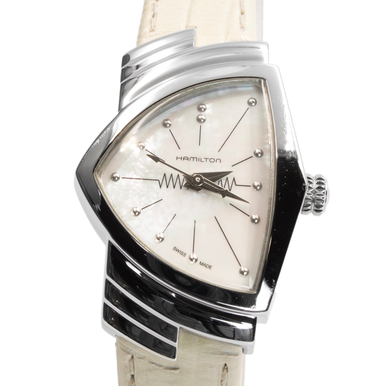送料無料 ハミルトン 腕時計 レディース ベンチュラ H24211852 白蝶貝 マザーオブパール 盾形 三角形 トライアングル ロゴ 革ベルト Q138