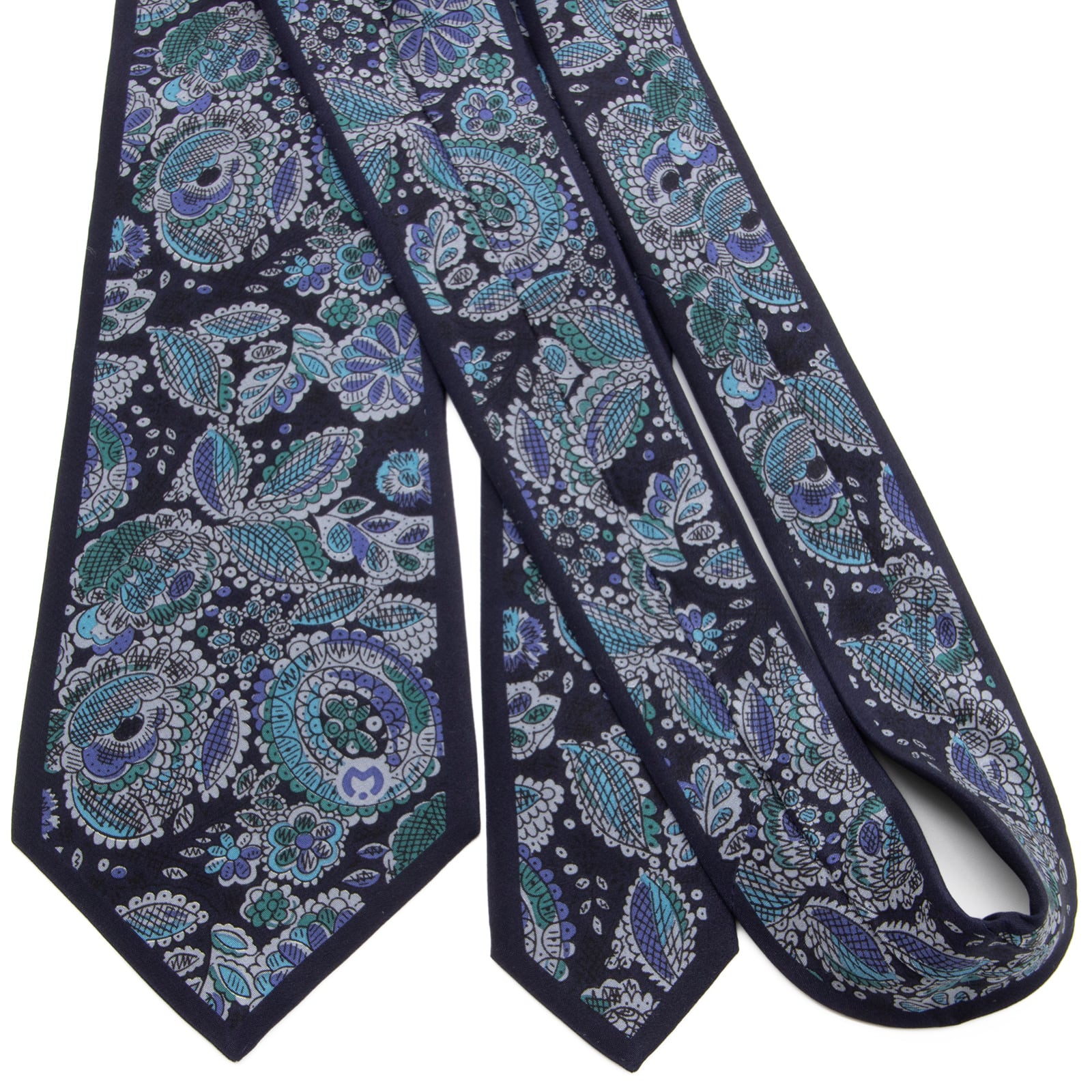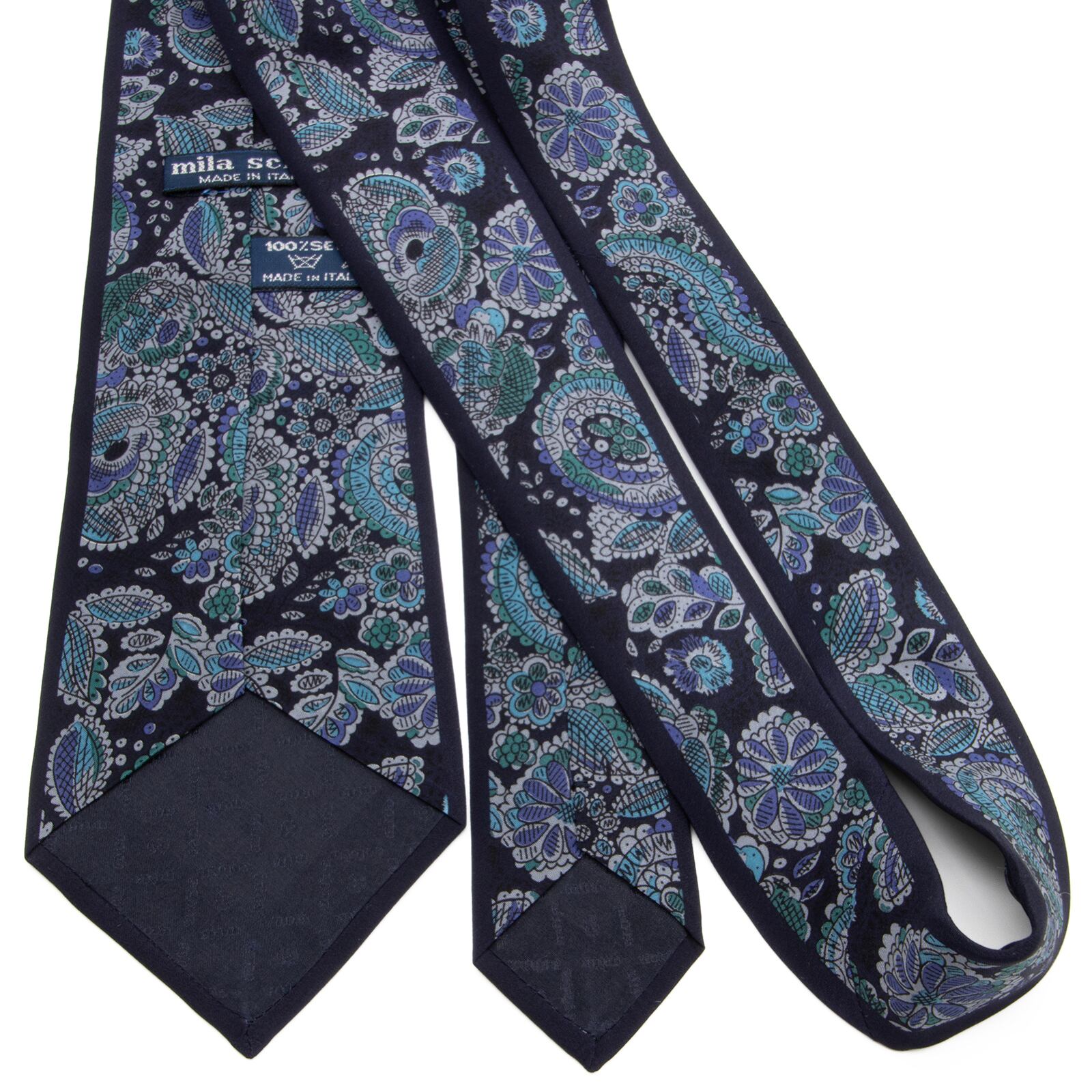 送料無料 ミラショーン ネクタイ レギュラータイ 新品 シルク ネイビーブルー グレー 青 水色 緑 花 葉 マーク ブランド イタリア製 P332