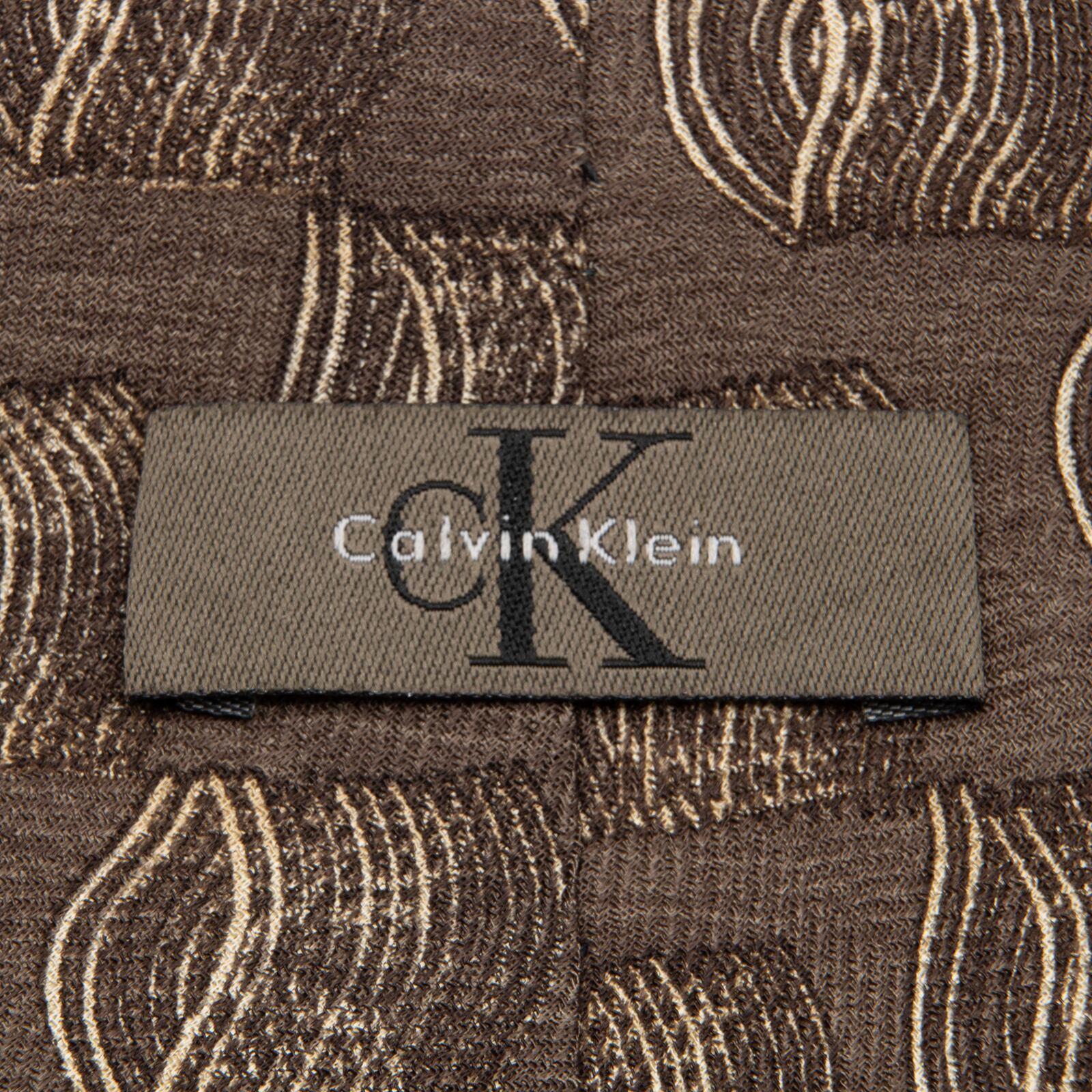送料無料 カルバンクライン ネクタイ ジャガードタイ 新品同様 シルク 茶色 ブラウン ベージュ ビジネス カジュアル ブランド 綺麗 P395