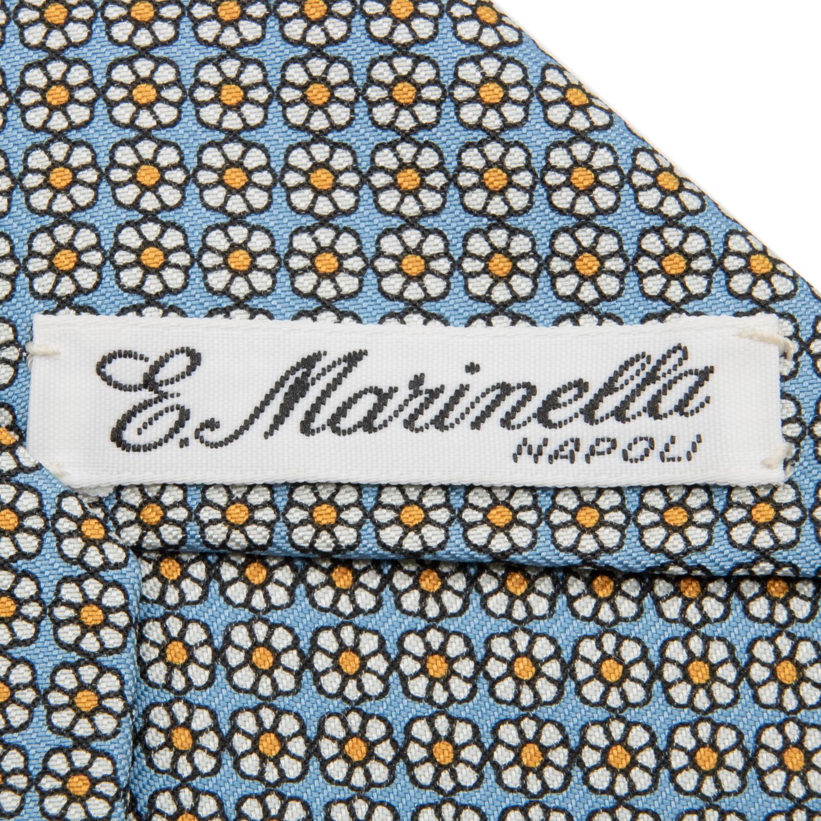 送料無料 マリネッラ ネクタイ 新品 シルク 水色 白 ホワイト 黄色 イエロー ビジネス カジュアル 小紋 花 フラワー ブランド 綺麗 P409