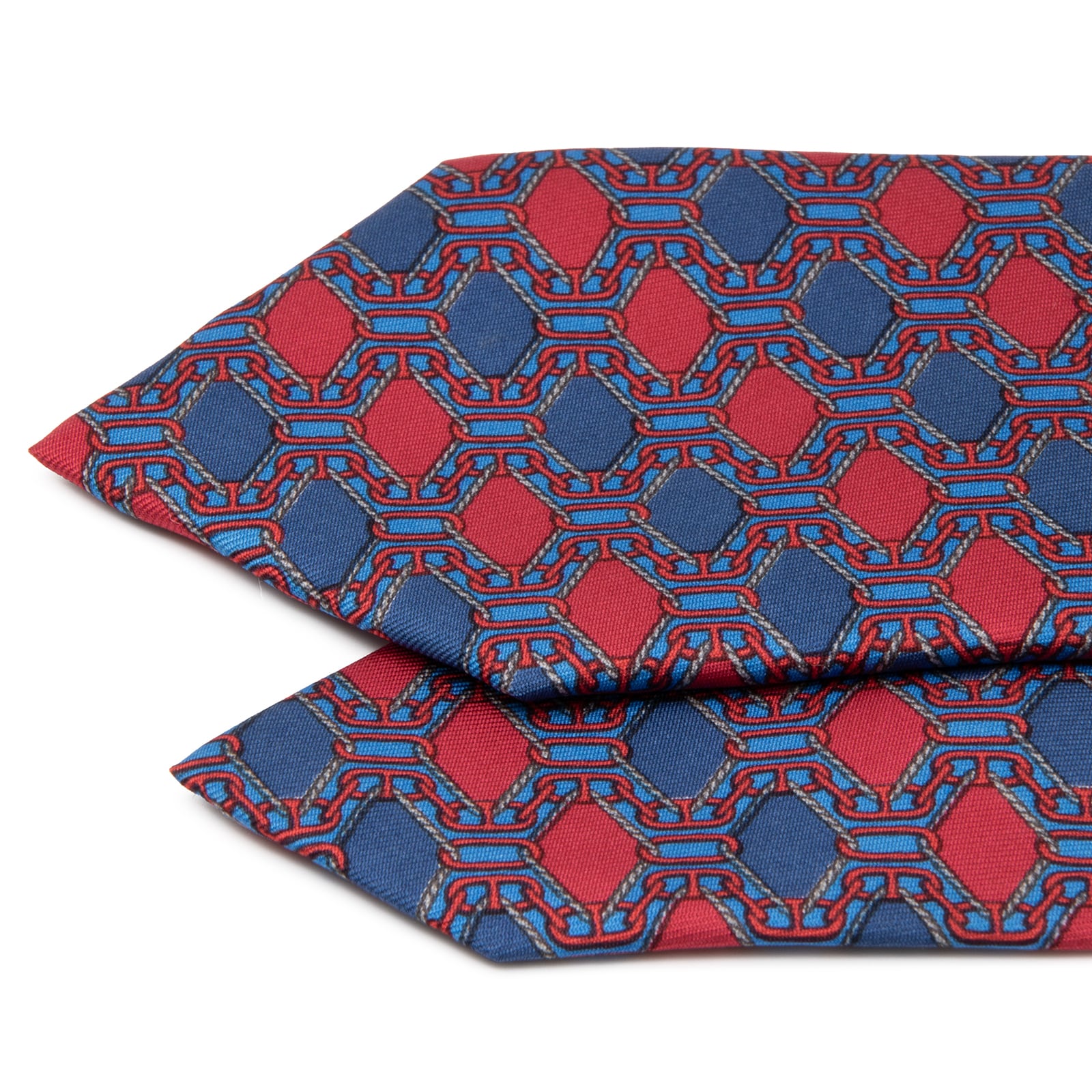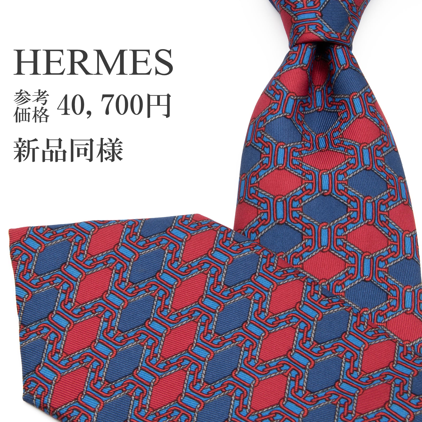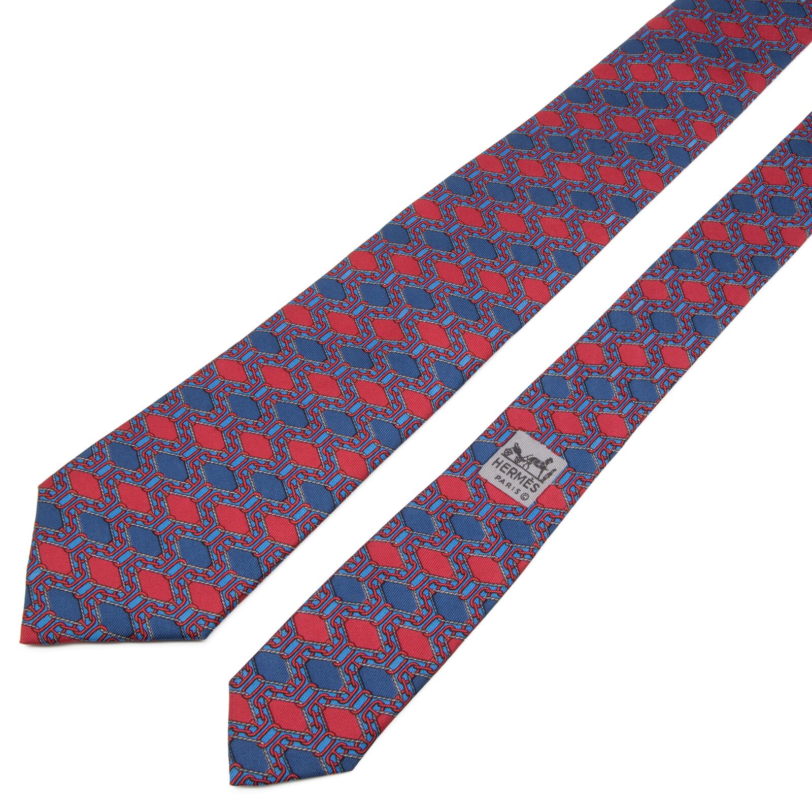 送料無料 エルメス ネクタイ レギュラータイ 新品同様 シルク 青 ブルー 赤 水色 グレー シェーヌダンクル 四角 ブランド 珍しい 綺麗 P695