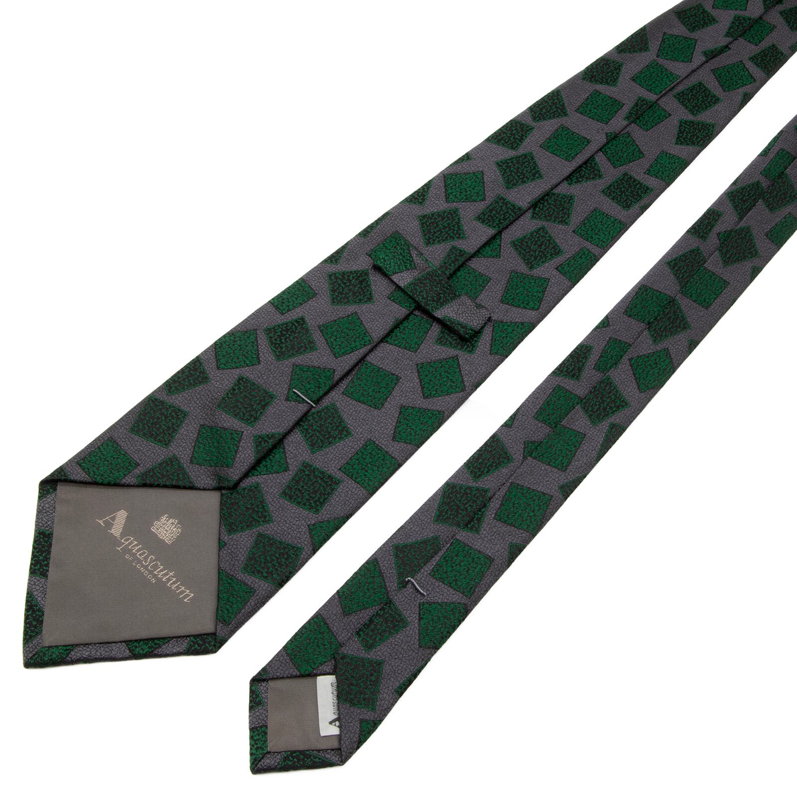 送料無料 アクアスキュータム ネクタイ ジャガードタイ 新品 シルク 緑 グリーン グレー 黒 ブラック 四角 スクエア 光沢 ブランド P715
