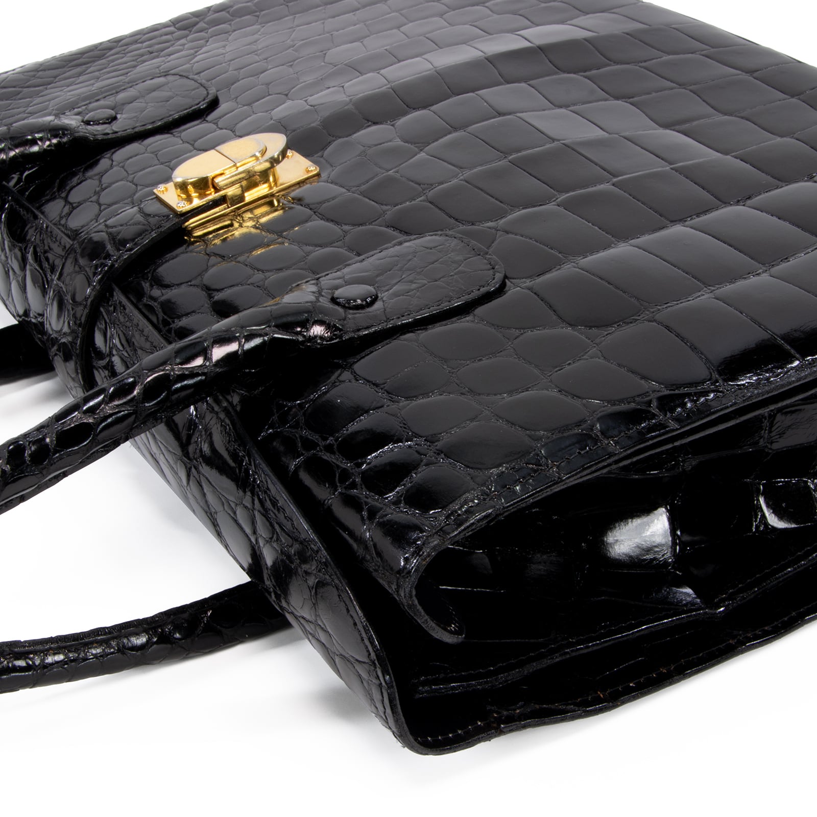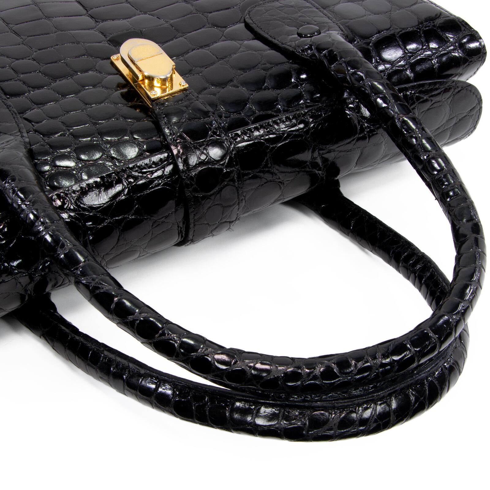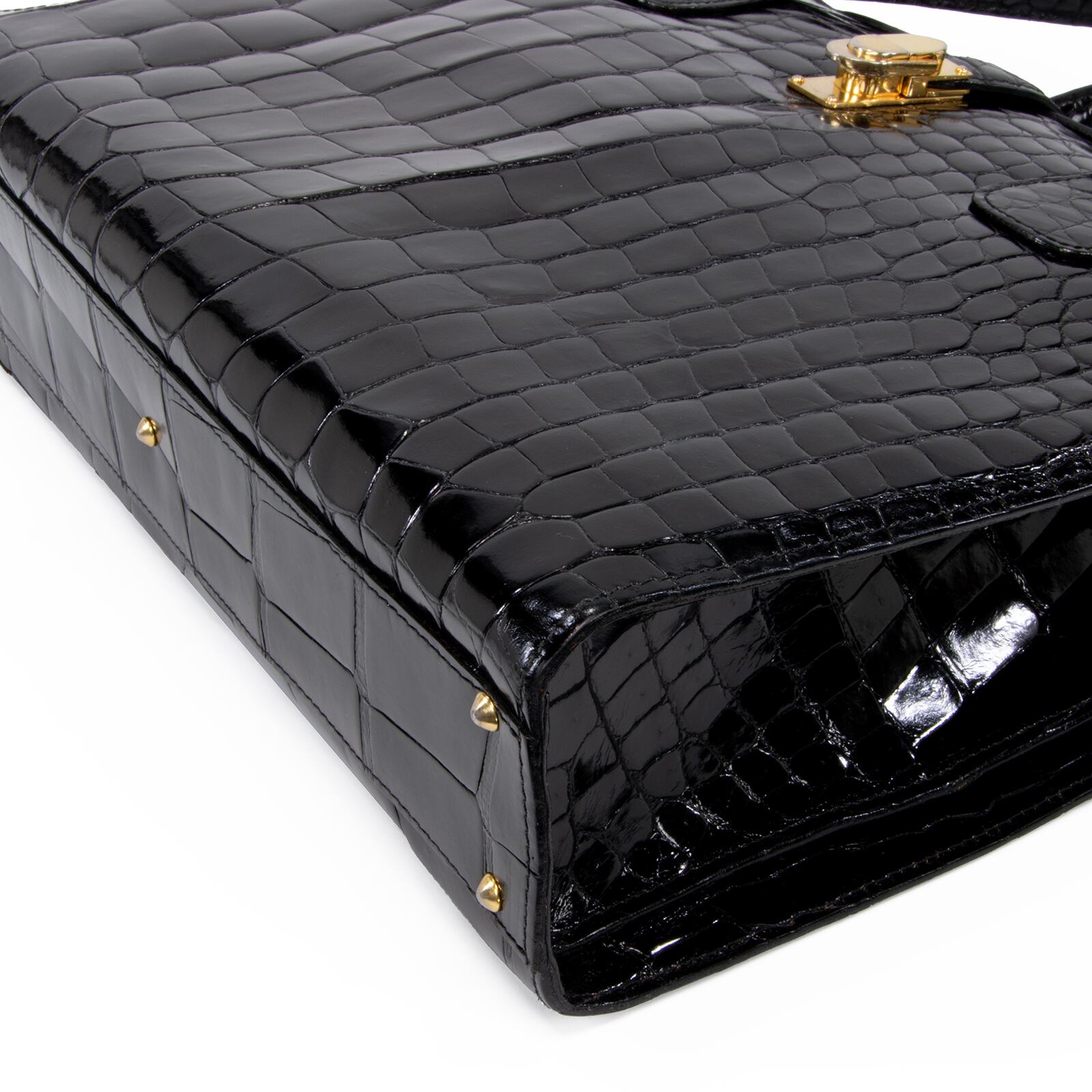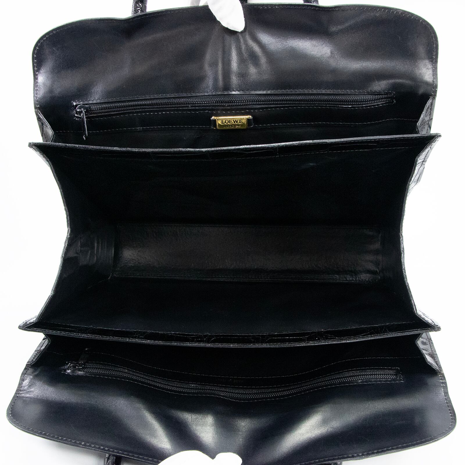 本物 送料無料 ロエベ ビジネスバッグ ブリーフケース メンズ クロコダイル 黒 ブラック エキゾチックレザー 光沢 鞄 バック 綺麗 B303