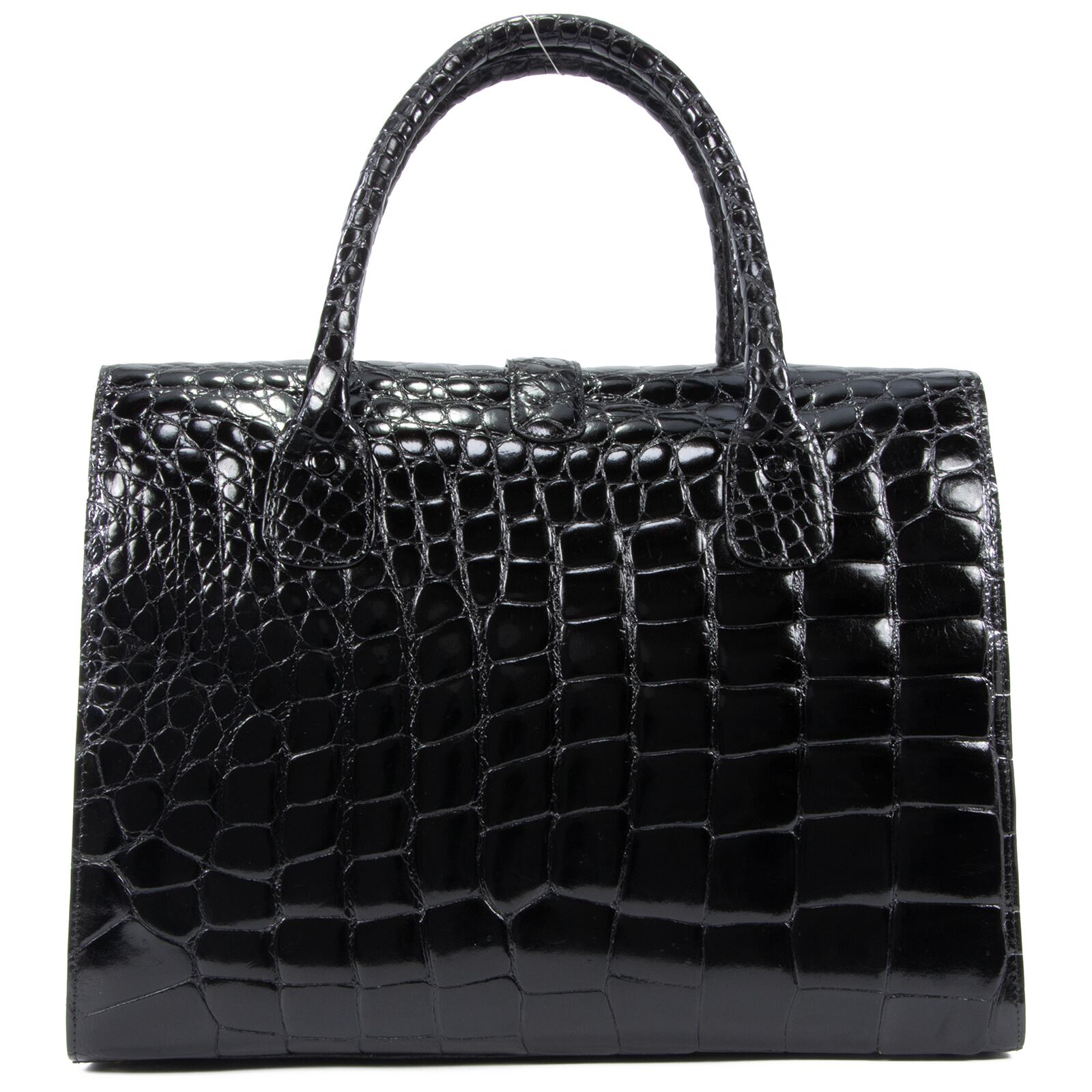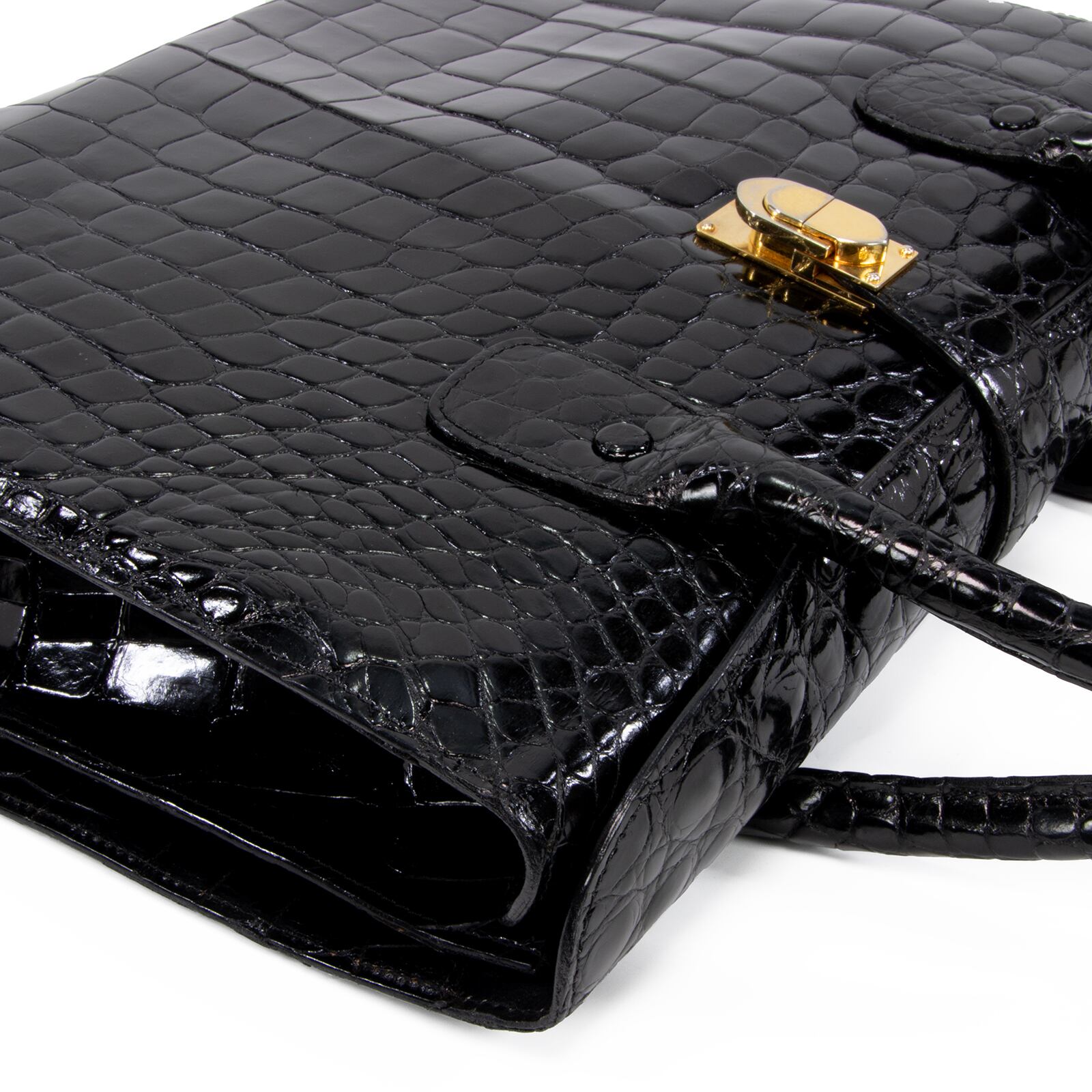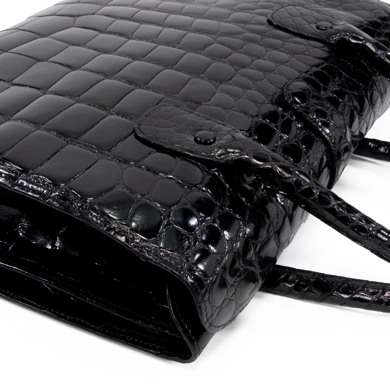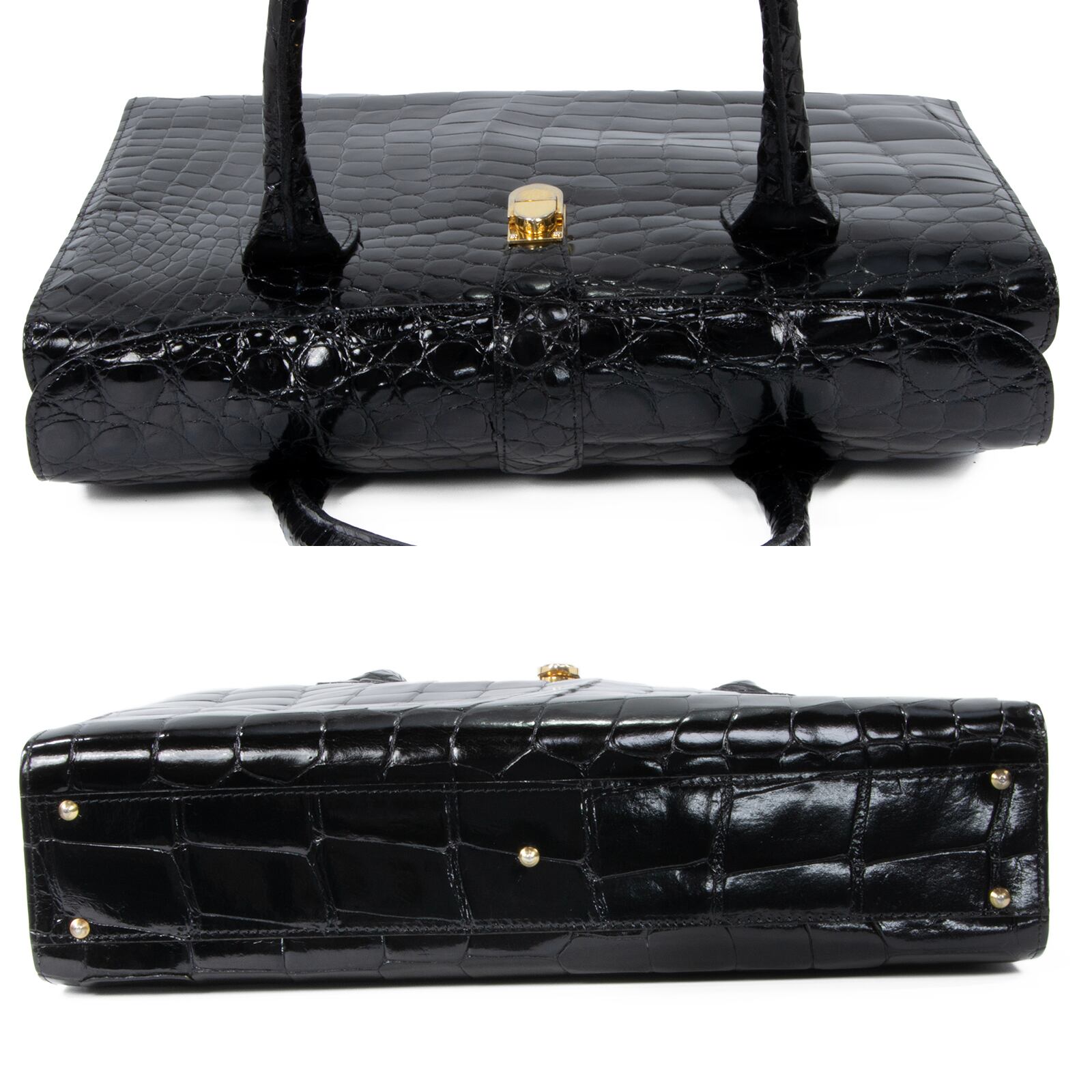本物 送料無料 ロエベ ビジネスバッグ ブリーフケース メンズ クロコダイル 黒 ブラック エキゾチックレザー 光沢 鞄 バック 綺麗 B303