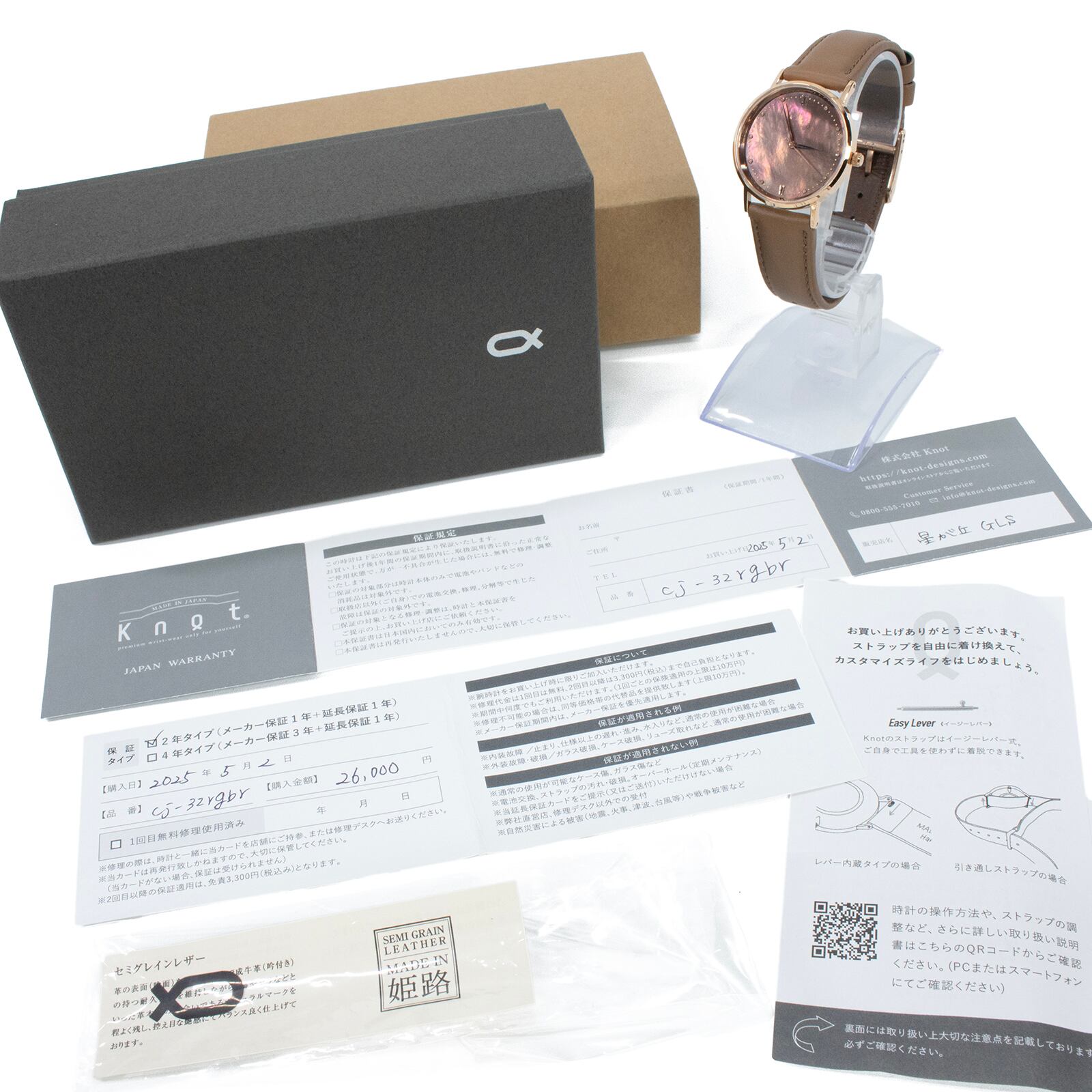 送料無料 ノット 腕時計 ソーラー レディース CJ-32RGBR 茶色 ブラウン シェル盤 10Pダイヤモンド ロゴ シンプル ブランド 人気 綺麗 X302
