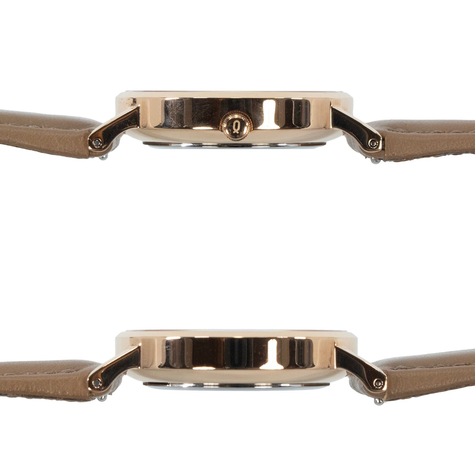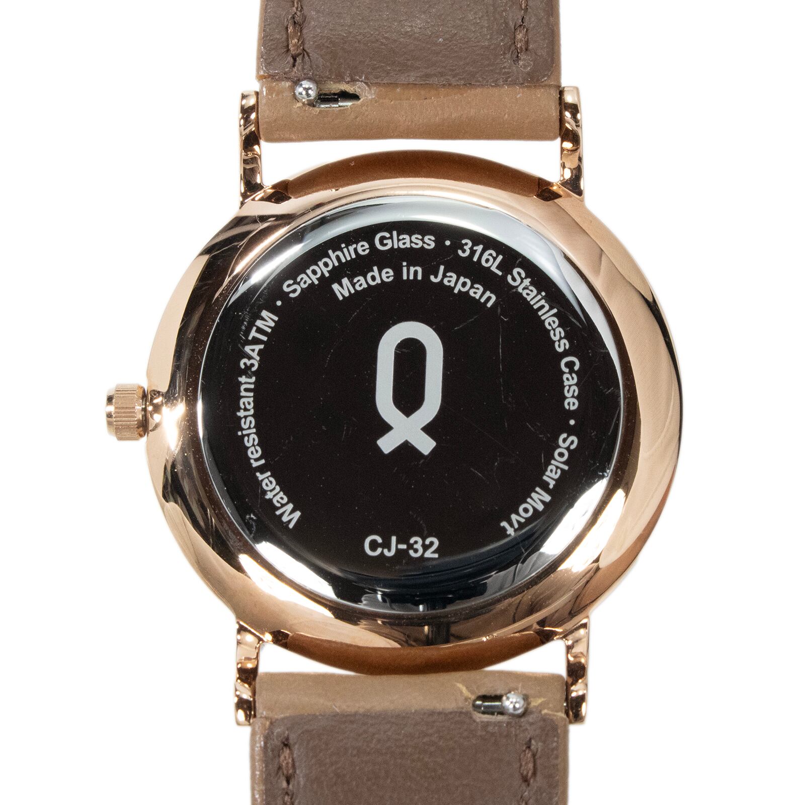 文字盤には、シックで落ち着いたブラウンのマザーオブパールが採用されております。