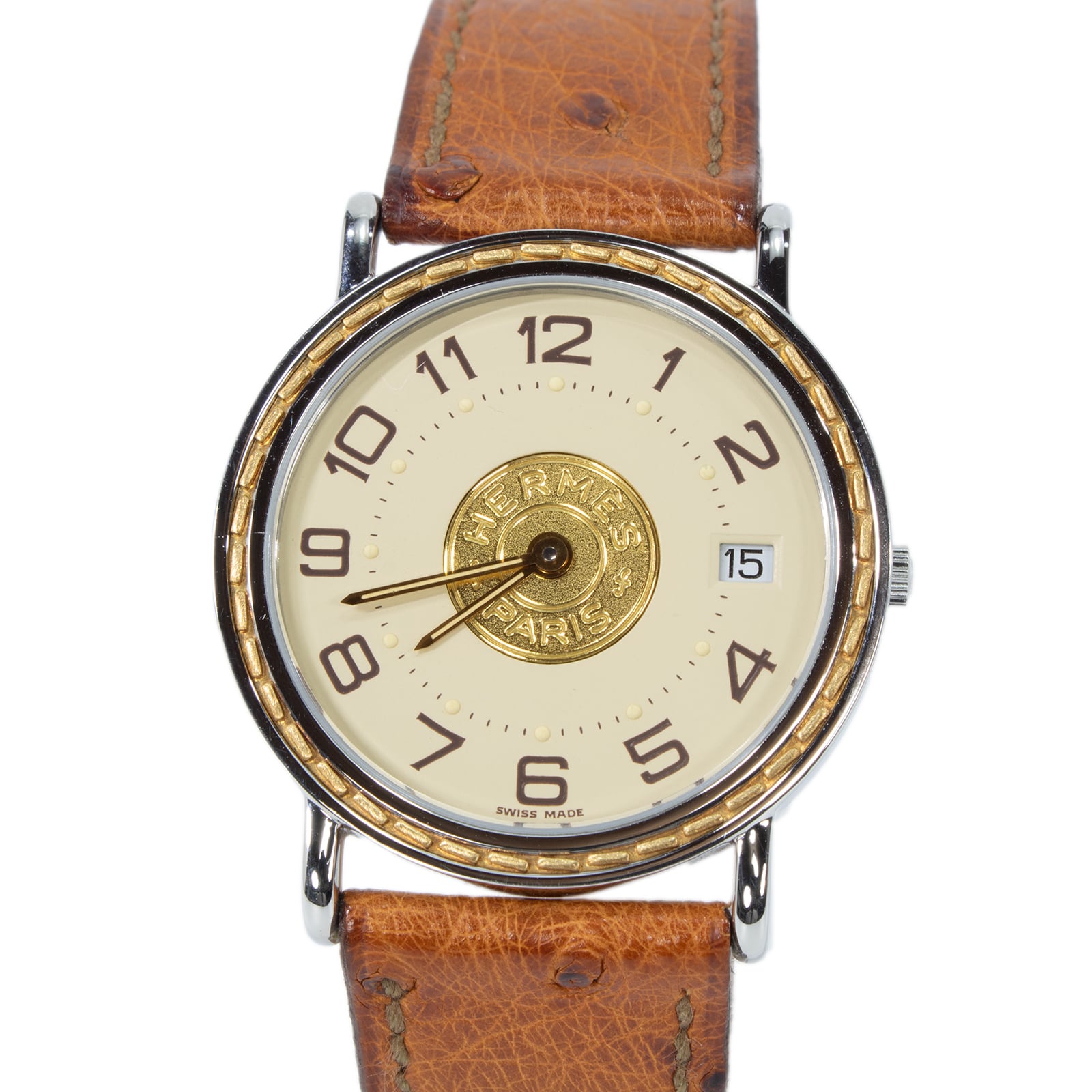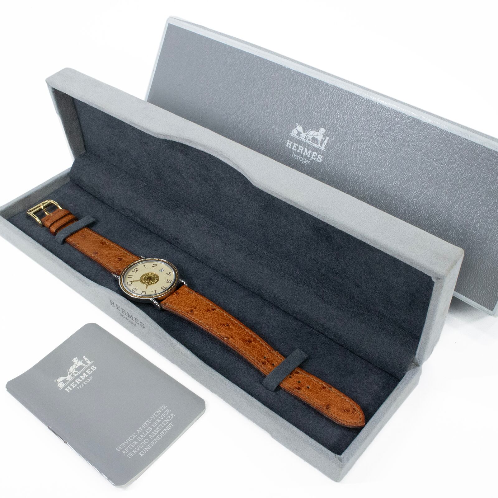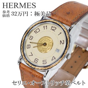 送料無料 エルメス 腕時計 メンズ レディース セリエ オーストリッチ 黄色 クリームイエロー ゴールド 茶色 スリム ロゴ マーク 綺麗 X304