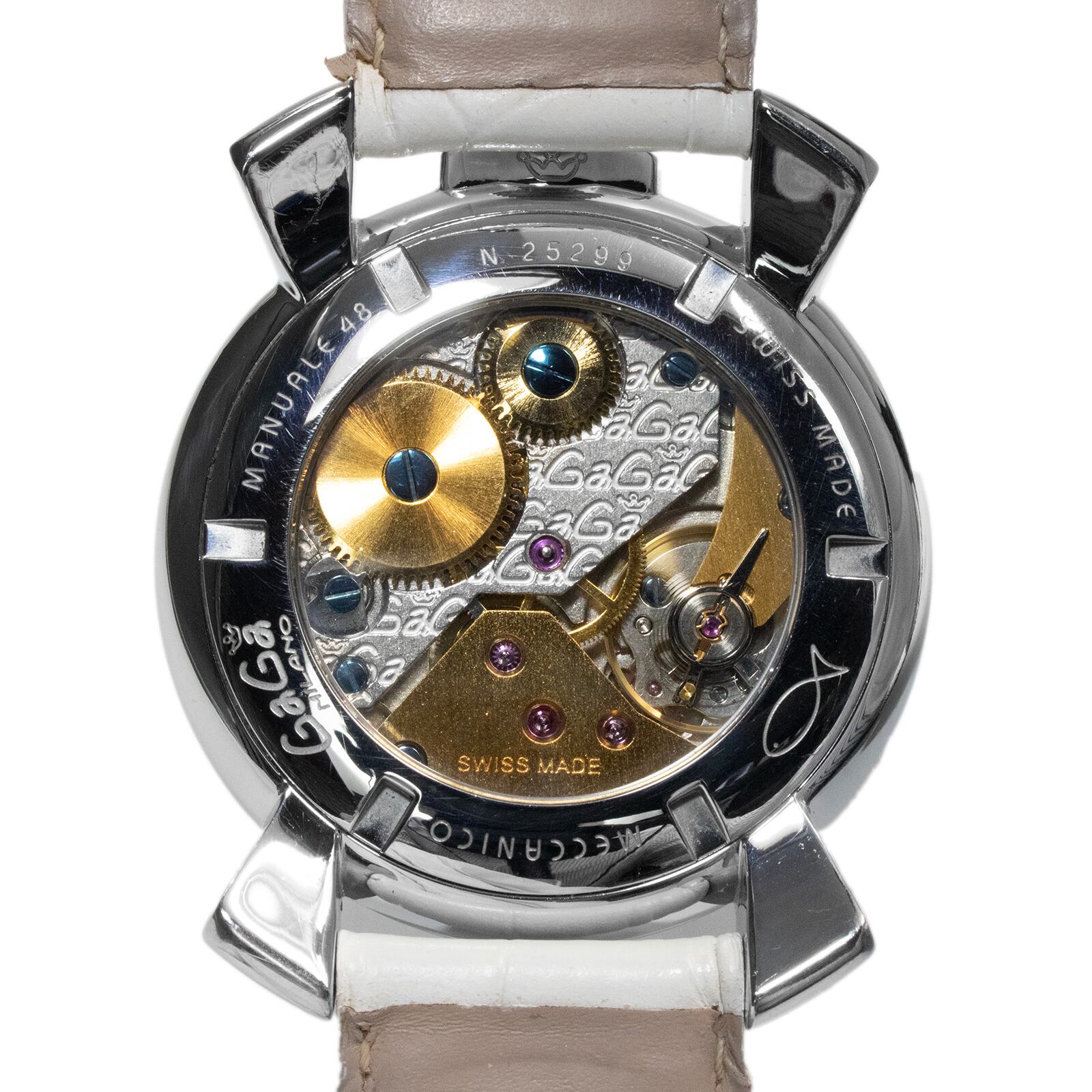 ブランドの原点にして象徴である、手巻き式腕時計の「マヌアーレ48mm」。