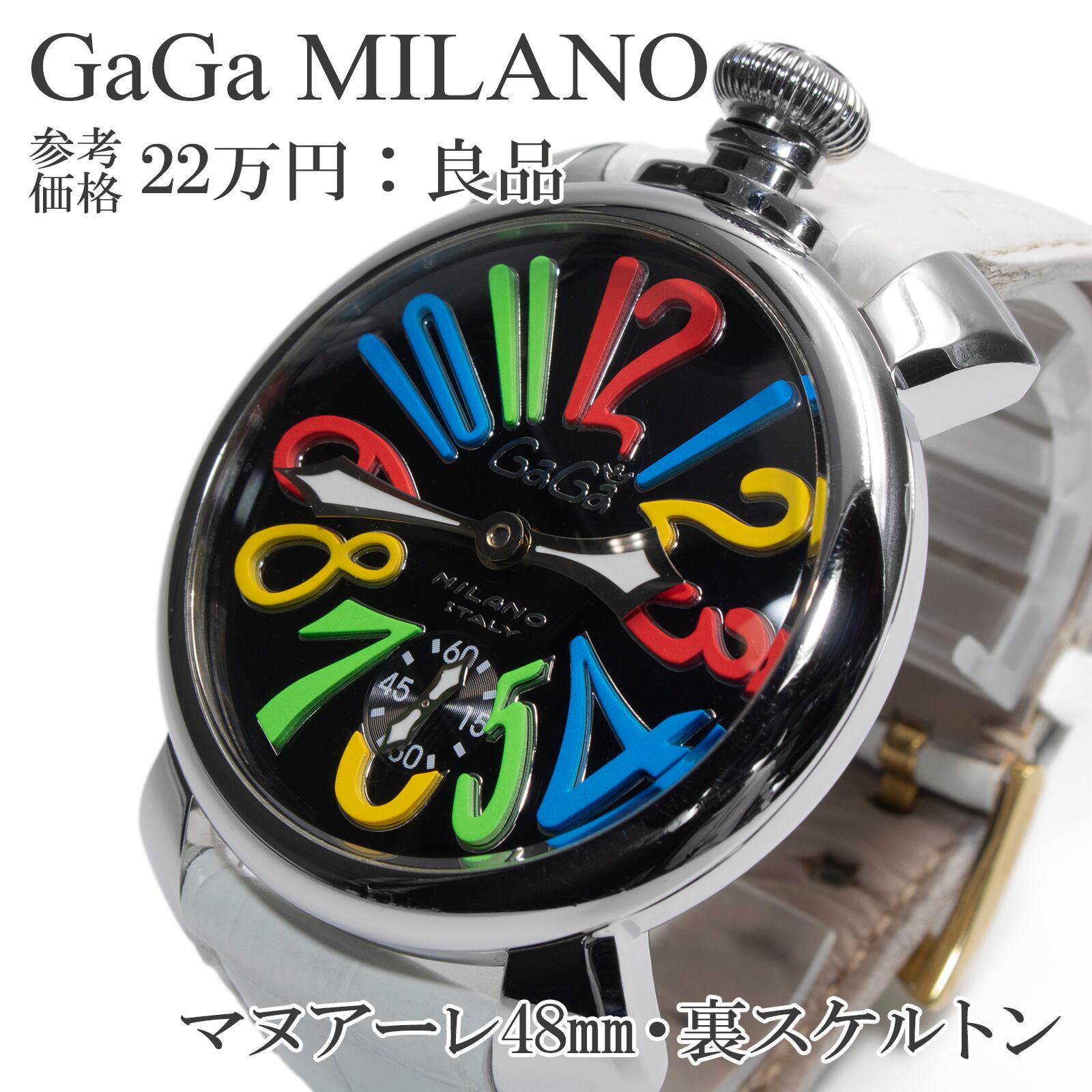 送料無料 ガガミラノ 腕時計 手巻き メンズ マヌアーレ48mm 5010.02S 黒 目立つ 大きい 裏スケルトン カラフル ロゴ ブランド 綺麗 X307