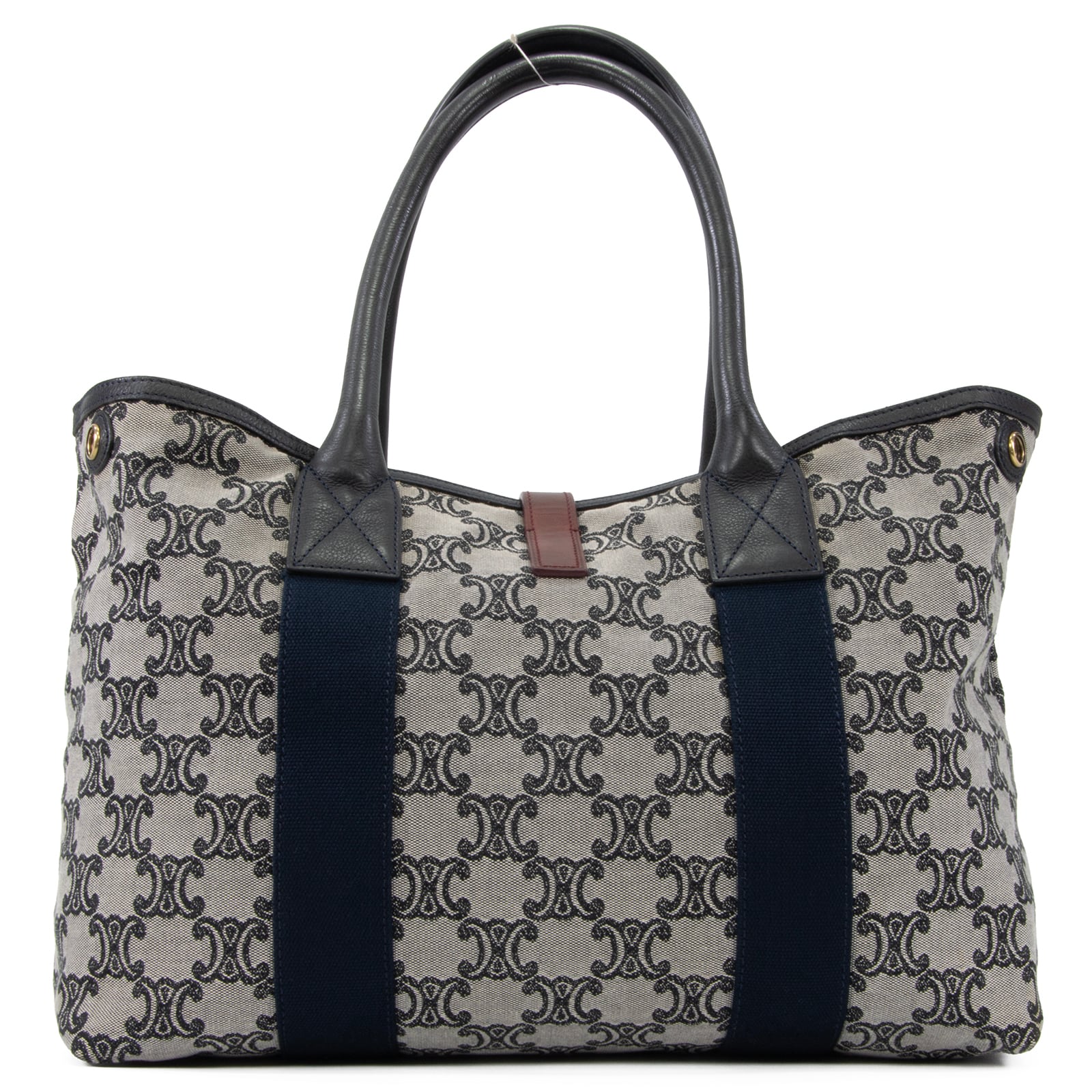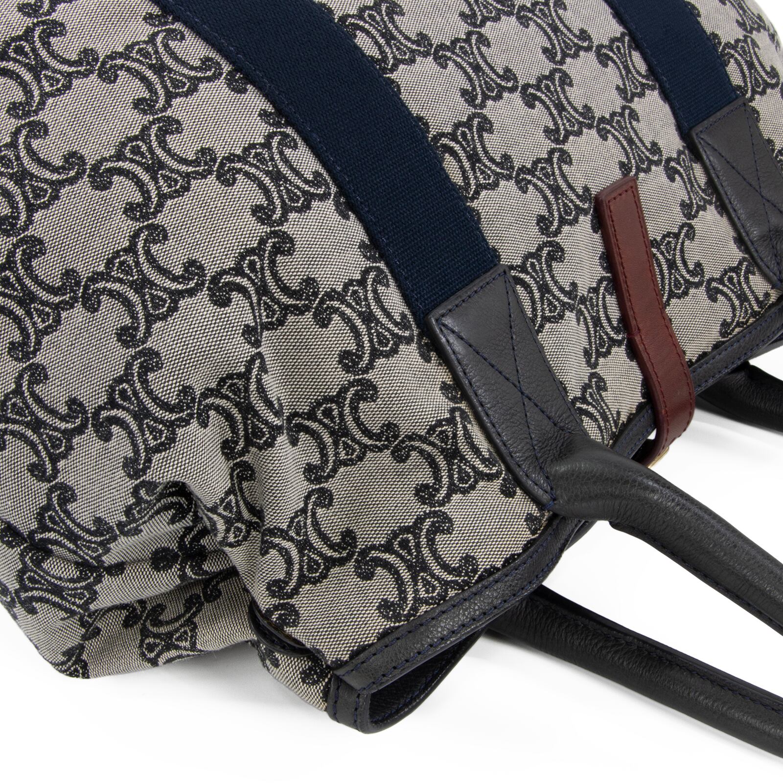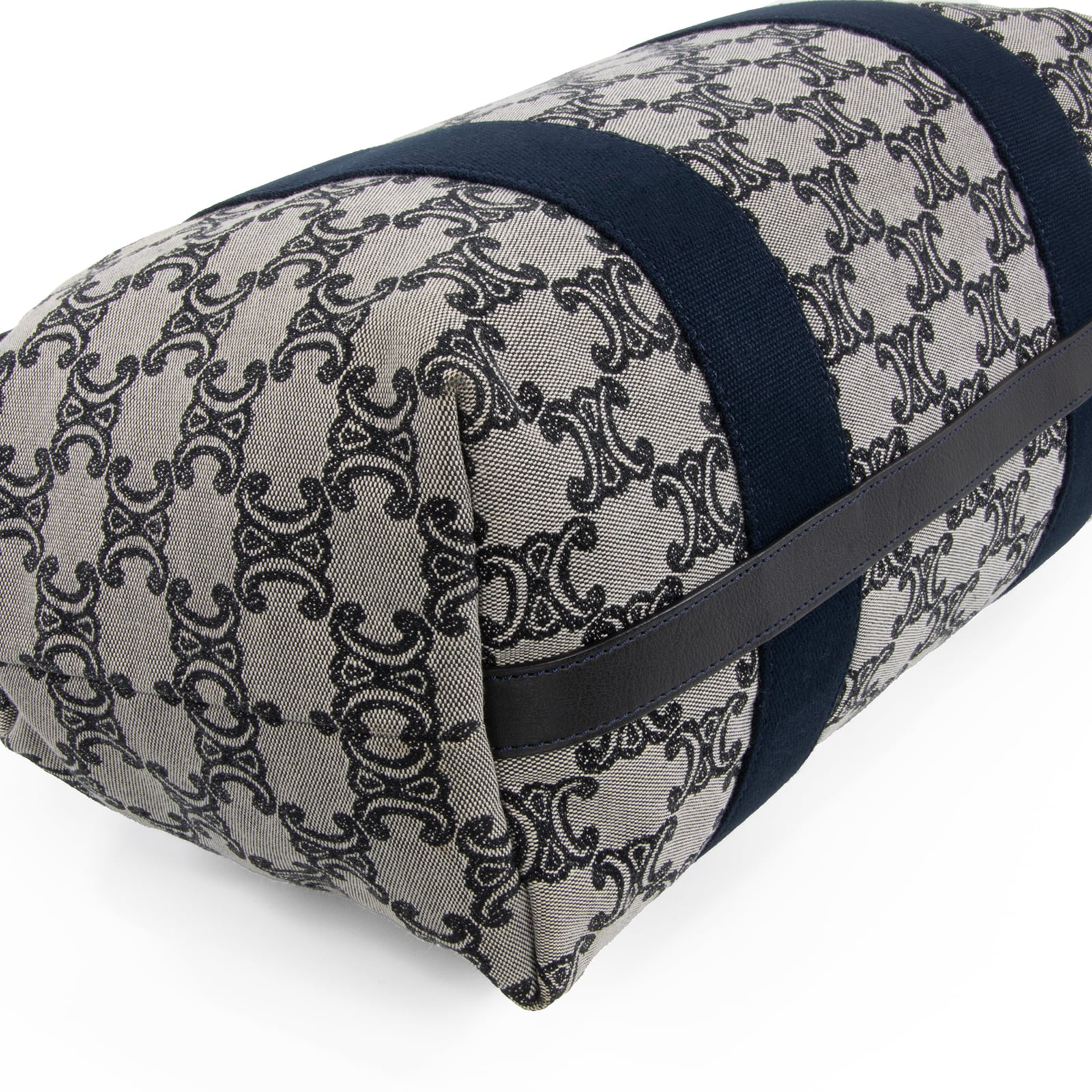 上品なマカダム柄に、スポーティーなネイビーのラインが加わることで、軽快な印象を引き立てます。