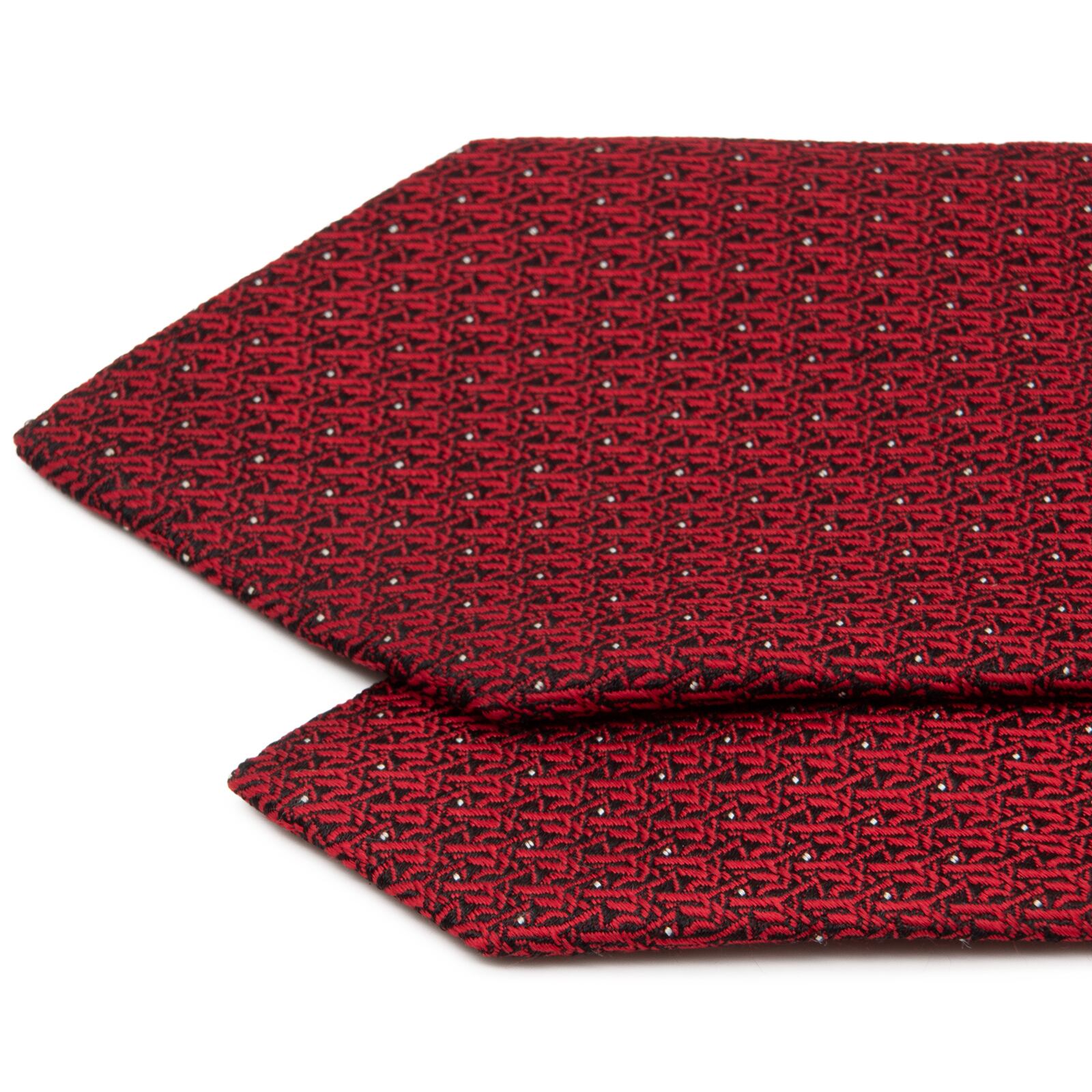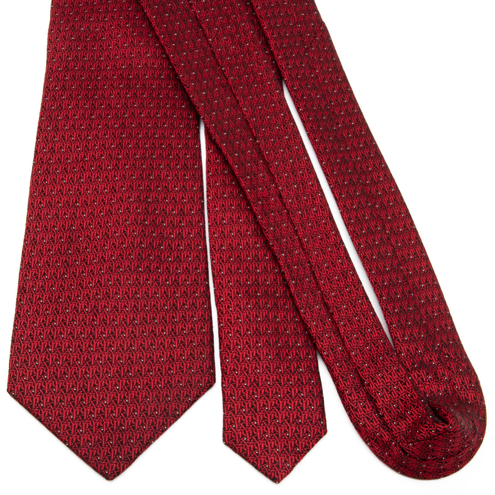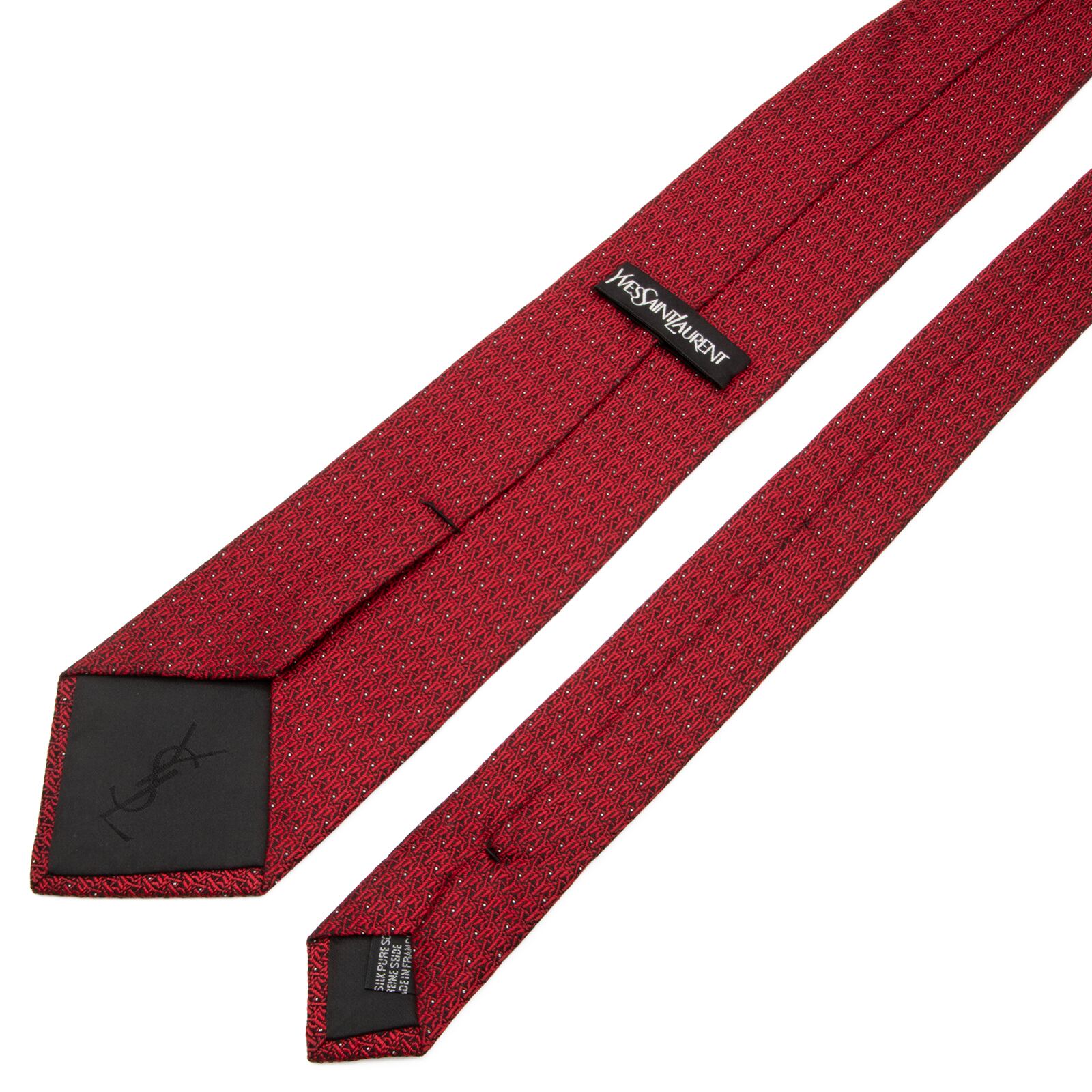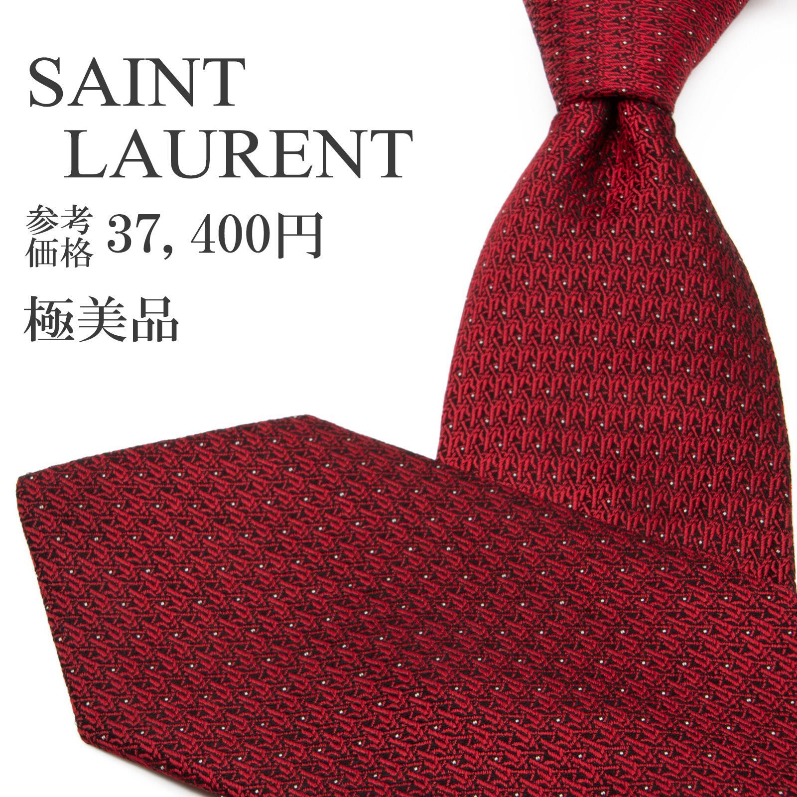 送料無料 サンローラン ネクタイ レギュラータイ ジャガード シルク 赤 レッド 黒 白 ドット YSLロゴ 光沢 ブランド フランス製 綺麗 P426