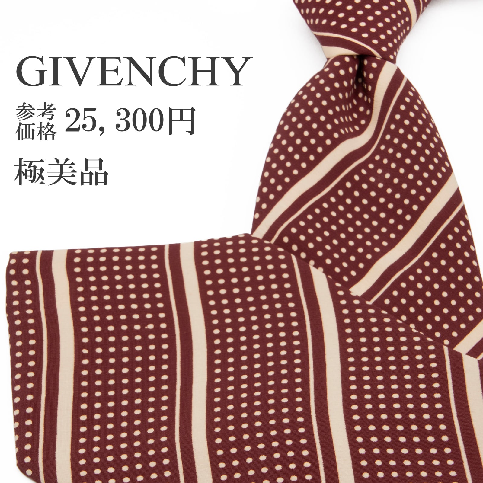 送料無料 ジバンシー ネクタイ シルク 赤茶色 アイボリー ビジネス カジュアル ストライプ ドット シンプル ブランド フランス製 綺麗 P456