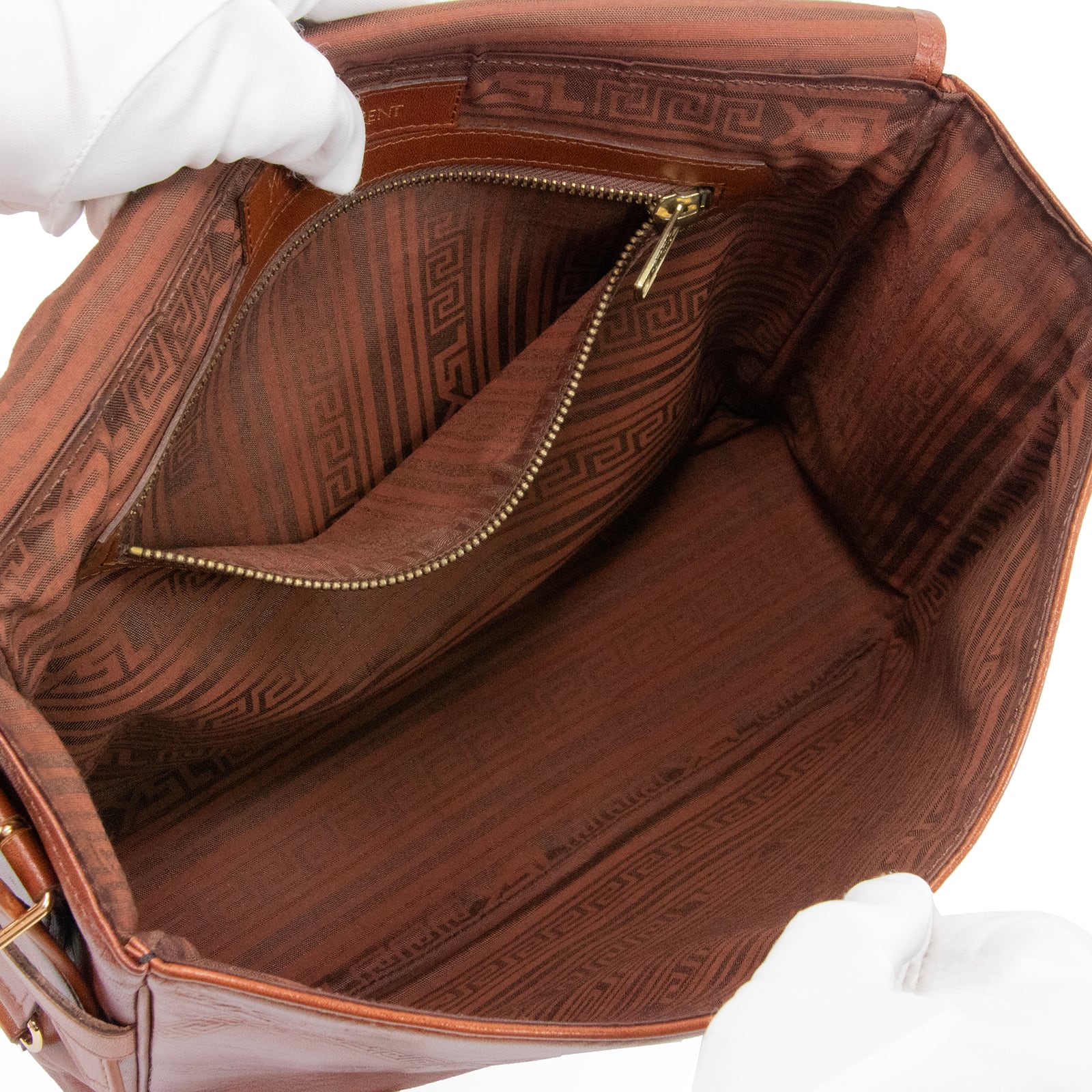 落ち着いたブラウンの色調とゴールド金具の組み合わせが、クラシカルで洗練された印象を演出いたします。