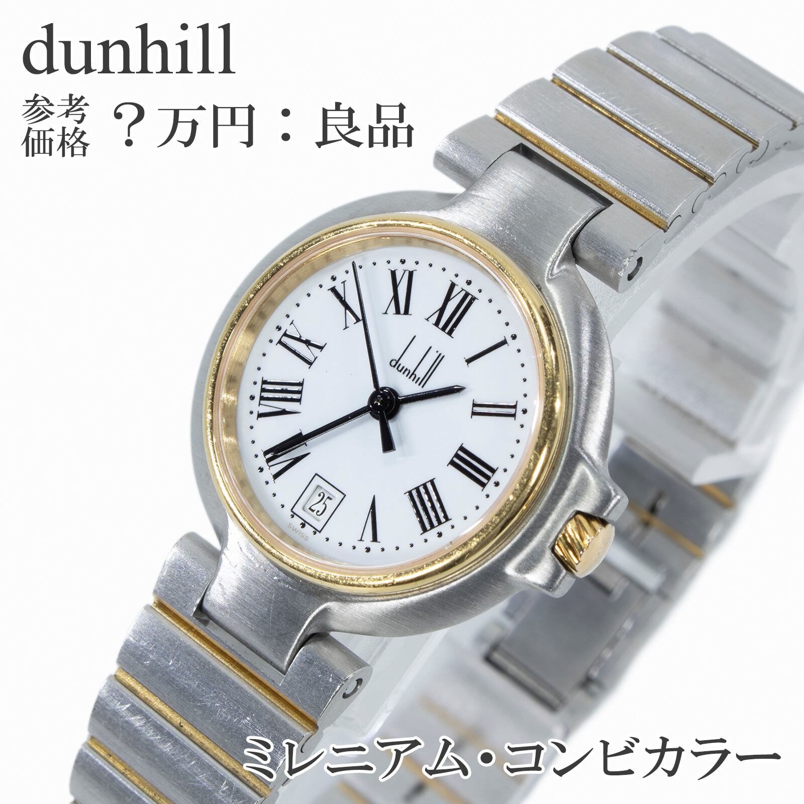 送料無料 ダンヒル 腕時計 レディース ミレニアム 白 シルバー ゴールド コンビカラー ロゴ マーク ローマン文字 シンプル ブランド X313