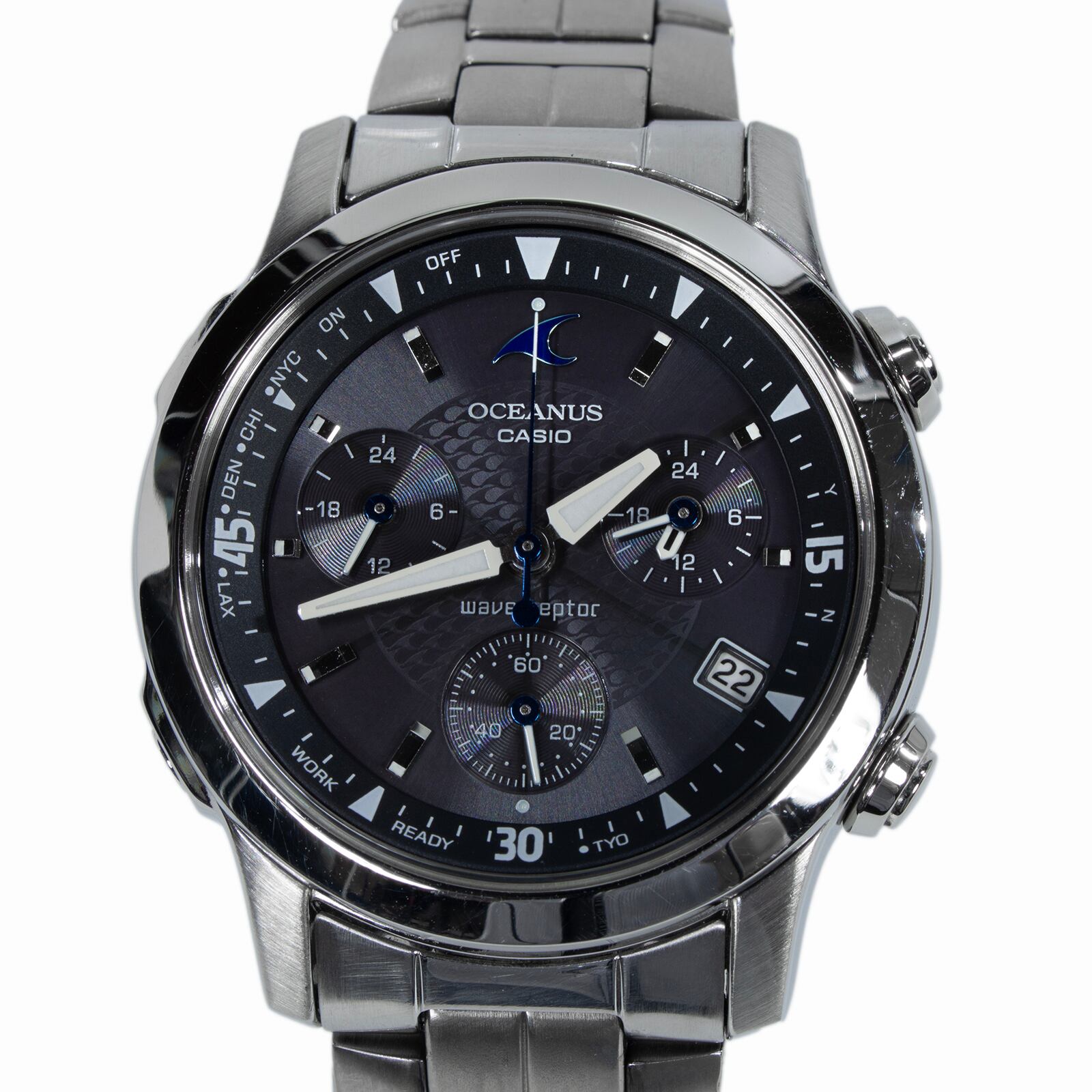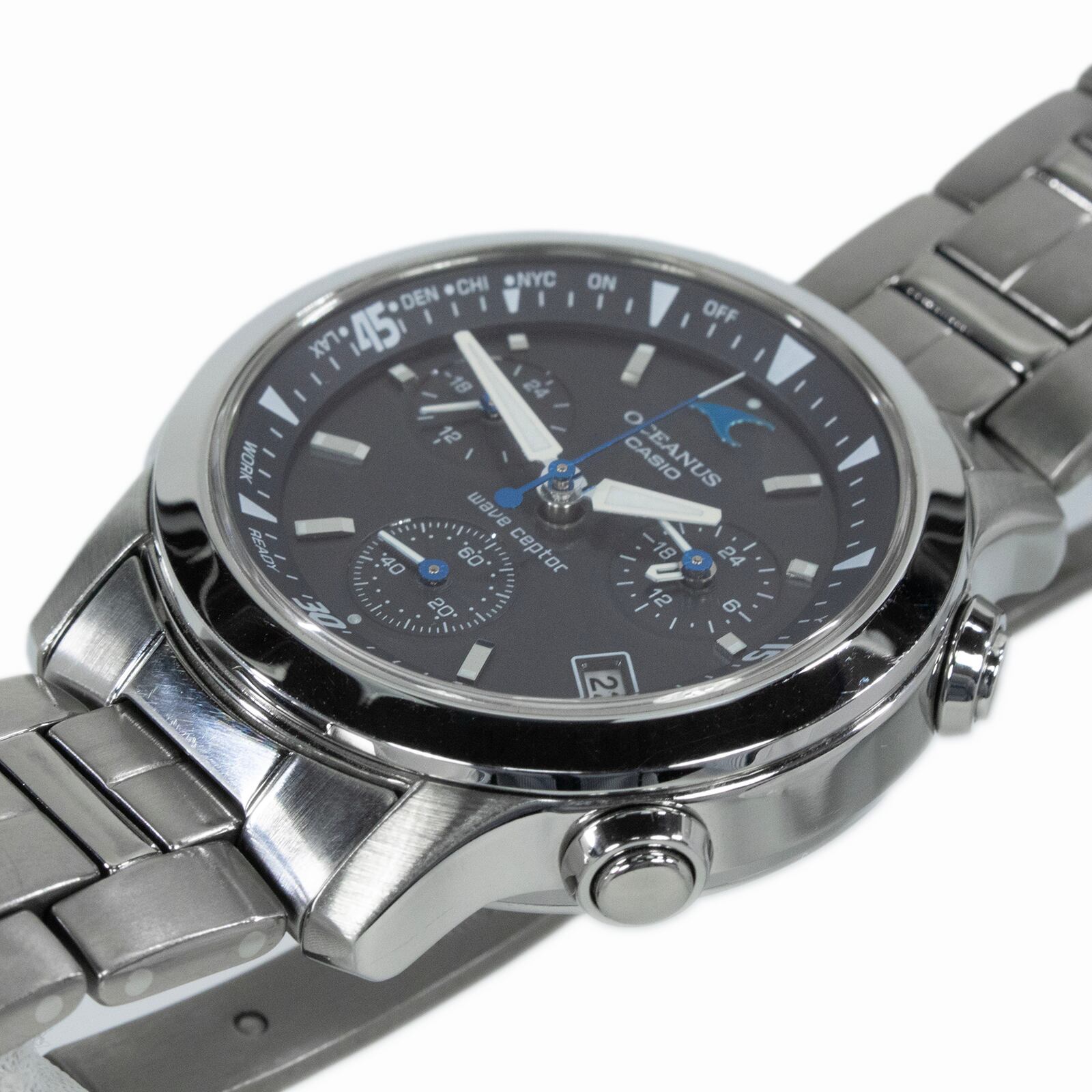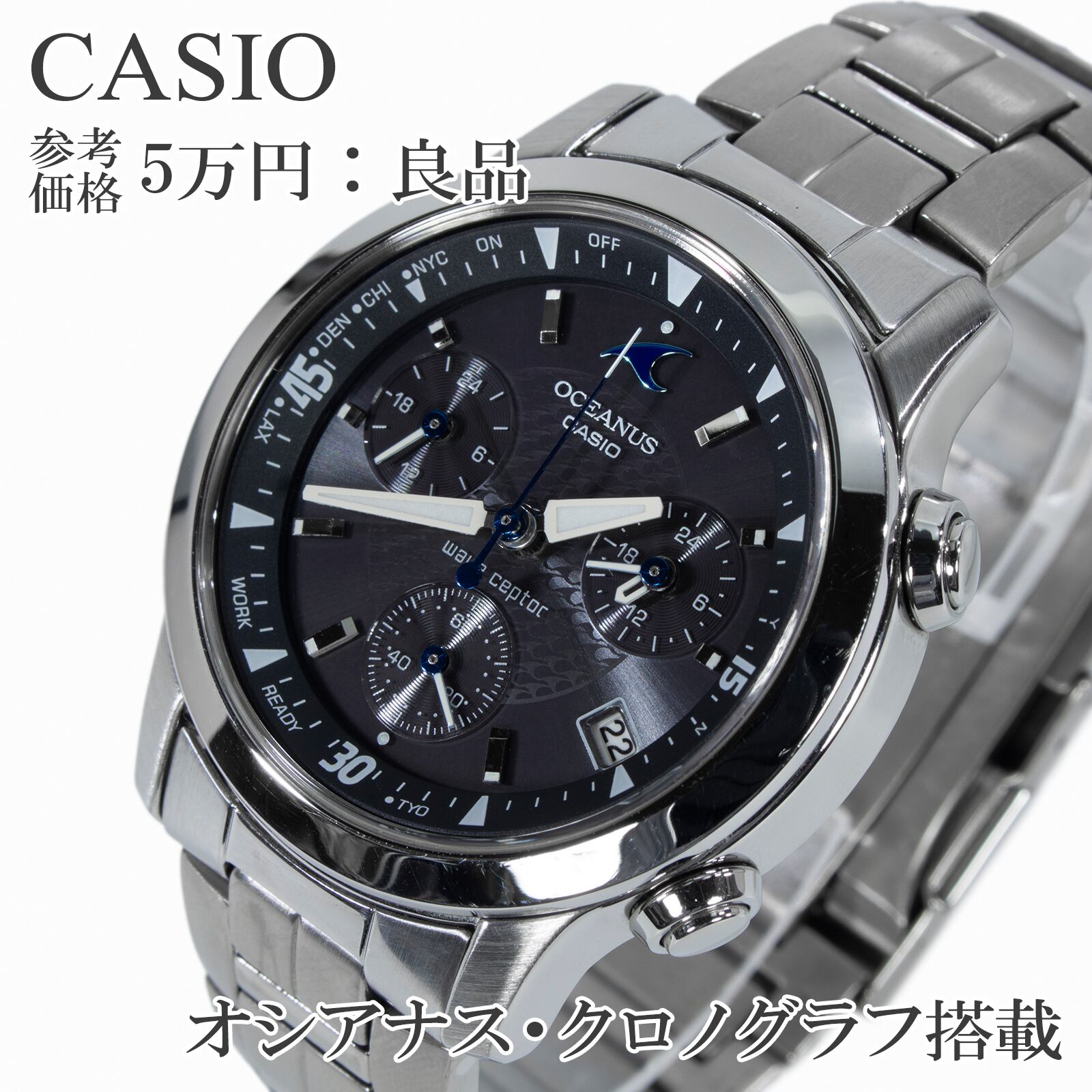 送料無料 カシオ 腕時計 ソーラー電波 メンズ オシアナス OCW-10 黒 ブラック シルバー クロノグラフ 小さめ ロゴ マーク ビジネス X315