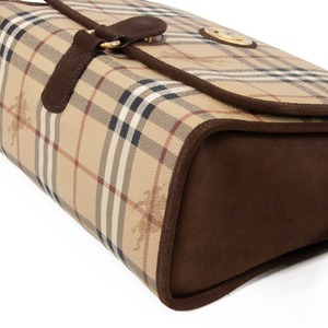 ブランドを象徴するチェック柄に、落ち着いたブラウンのスエードが見事に調和し、上品な印象を演出いたします。
